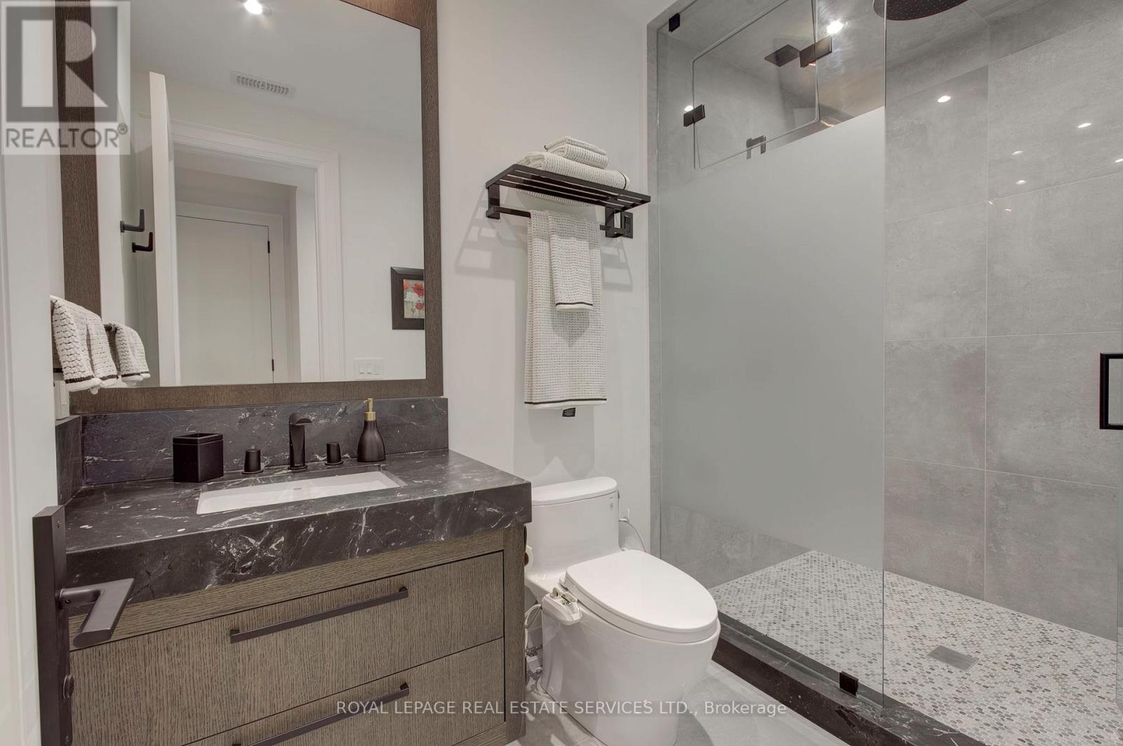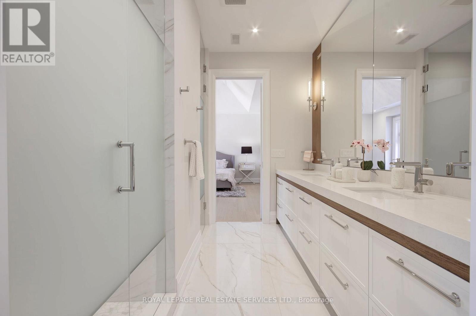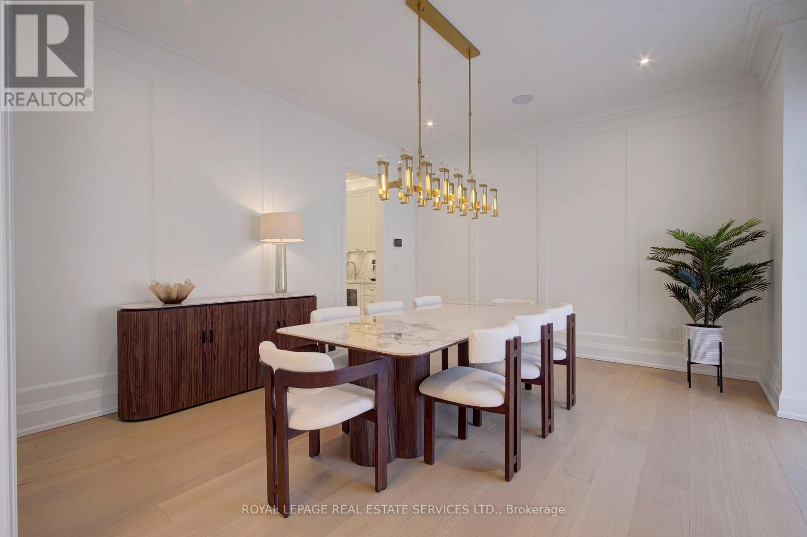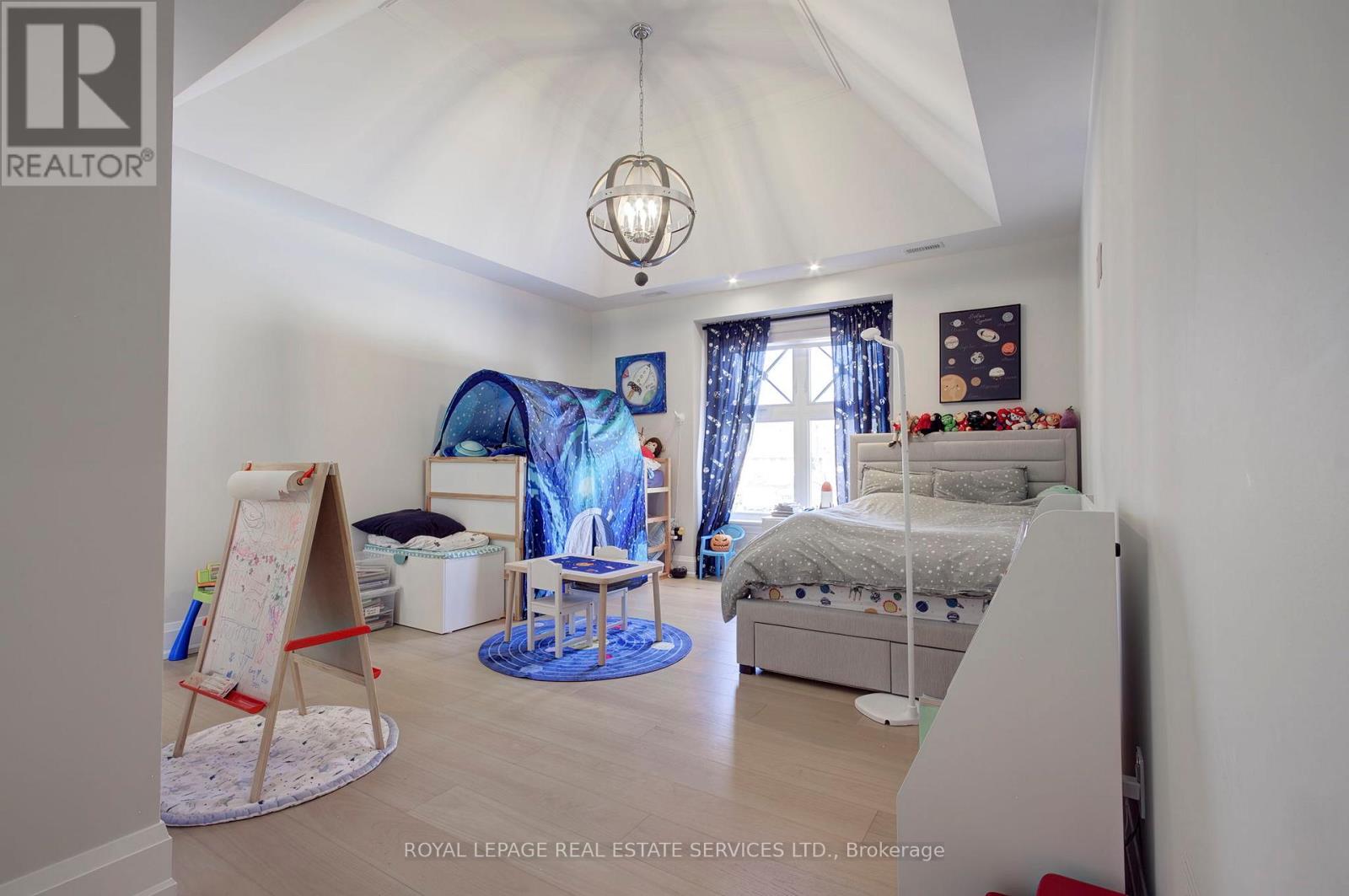 Welcome to 1504 Warren Dr., a spectacular custom-built residence in the heart of Oakville offering approximately 6,300 sq.ft. of luxurious living across three beautifully finished levels. Perfectly positioned on a premium 100 x 150 ft lot, this exceptional home blends timeless elegance, master craftsmanship, and sophisticated smart-home technology. The professionally landscaped grounds create a private outdoor oasis featuring LED nightscape lighting, Wi-Fi controlled irrigation, and a fully fenced backyard retreat. Enjoy effortless entertaining beneath the expansive covered porch with a gas fireplace, natural gas BBQ line, and a Beachcomber hot tub complete with waterfalls, jets, speakers and ambient lighting. The triple car garage features epoxy flooring, LiftMaster openers, Gladiator storage systems, and EV-ready electrical. Inside, a 9-ft mahogany entry door opens to soaring 10-ft ceilings, elegant wall paneling, crown mouldings, and wide plank engineered oak floors. The chef's kitchen is a true showpiece with a 48" Wolf 8-burner dual fuel range, Sub-Zero fridge and freezer columns, Sub-Zero wine column, built-in Sharp microwave/convection oven, Miele dishwasher, and a separate servery with beverage centre. Upstairs, four spacious bedrooms showcase custom vaulted ceilings and built-in closets, complemented by a sky-lit hallway and a convenient laundry room with LG front-load washer and dryer. The fully finished lower level is designed for ultimate entertainment, offering radiant heated floors, a custom home theatre, wet bar ice maker, home gym, additional bedroom, and a spa-inspired bathroom with steam shower, rain head, body jets, LCD integrated panel and speakers. Complete with Control4 8 zone smart sound automation, security film on all windows, multiple gas fireplaces, marble surfaces with protective scratch-proof film and Lennox climate systems, this remarkable residence delivers refined luxury living in one of Oakville's most prestigious neighbourhoods. (id:64974)