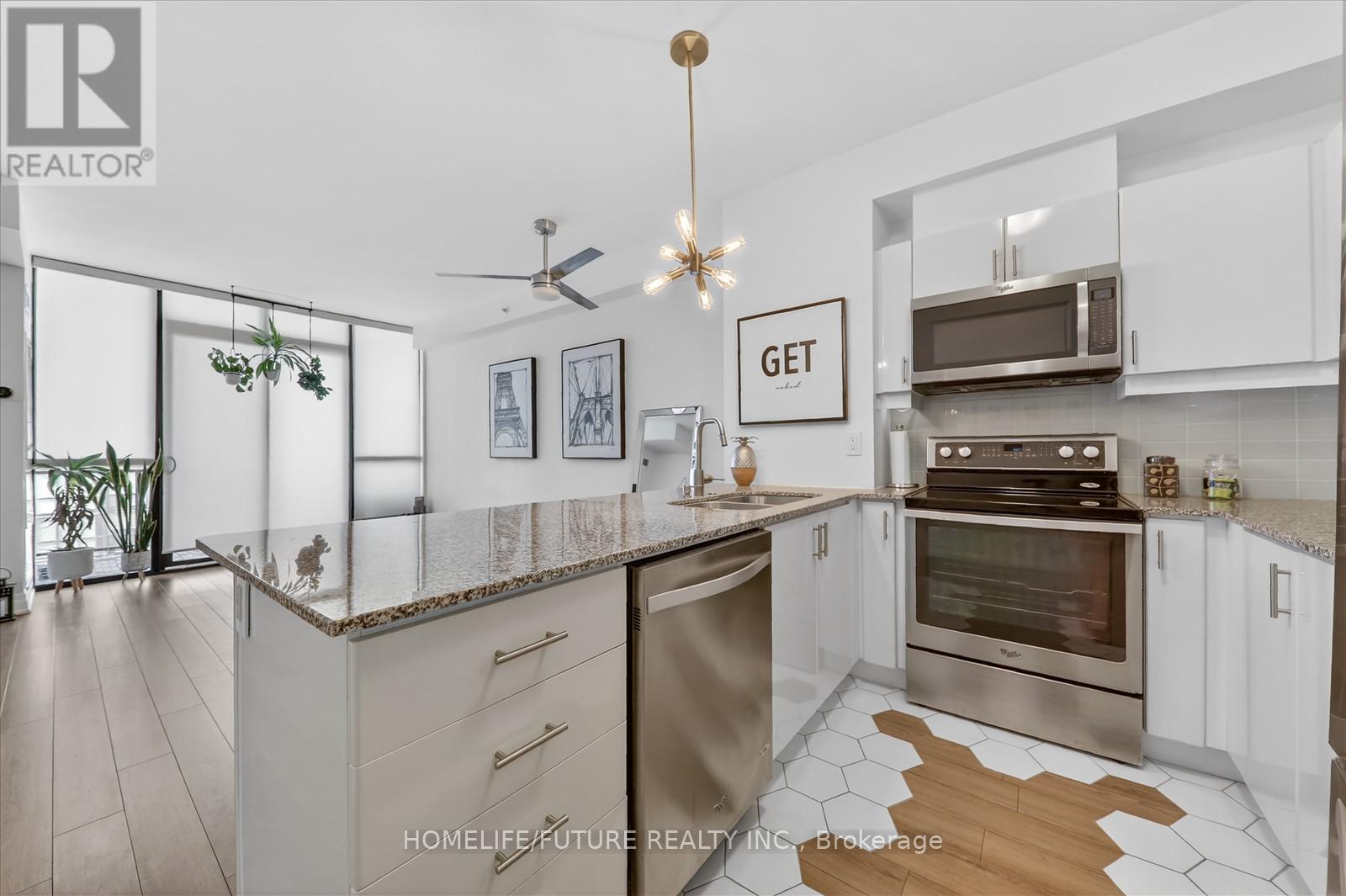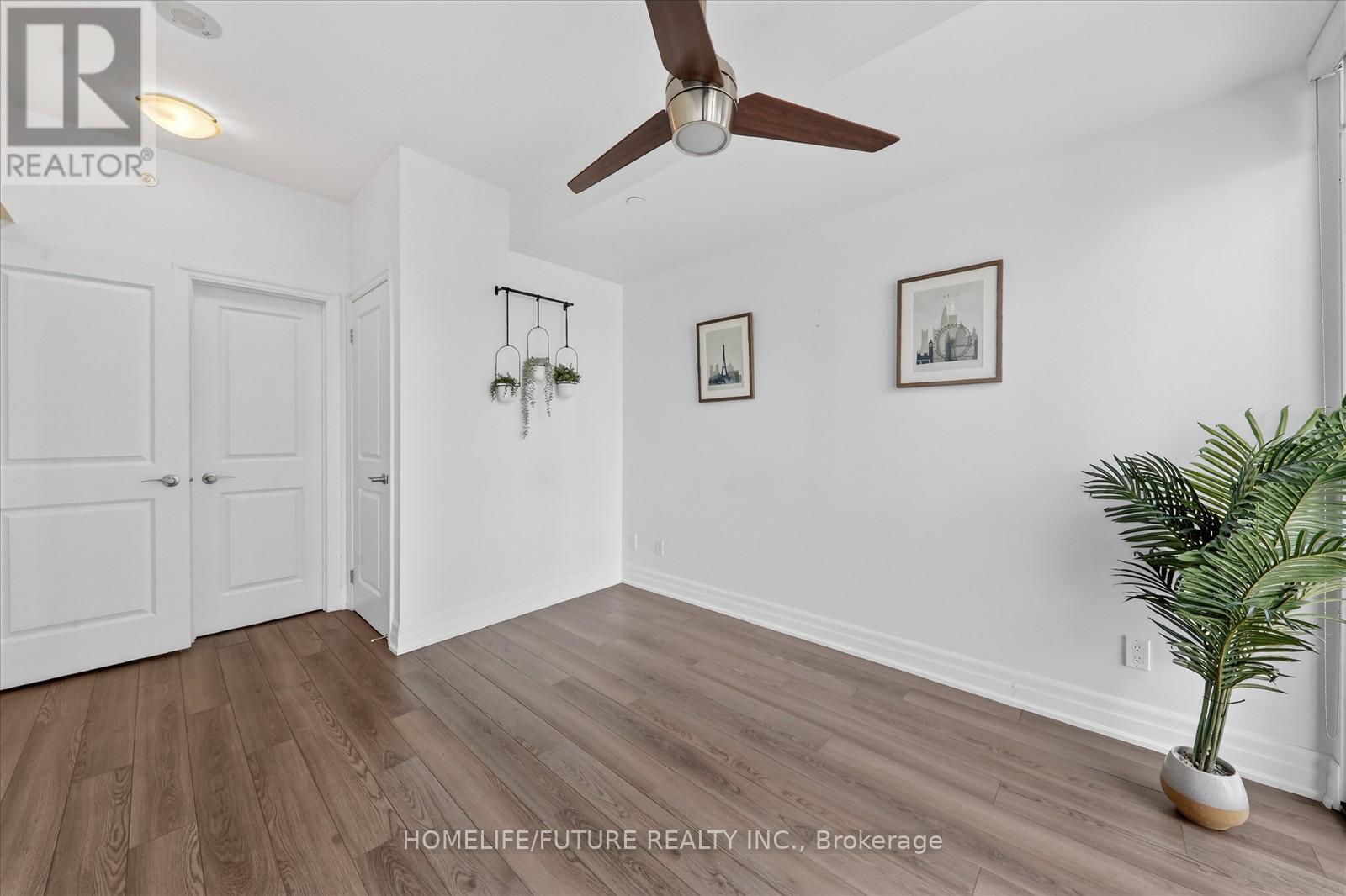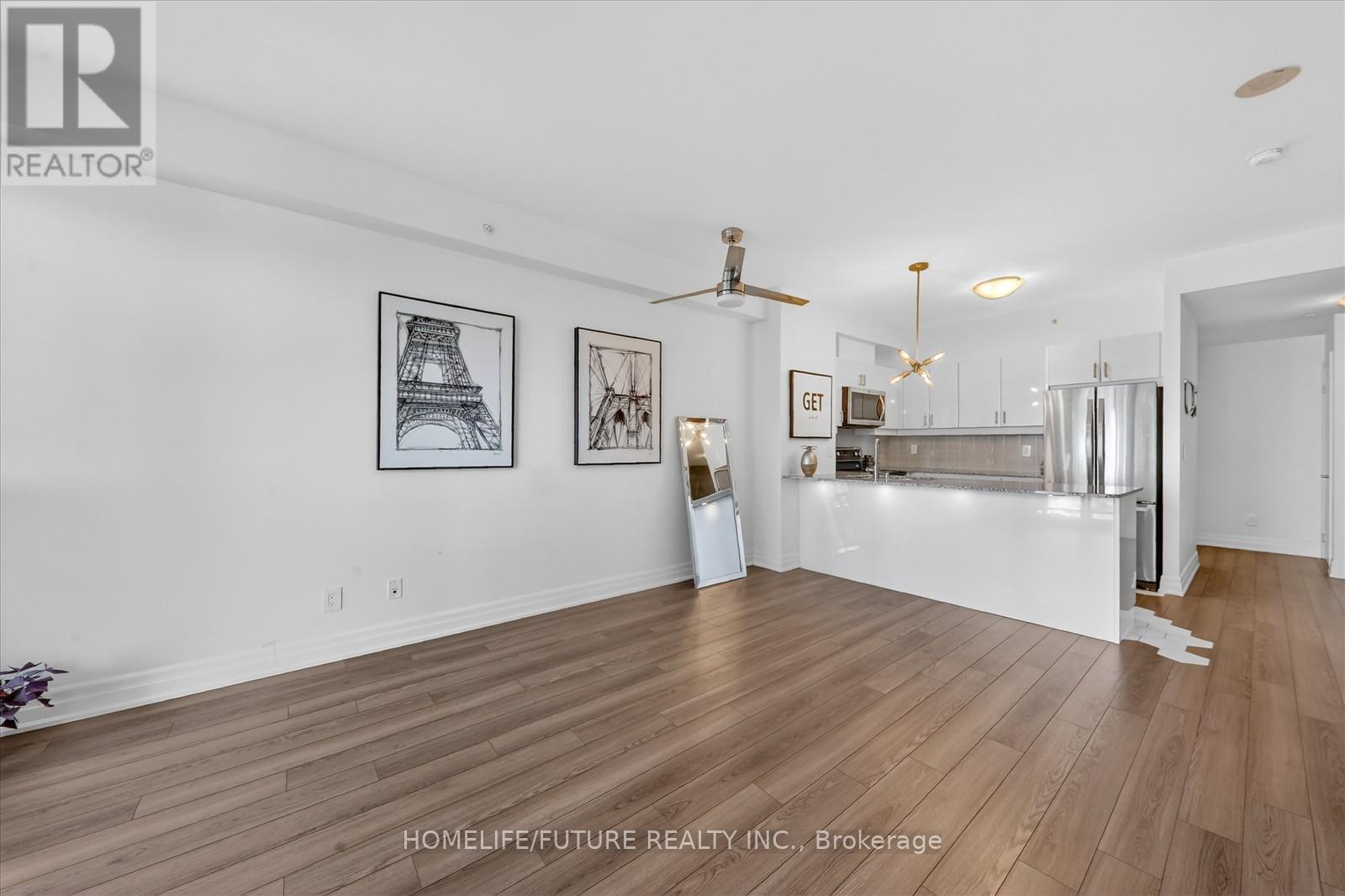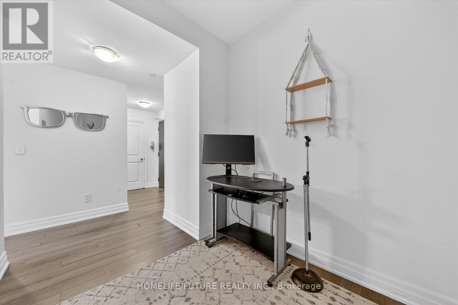 Welcome to this beautifully maintained 1+1 bedroom, 2 washroom condo in an excellent Vaughan location! Thoughtfully designed with a functional layout, this unit features a versatile den that can easily be used as a home office or second bedroom-perfect for today's flexible lifestyle. The bright and spacious interior boasts 9 ft ceilings, an upgraded kitchen with under-cabinet lighting, and ample storage throughout. The generously sized primary bedroom includes a walk-in closet and a private ensuite bathroom for added comfort. Step out onto the large open balcony-ideal for relaxing or entertaining. Pride of ownership is evident throughout this well-kept unit. The condo features full-sized appliances thoughtfully positioned to maximize space while maintaining excellent functionality. Residents enjoy access to top-tier building amenities, including a fitness centre, indoor pool, guest suite, and party room. Conveniently located near shopping centres, restaurants, parks, public transportation, and major highways. Just minutes to the Vaughan Metropolitan Centre TTC subway station and Viva Rapidway, making commuting a breeze. An excellent opportunity to own in one of Vaughan's most desirable and connected communities! (id:64974)