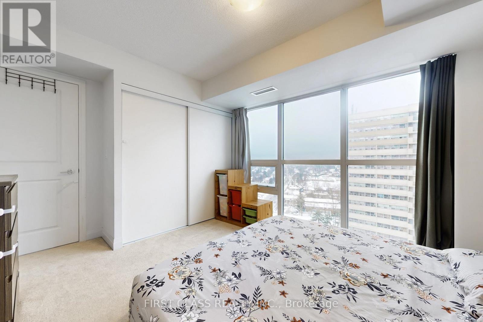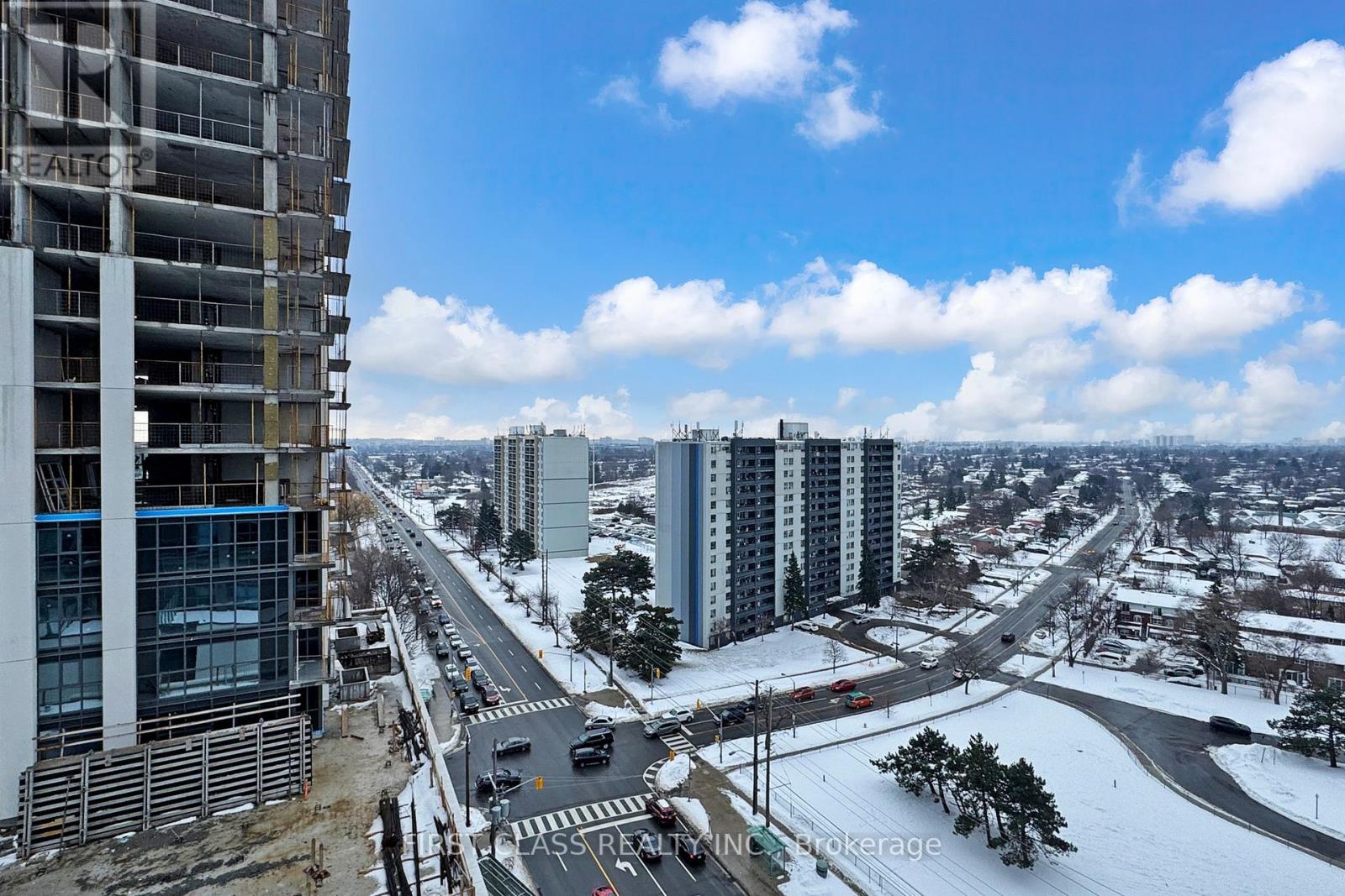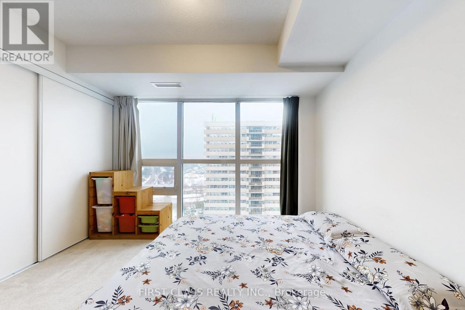 Welcome to this stunning, sun-filled 2-bedroom plus den condominium offering unobstructed 15th-floor views of the Toronto skyline, including the CN Tower. This beautifully designed suite features floor-to-ceiling windows, an open-concept layout, and a modern kitchen with granite countertops and upgraded appliances overlooking the living and dining area-ideal for both everyday living and entertaining. The spacious den is perfect for a home office. The primary bedroom includes a large closet and a private ensuite, complemented by a second full bathroom. Additional features include in-suite laundry and a private balcony. The unit comes with owned parking and two spacious lockers. Residents enjoy exceptional amenities, including a rooftop/outdoor pool, fitness room with yoga area, 24-hour concierge, party and media rooms, sports lounge, guest suites, and more. Ideally located close to parks, shopping, transit, Hwy 401, The U Of T, Centennial College, and excellent public and high schools. An excellent opportunity for both end-users and investors. (id:64974)