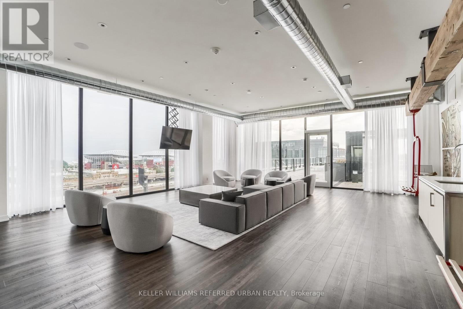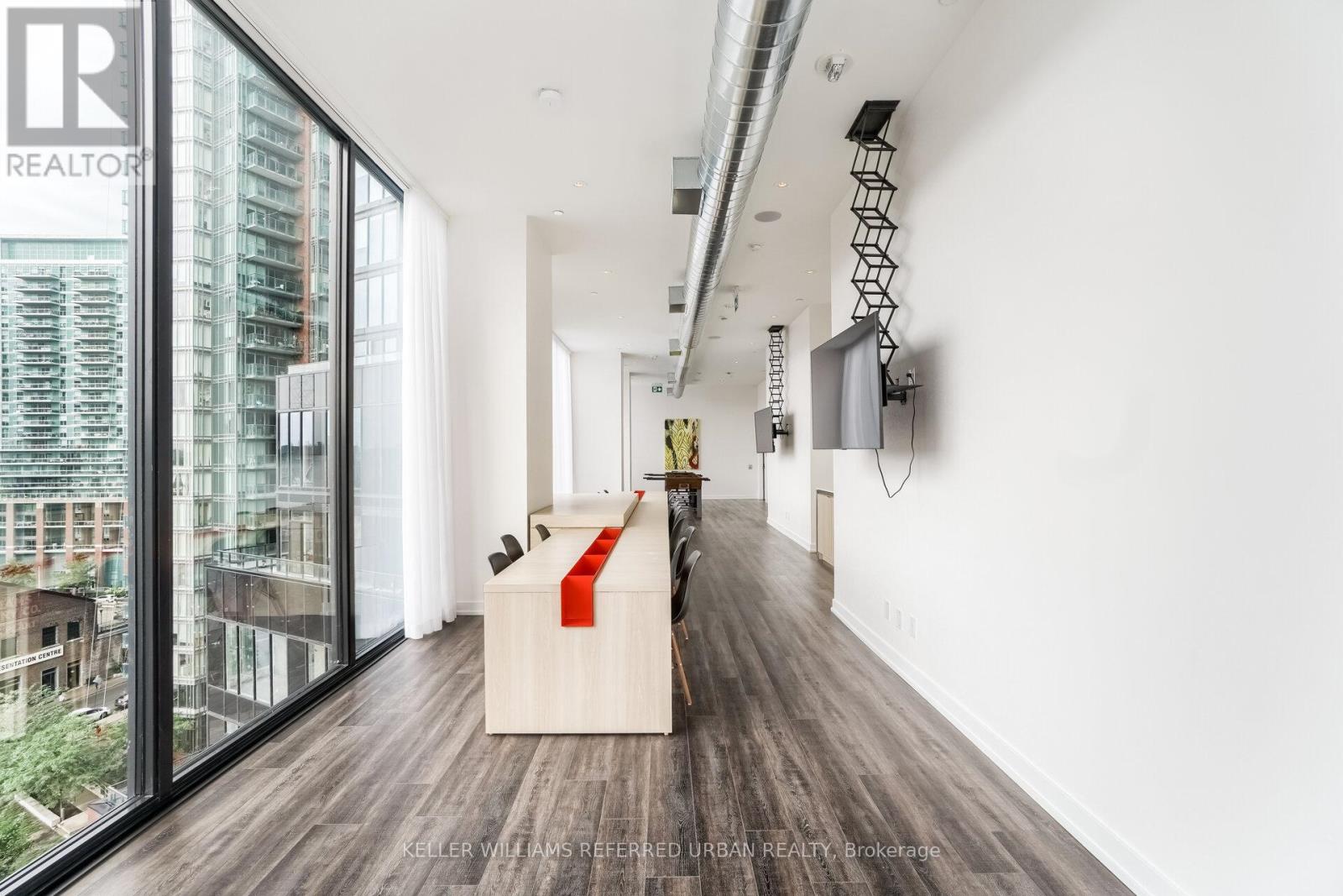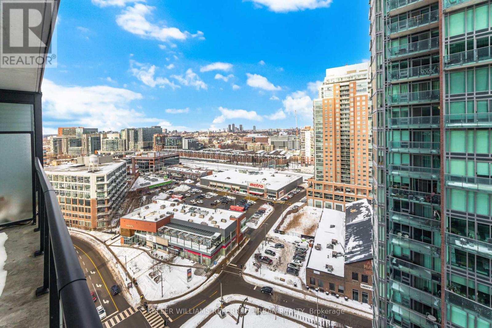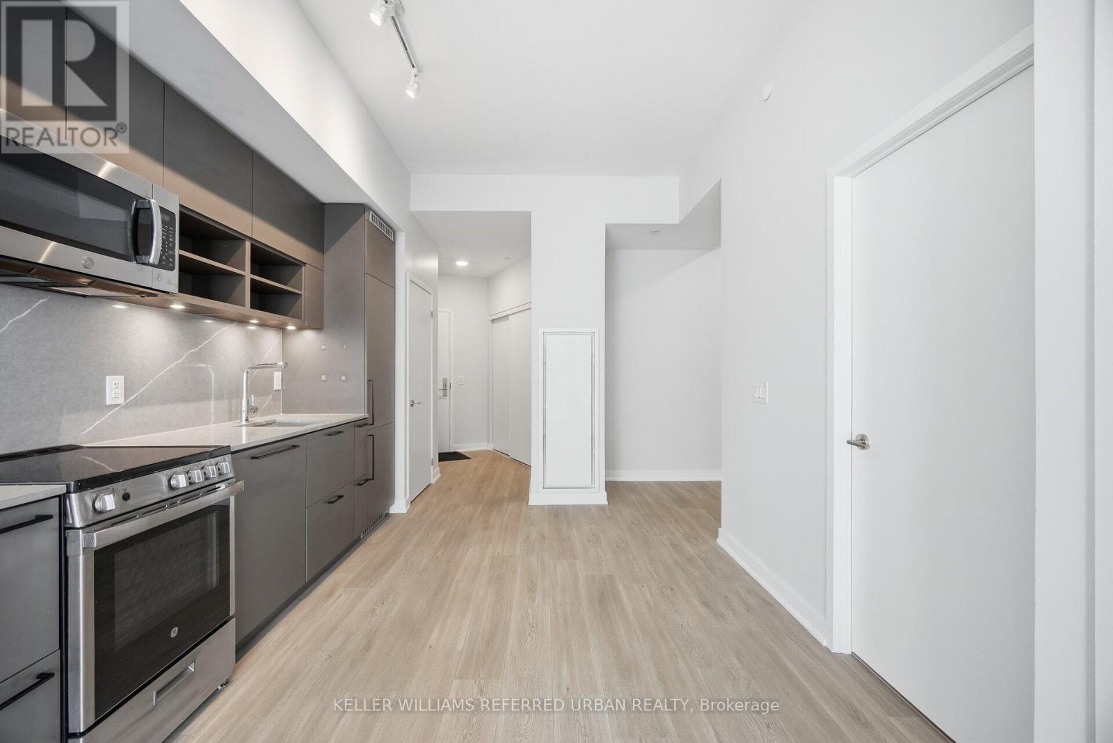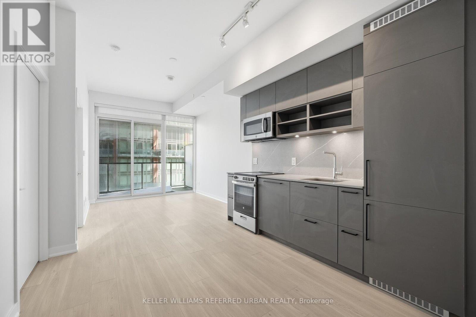 Welcome to Liberty Village's Market Tower. This 1+den, 1-bathroom suite offers 611 sq'. of thoughtfully-designed interior space offering newly installed quality flooring and fresh paint, ideally located on the 15th floor with unobstructed eastern views. Large windows flood the suite with natural light and open onto a sunny private balcony, the perfect spot to enjoy expansive city views and morning sun. The modern kitchen features soft-close cabinetry, built-in appliances, and granite countertops, seamlessly blending style and functionality. The versatile den is ideal for a home office or guest space, while the thoughtfully designed layout maximizes both comfort and usability. Situated in Toronto's vibrant West End, you're just steps from Liberty Village dining and cafes, King West nightlife, Trinity Bellwoods Park, and waterfront trails. Commuters will appreciate easy access to the Gardiner Expressway and DVP, Exhibition GO Station, and the Waterfront streetcar loop, making travel throughout the city effortless. (id:64974)
