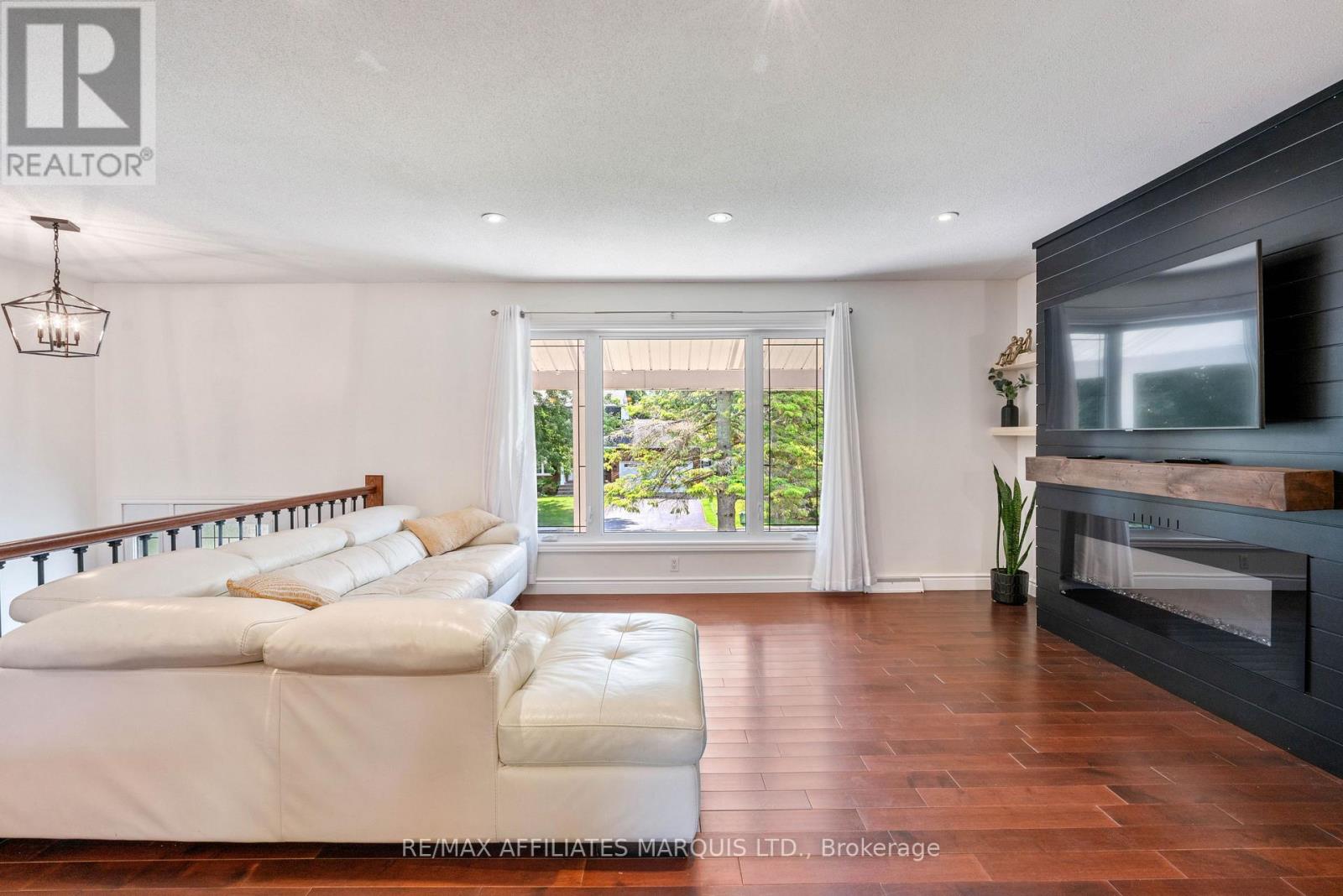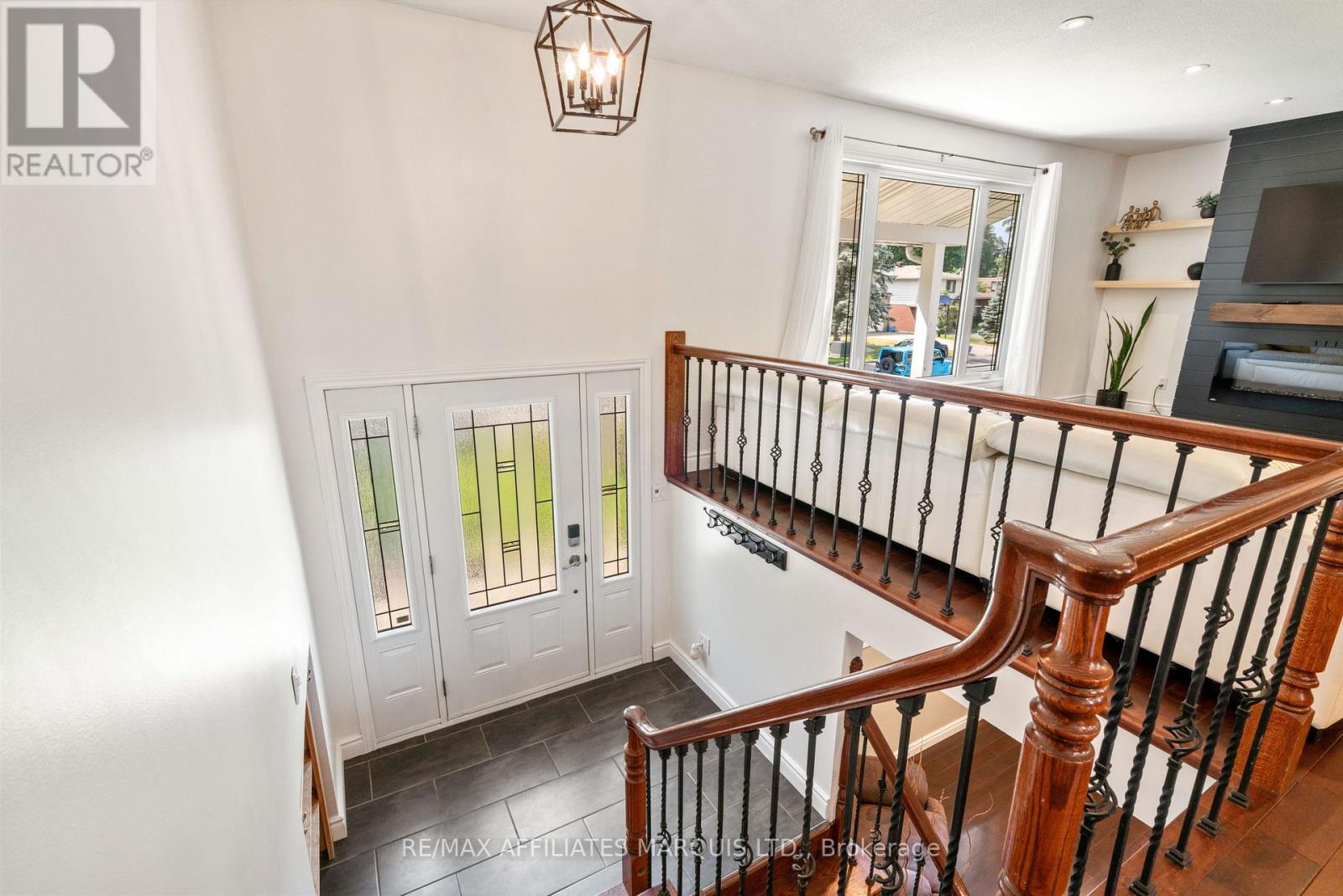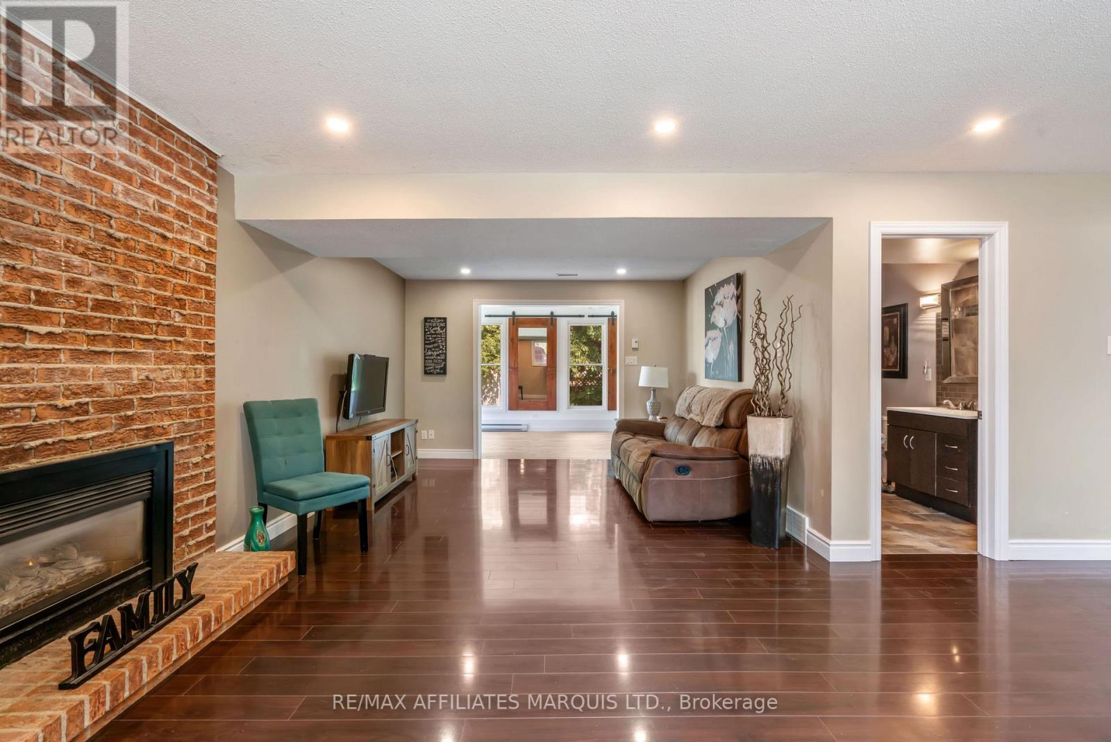 Nestled at the end of a quiet cul-de-sac in the sought-after Riverdale neighborhood, this beautifully maintained raised bungalow with a walk-out basement offers an exceptional blend of privacy, comfort, and convenience. Abutting a wooded area and nearby trails, the property provides a peaceful, nature-filled setting while still being just moments from parks and high-rated schools. Riverdale Park is within walking distance and features a playground, splash pad, basketball and tennis courts, making it an ideal location for families. The home itself is equally impressive. The main floor features an open-concept design that seamlessly connects the living, dining, and kitchen areas, perfect for both everyday living and entertaining. Hardwood flooring adds warmth and character, while a cozy fireplace anchors the living room. The updated kitchen is thoughtfully designed with beautiful cabinetry, stone countertops, and stainless steel appliances, offering both style and practicality. Three well-proportioned bedrooms and a full family bathroom with a double vanity complete the main level. The fully finished lower level extends the living space with a spacious family room featuring a second fireplace, a three-piece bathroom, and a dedicated laundry area. A recently added sunroom provides a bright transitional space and direct access to the backyard, ideal for indoor-outdoor living and entertaining. Combining a prime location, a functional layout, and tasteful modern updates, this property presents an outstanding opportunity to own a truly exceptional family home. (id:64974)