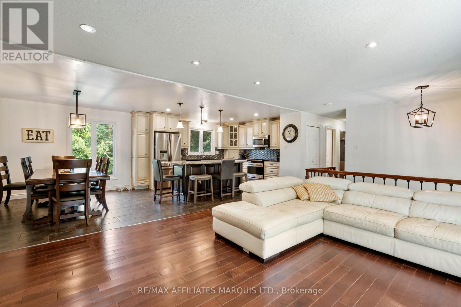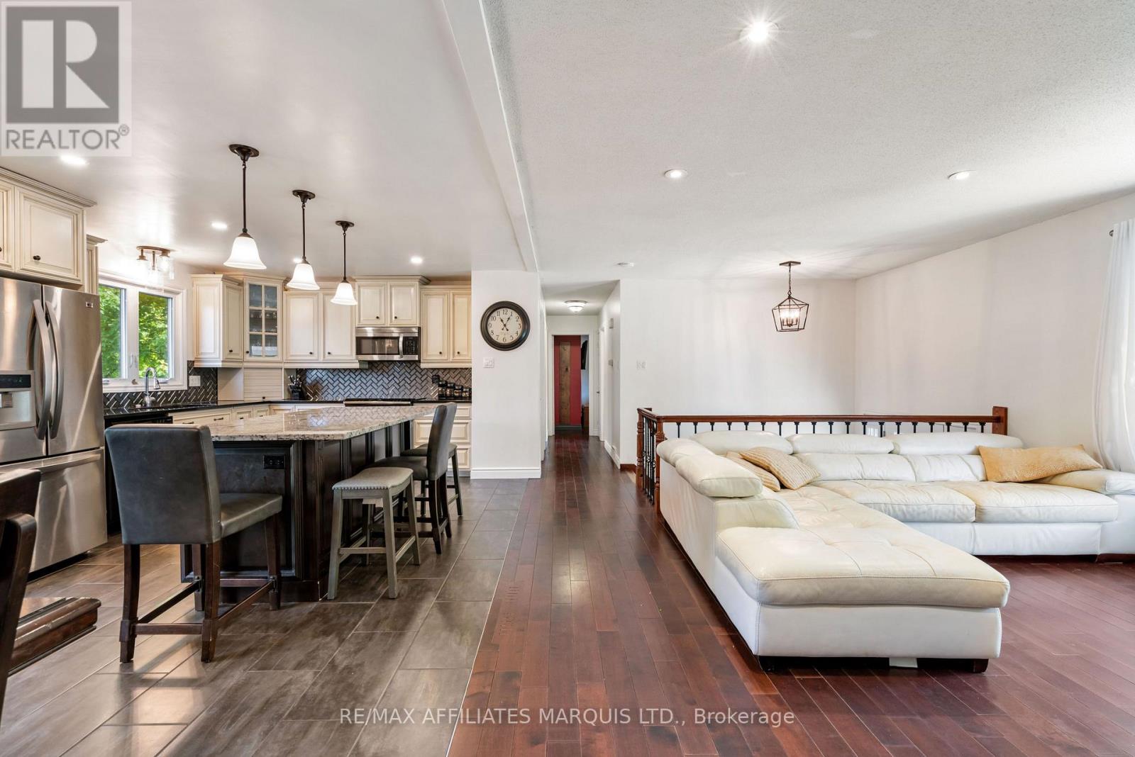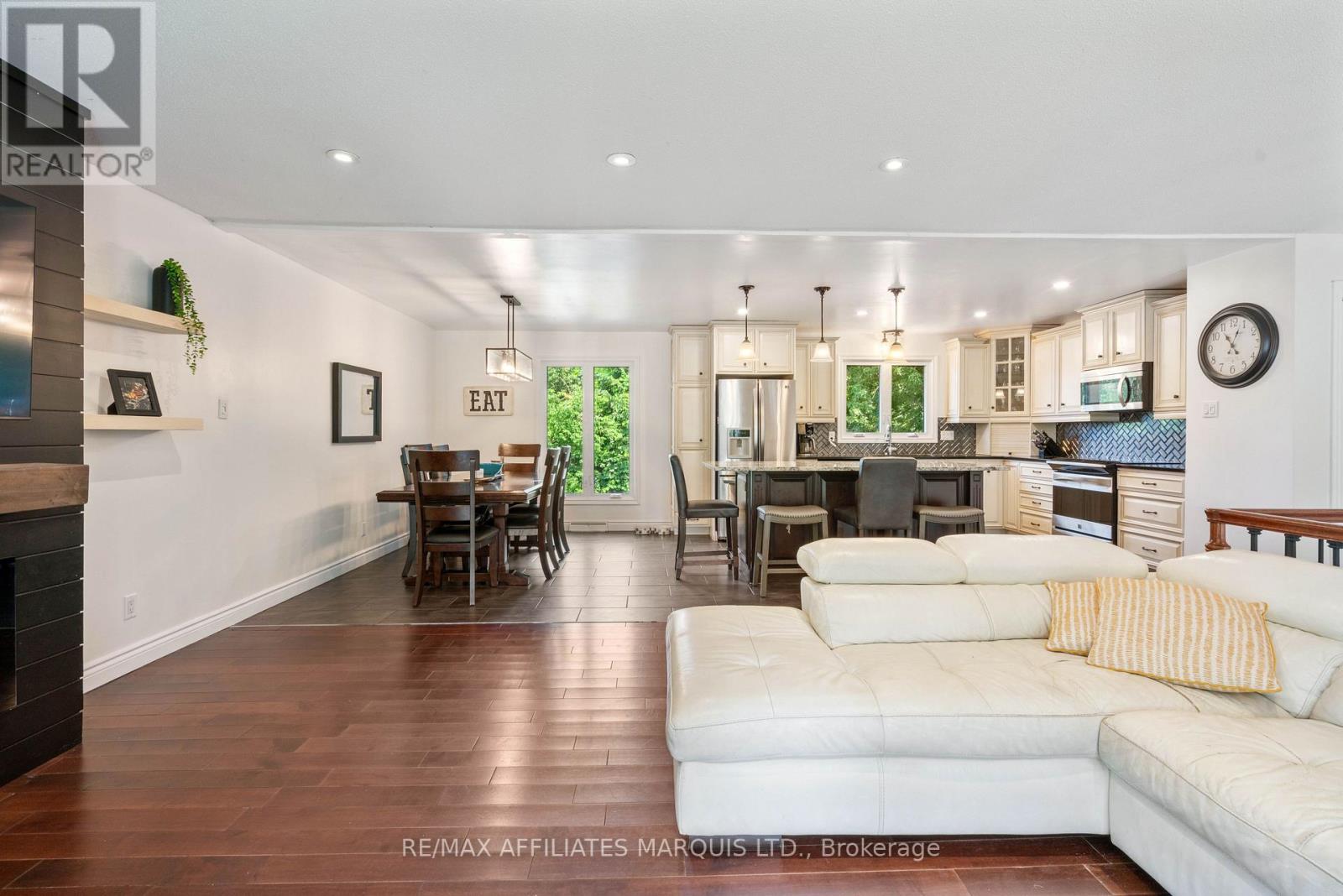 Nestled at the end of a quiet cul-de-sac in the sought-after Riverdale neighborhood, this beautifully maintained raised bungalow with a walk-out basement offers an exceptional blend of privacy, comfort, and convenience. Abutting a wooded area and nearby trails, the property provides a peaceful, nature-filled setting while still being just moments from parks and high-rated schools. Riverdale Park is within walking distance and features a playground, splash pad, basketball and tennis courts, making it an ideal location for families. The home itself is equally impressive. The main floor features an open-concept design that seamlessly connects the living, dining, and kitchen areas, perfect for both everyday living and entertaining. Hardwood flooring adds warmth and character, while a cozy fireplace anchors the living room. The updated kitchen is thoughtfully designed with beautiful cabinetry, stone countertops, and stainless steel appliances, offering both style and practicality. Three well-proportioned bedrooms and a full family bathroom with a double vanity complete the main level. The fully finished lower level extends the living space with a spacious family room featuring a second fireplace, a three-piece bathroom, and a dedicated laundry area. A recently added sunroom provides a bright transitional space and direct access to the backyard, ideal for indoor-outdoor living and entertaining. Combining a prime location, a functional layout, and tasteful modern updates, this property presents an outstanding opportunity to own a truly exceptional family home. (id:64974)