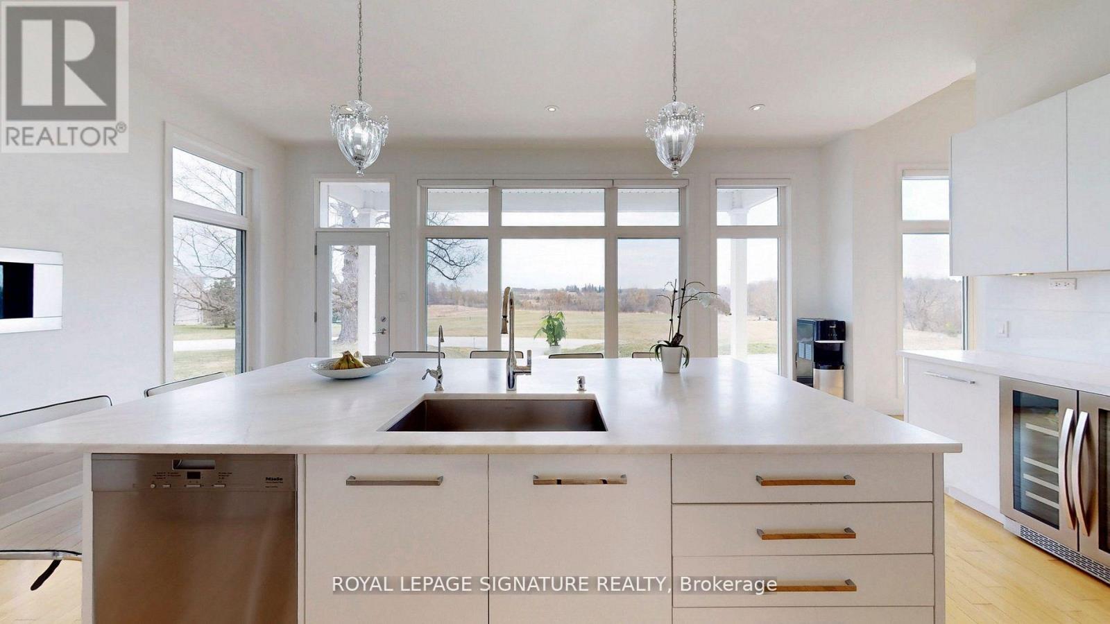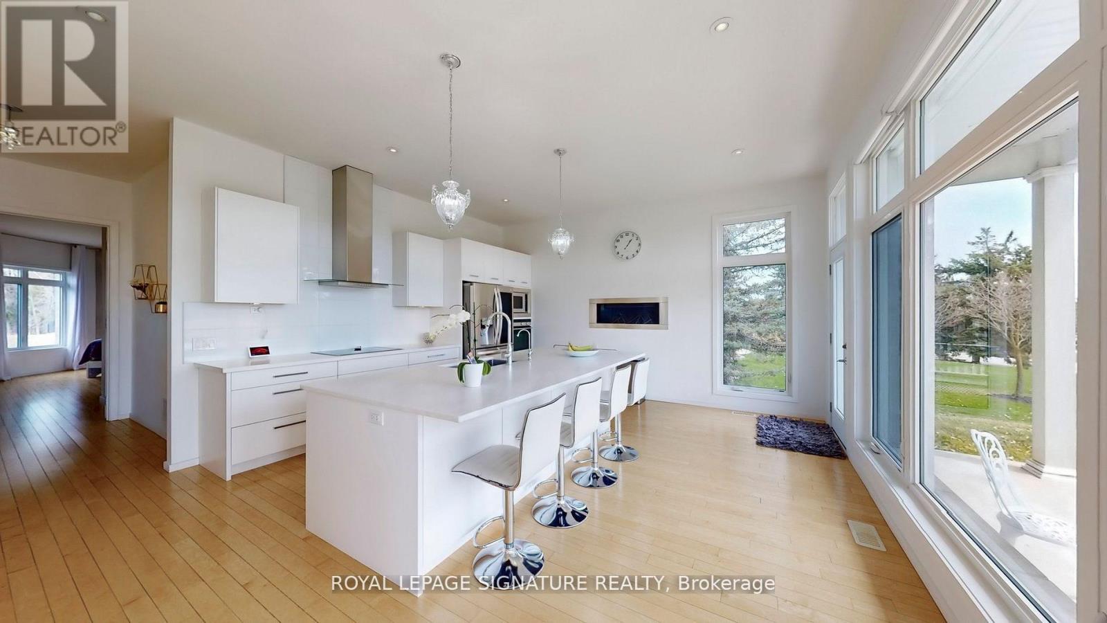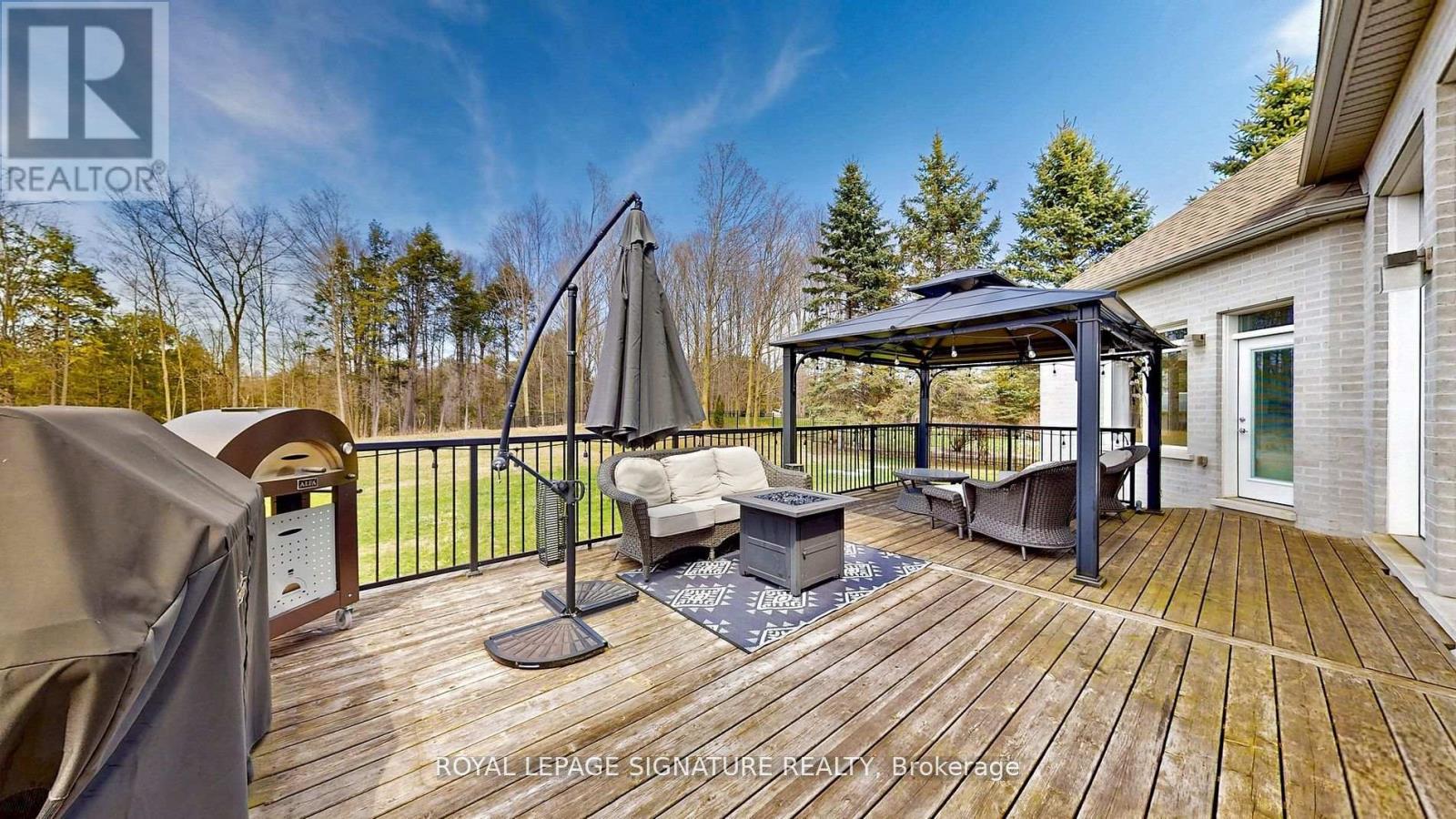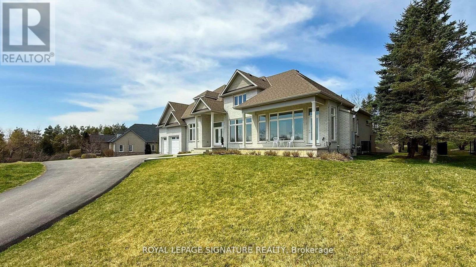 Stunning custom-built bungaloft on a private, just over 1-acre hilltop lot in Claremont with 12 ceilings in the great room, 10 ceilings on main, and 9 ceilings in the finished walk-out basement. Floor-to-ceiling windows capture panoramic views of the rolling hills. Open-concept layout with hardwood floors, custom kitchen, 3 gas fireplaces, and a luxurious primary suite with deck access. The lower level basement features a complete in-law suite with 2 bedrooms, full kitchen, 3-piece bath, laundry, private entrance, plus an additional 1,200 sq ft of semi-finished recreational space already roughed-in for a home theater. Spacious heated 4-car garage with 11 ceilings offers exceptional convenience. A rare blend of elegance, space, and privacy just minutes from city amenities (id:64974)