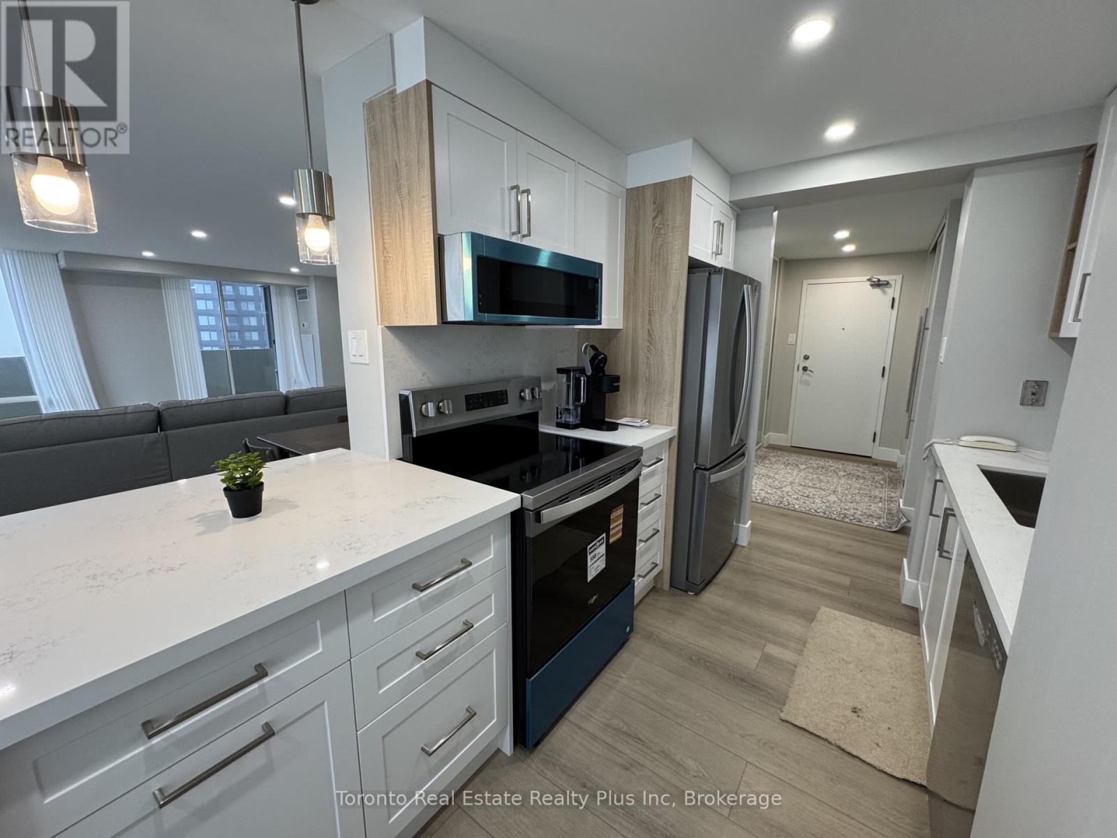 Beautiful completely big and spacious fully renovated corner unit with exceptional views. Fully renovated kitchen, completely renovated bathrooms, brand new kitchen, upgraded lighting throughout,. Located in a prime area just steps from the GO Train and major public transit making commuting effortless. Includes 2 parking spaces for added value. Ideal for tenants looking for quality, style and accessibility. (id:64974)