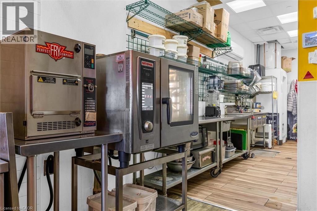 RARE TURN-KEY RESTAURANT OPPORTUNITY IN PREMIUM RIOCAN PLAZA! Incredible opportunity to acquire a fully built-out, 1,191 sq. ft. fast-casual restaurant in Hamilton’s bustling Upper James Square. Located in a high-traffic, professionally managed RioCan power centre, this unit benefits from massive daily foot traffic and exposure alongside powerhouse co-tenants like Winners, Mandarin, Montana's, and Starbucks. Skip the massive upfront costs, permit delays, and headaches of building a commercial kitchen from scratch! This asset sale includes a fully fitted turn-key setup and an extensive equipment package perfectly optimized for a high-volume takeout or fast-casual concept. Please contact the listing agent directly for the complete equipment list and value breakdown. Secure your business's future by taking over a highly competitive existing lease expiring July 31, 2030. The buyer has the opportunity to bring their own brand and menu, subject to the Landlord’s written approval of the use clause and lease assignment. (id:64974)
