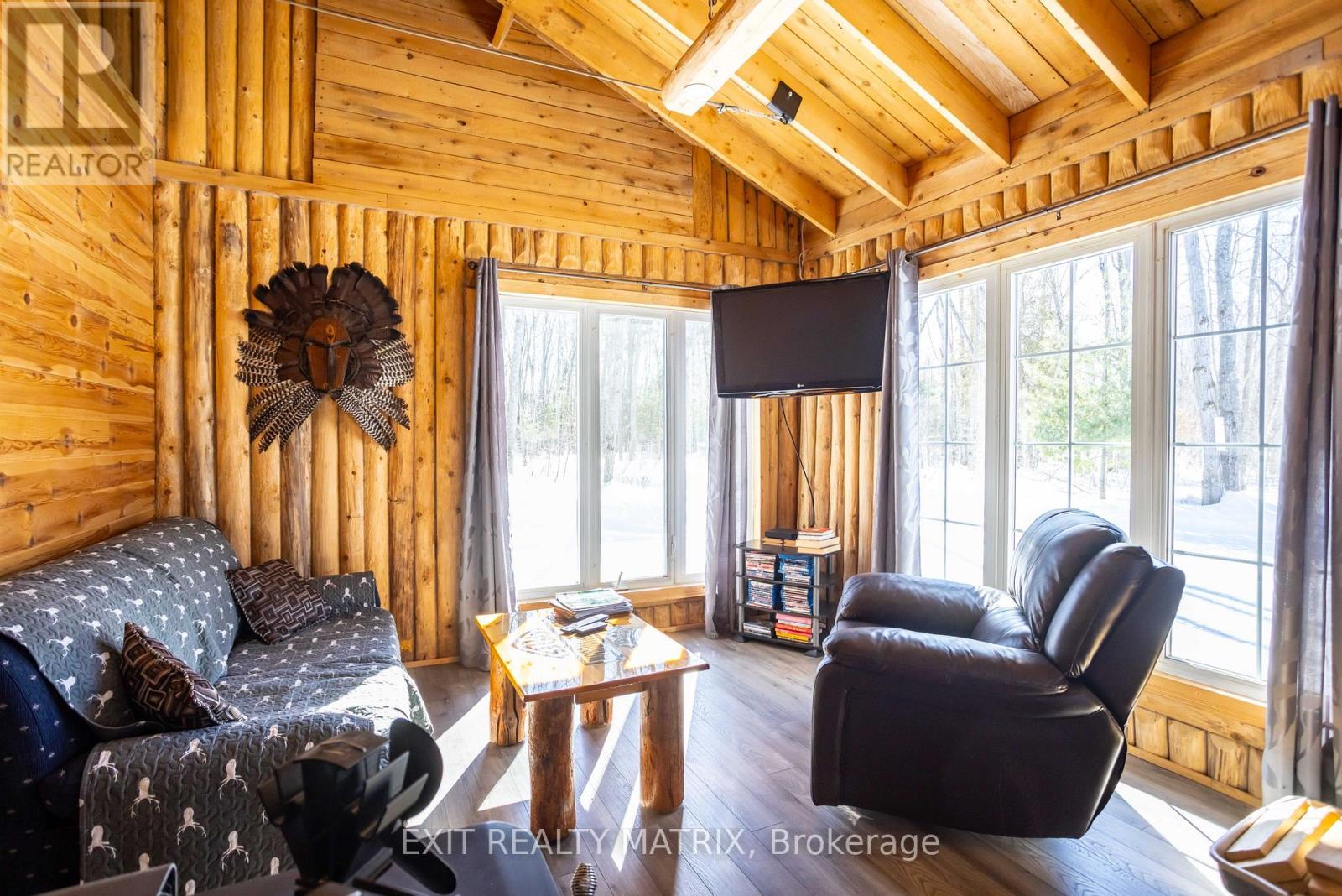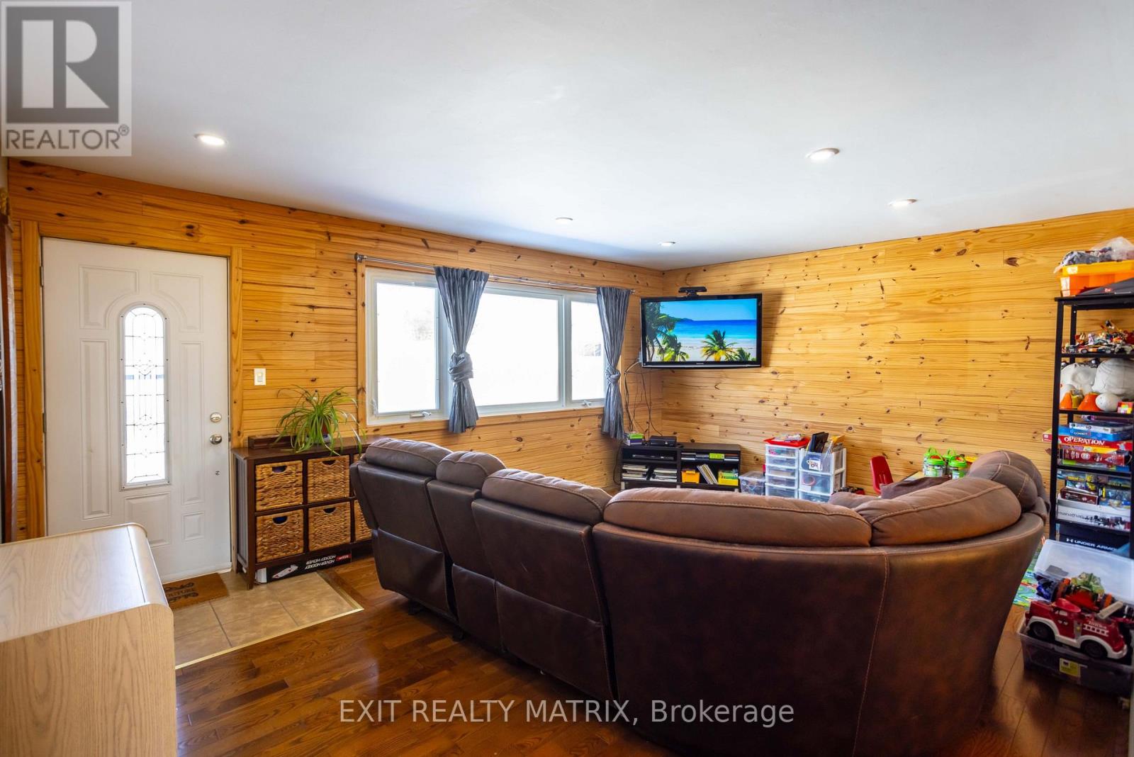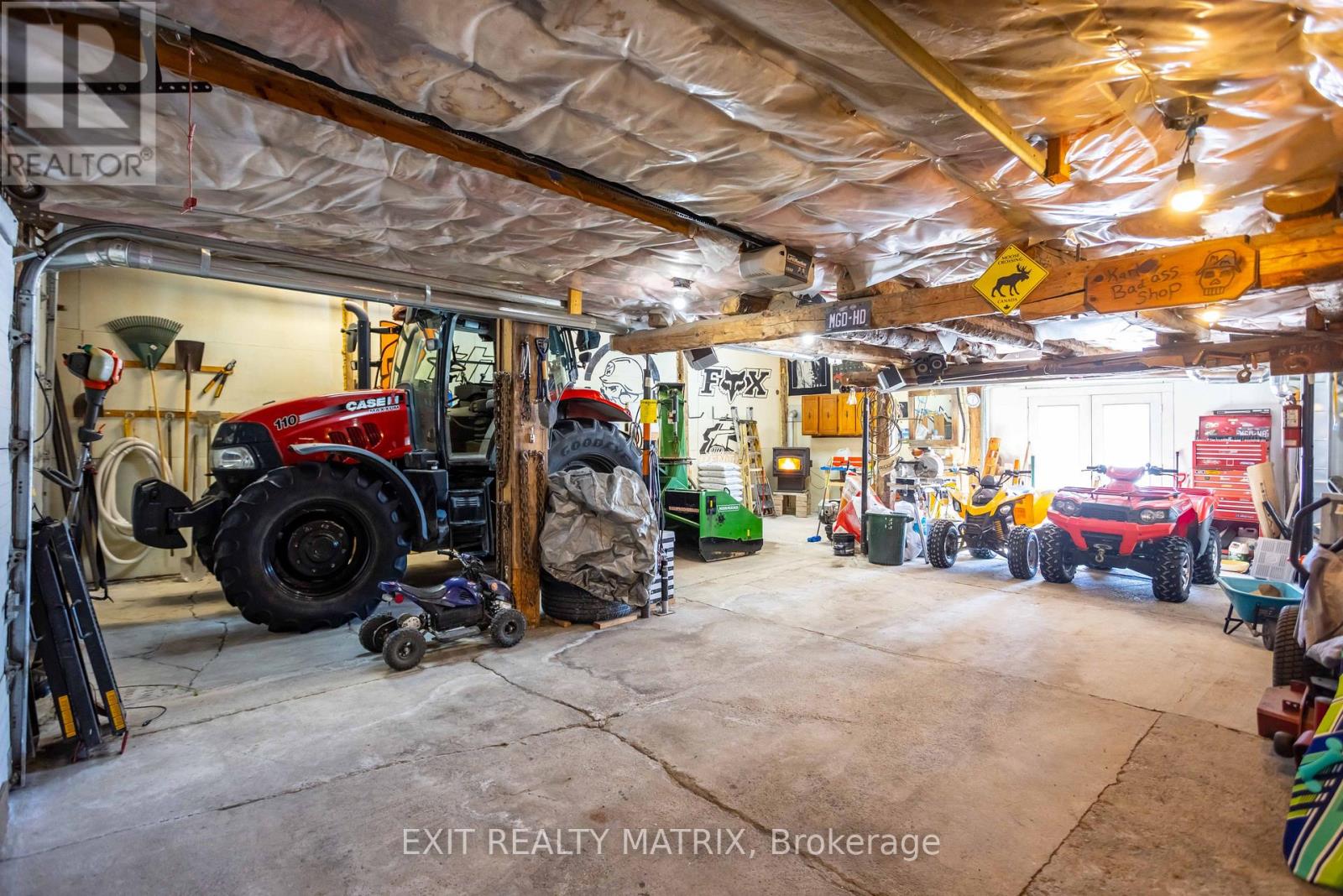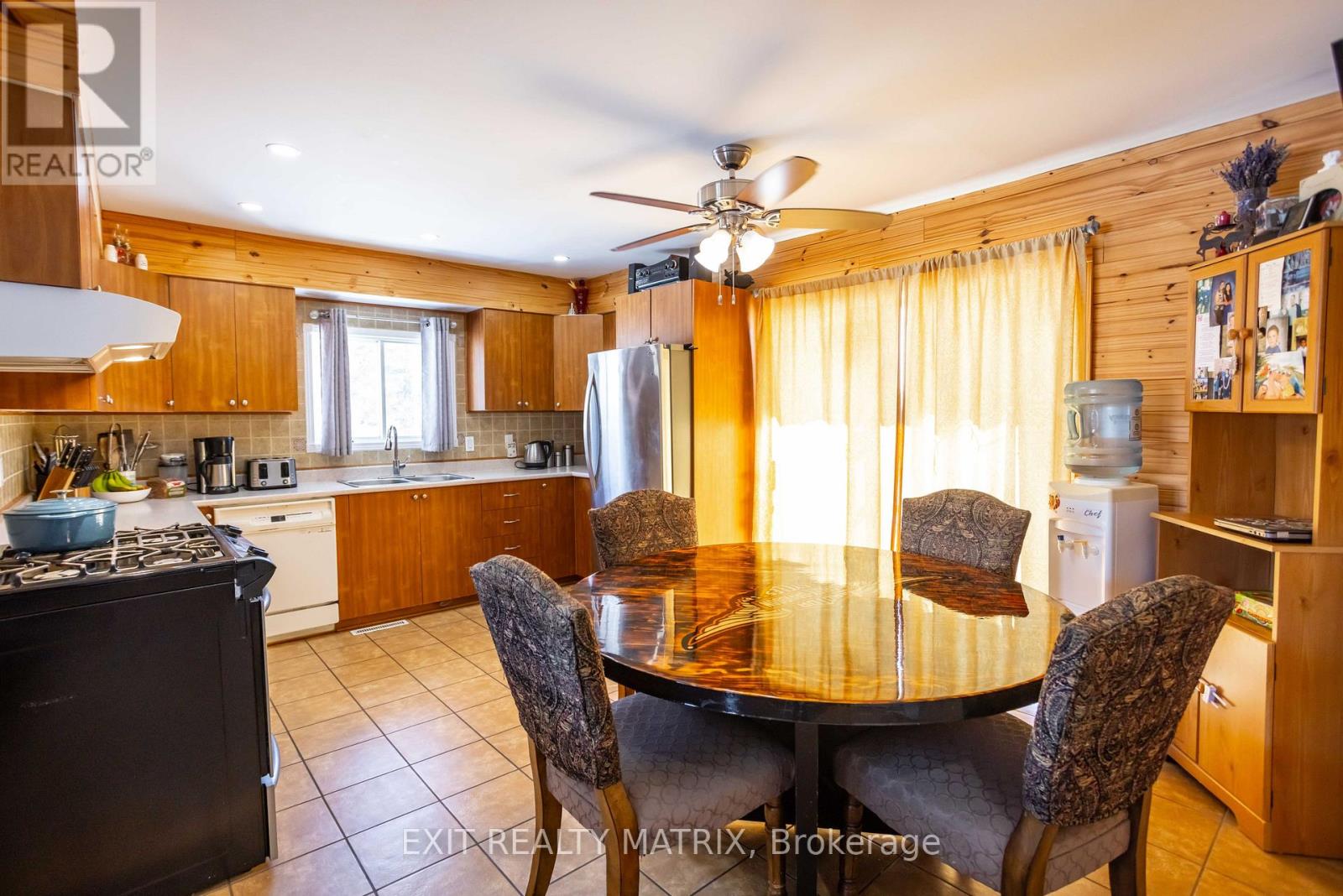 Welcome to this fully updated 2+1 bedroom hi-ranch bungalow set on a beautiful 34-acre property just 25 minutes from Ottawa. The land includes approximately 20 acres of cash-crop fields and 14 acres mixed with pond, maple trees, woods, and excellent hunting, offering incredible versatility, privacy, and natural beauty. A unique feature of this property is the newly built (2021) private cabin with sauna, tucked away at the end of the property. Perfect for extended family, guests, or potential Airbnb income, especially with Calypso Waterpark only 5 minutes away. The property also features a large heated three-door garage (formerly a 6-stall barn). The second floor is already "chicken ready" and offers 15-foot high sealings for great storage area. Inside the home, you'll find a bright kitchen with abundant cabinetry, a dining area with patio doors overlooking the acreage and above-ground pool, and a spacious living room with hardwood floors. The main level offers two generous bedrooms, including a large primary bedroom, along with an updated bathroom. The fully finished lower level includes a third bedroom, family room, and laundry/storage area, with plenty of windows bringing in natural light. Major updates include the home being placed on a new foundation in 2010, with new septic, well, furnace (2025), French drains (2021) . The house offers 3 heating options (wood, propane, heat pump) wood stove recently inspected by the insurance company. The garage offers propane and pellet options for heating. The one-bedroom cabin includes propane, generator, chemical toilet, woodstove. Cabin was used as an Airbnb rental. The 34 acres partially tiled and drained, making the land ideal for agriculture, recreation, hobby farming, or future projects. A rare opportunity to own a versatile country property with multiple buildings, income potential, and endless possibilities, all within easy commuting distance to Ottawa and biking distance to Calypso Waterpark. (id:64974)