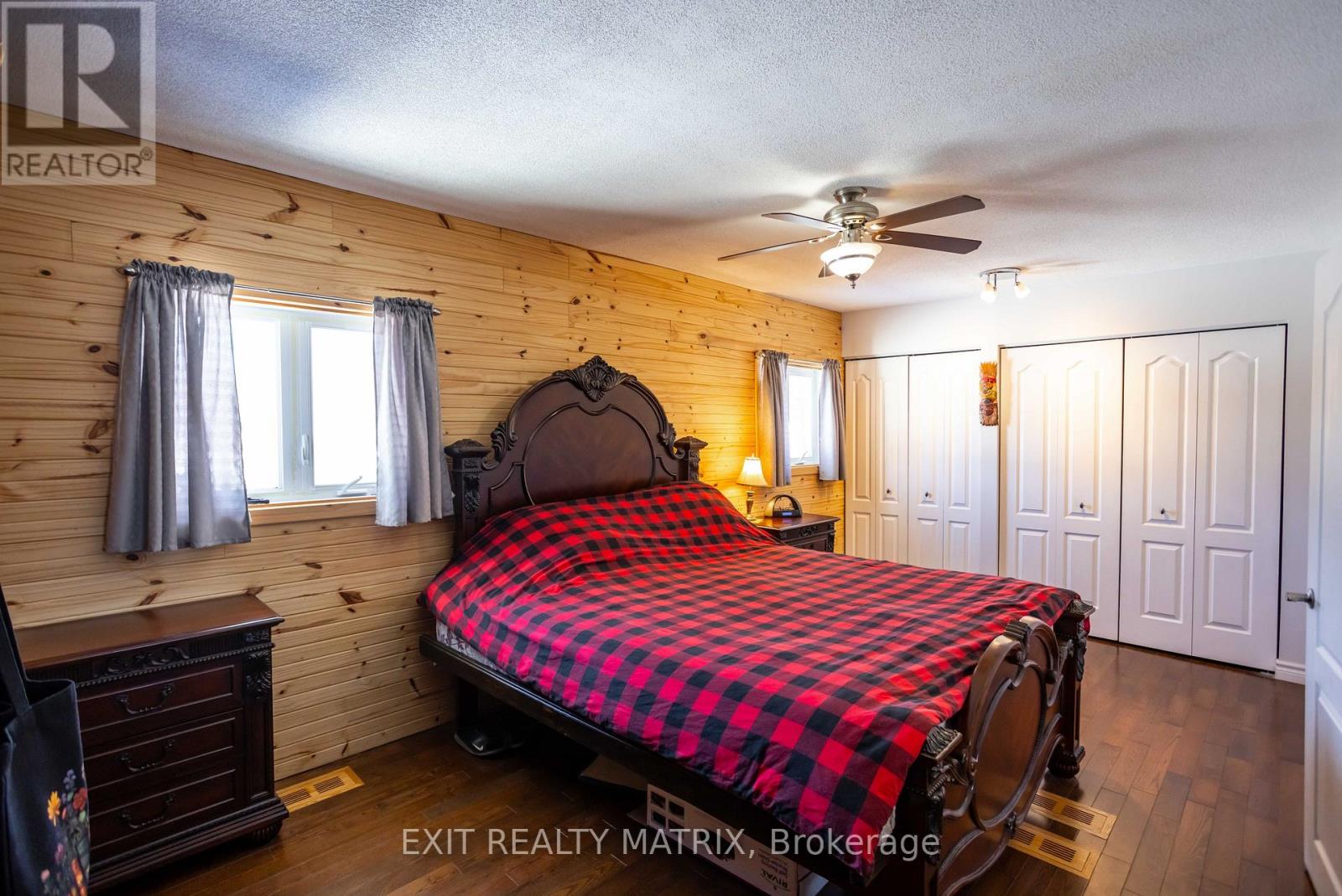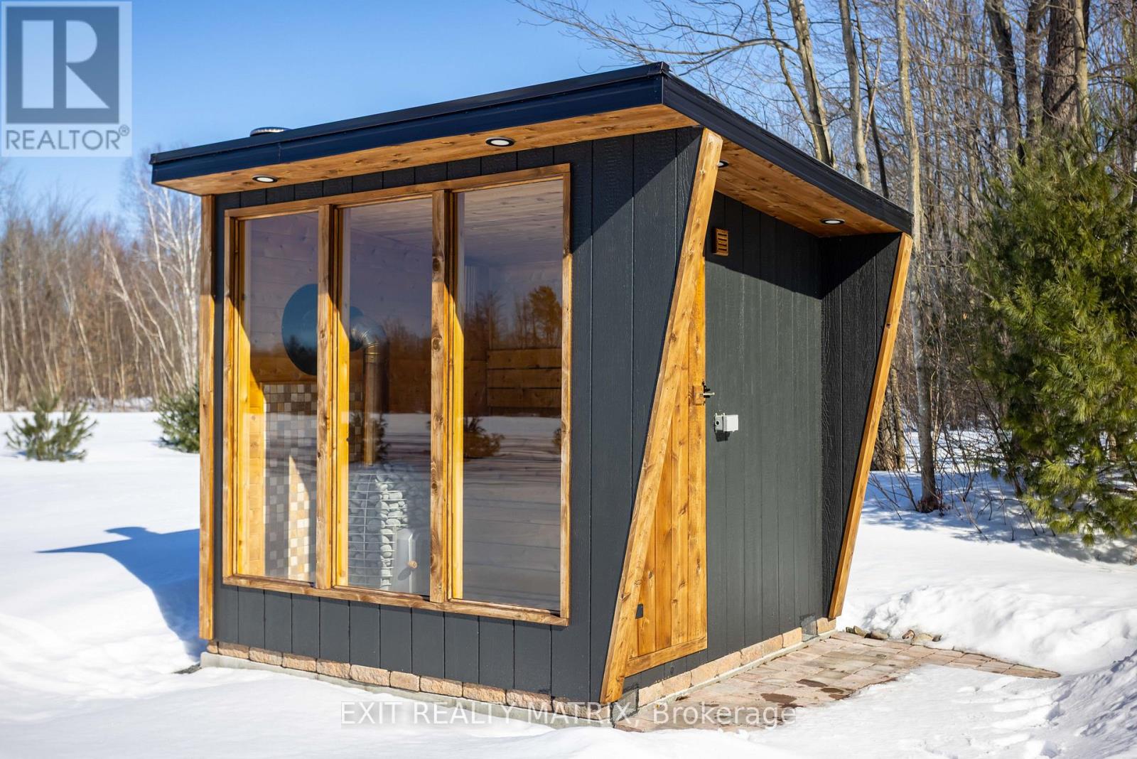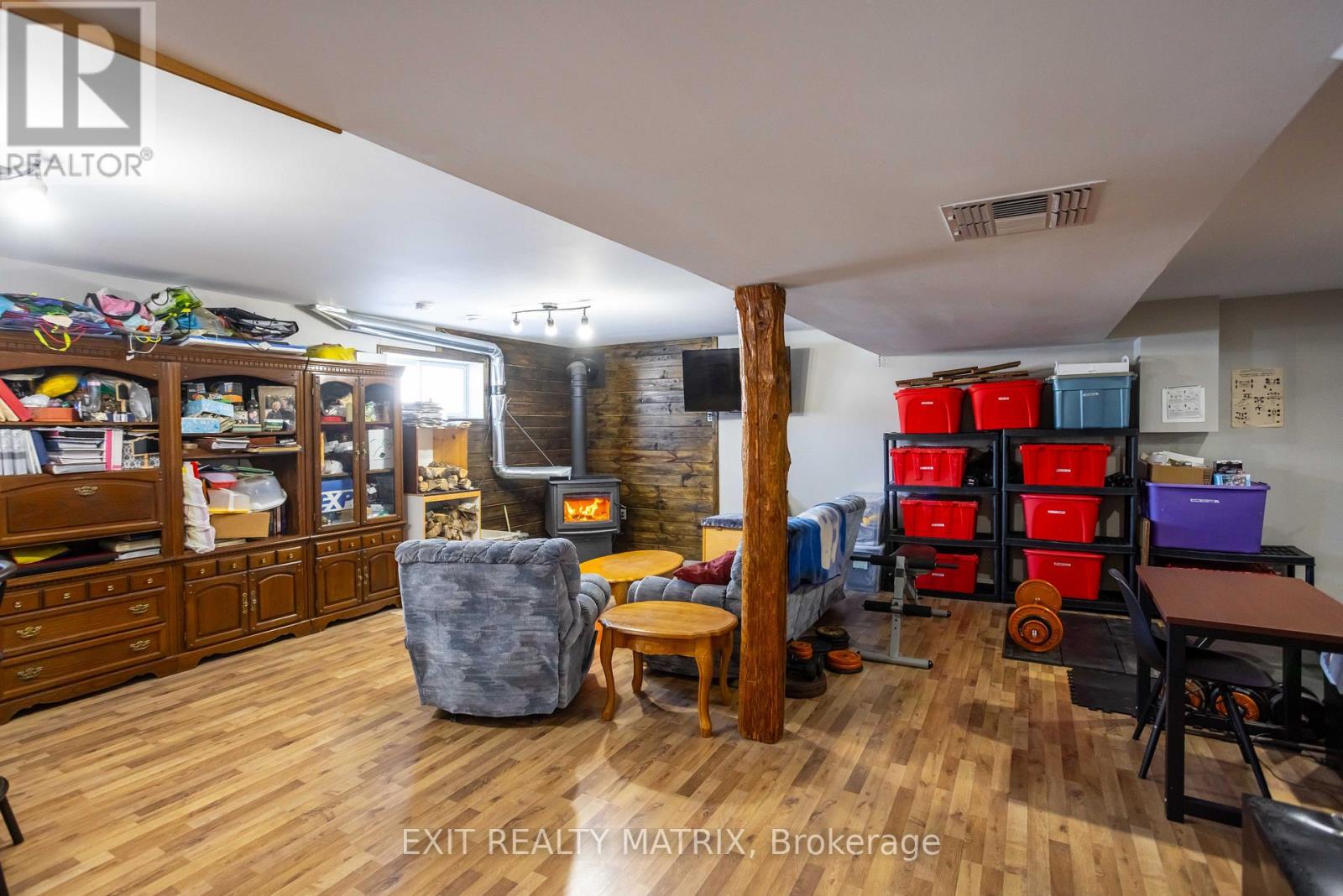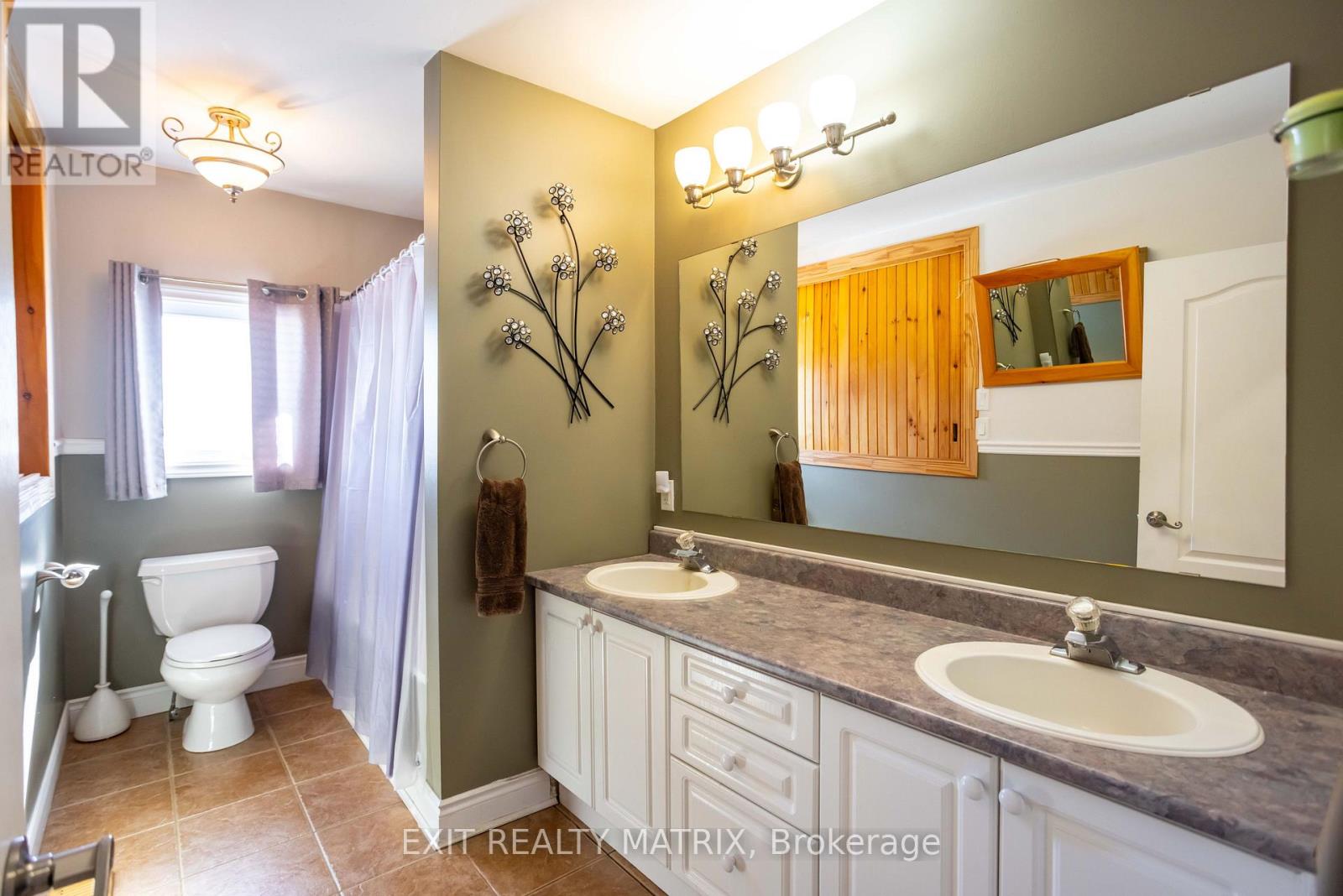 Welcome to this fully updated 2+1 bedroom hi-ranch bungalow set on a beautiful 34-acre property just 25 minutes from Ottawa. The land includes approximately 20 acres of cash-crop fields and 14 acres mixed with pond, maple trees, woods, and excellent hunting, offering incredible versatility, privacy, and natural beauty. A unique feature of this property is the newly built (2021) private cabin with sauna, tucked away at the end of the property. Perfect for extended family, guests, or potential Airbnb income, especially with Calypso Waterpark only 5 minutes away. The property also features a large heated three-door garage (formerly a 6-stall barn). The second floor is already "chicken ready" and offers 15-foot high sealings for great storage area. Inside the home, you'll find a bright kitchen with abundant cabinetry, a dining area with patio doors overlooking the acreage and above-ground pool, and a spacious living room with hardwood floors. The main level offers two generous bedrooms, including a large primary bedroom, along with an updated bathroom. The fully finished lower level includes a third bedroom, family room, and laundry/storage area, with plenty of windows bringing in natural light. Major updates include the home being placed on a new foundation in 2010, with new septic, well, furnace (2025), French drains (2021) . The house offers 3 heating options (wood, propane, heat pump) wood stove recently inspected by the insurance company. The garage offers propane and pellet options for heating. The one-bedroom cabin includes propane, generator, chemical toilet, woodstove. Cabin was used as an Airbnb rental. The 34 acres partially tiled and drained, making the land ideal for agriculture, recreation, hobby farming, or future projects. A rare opportunity to own a versatile country property with multiple buildings, income potential, and endless possibilities, all within easy commuting distance to Ottawa and biking distance to Calypso Waterpark. (id:64974)