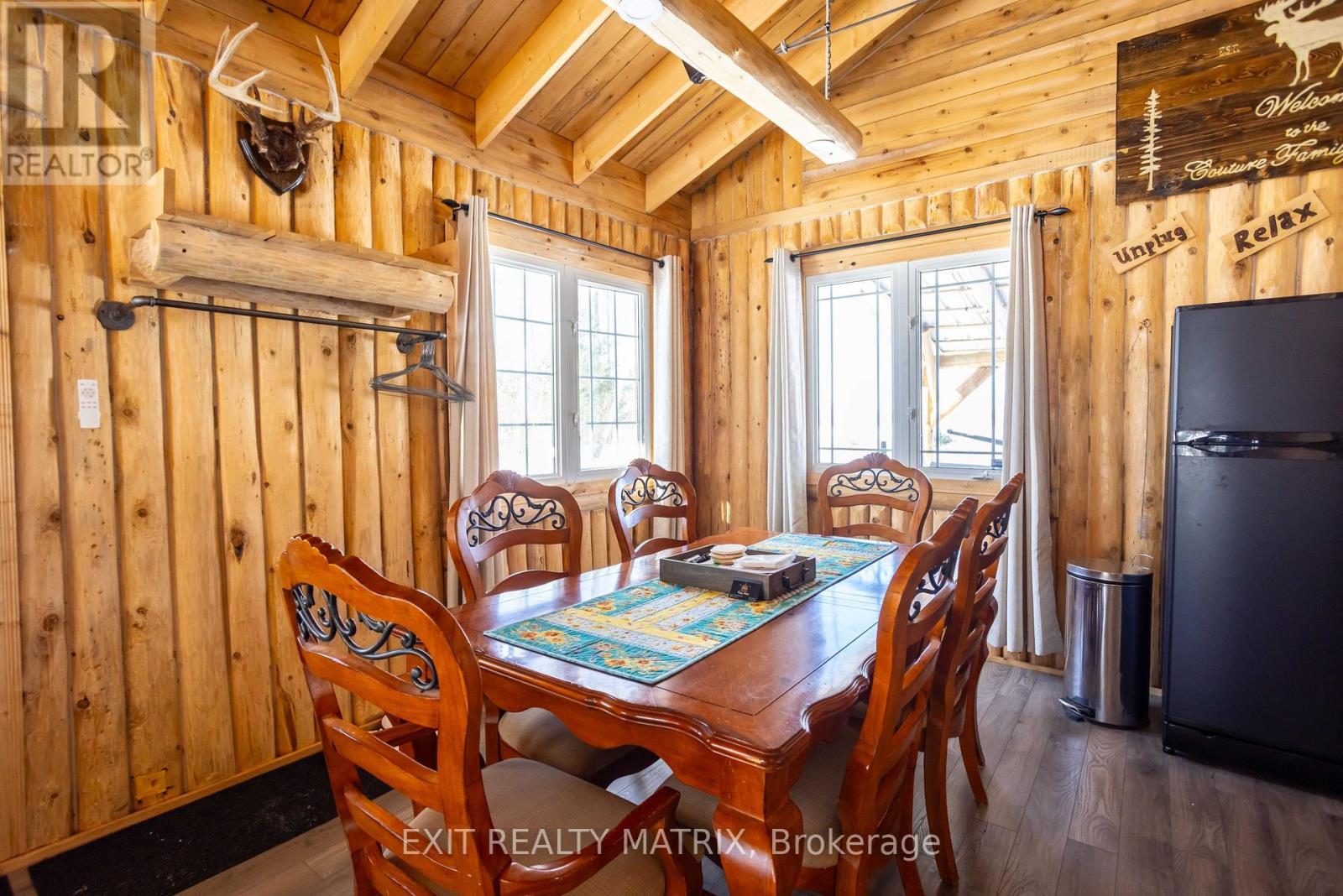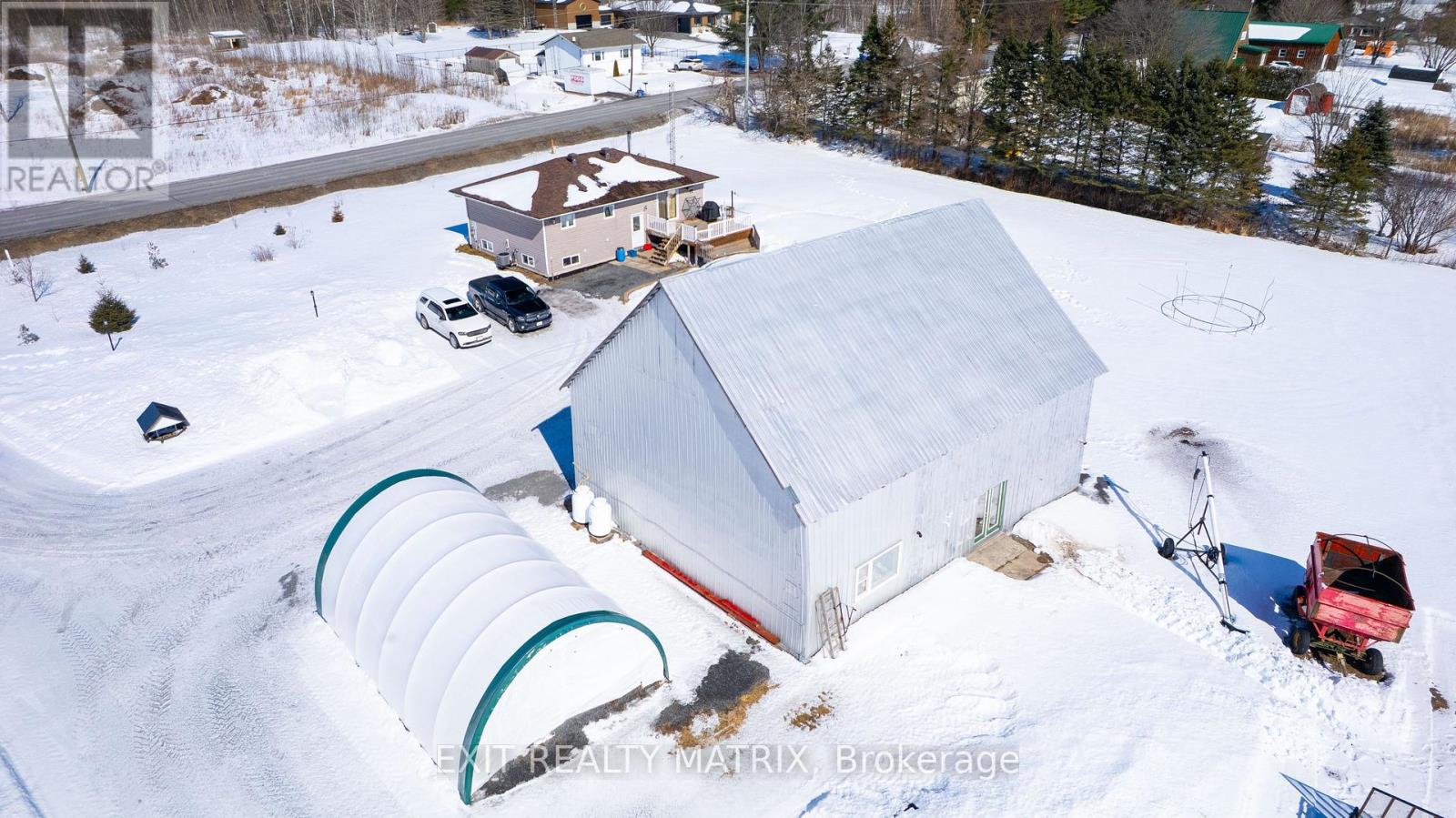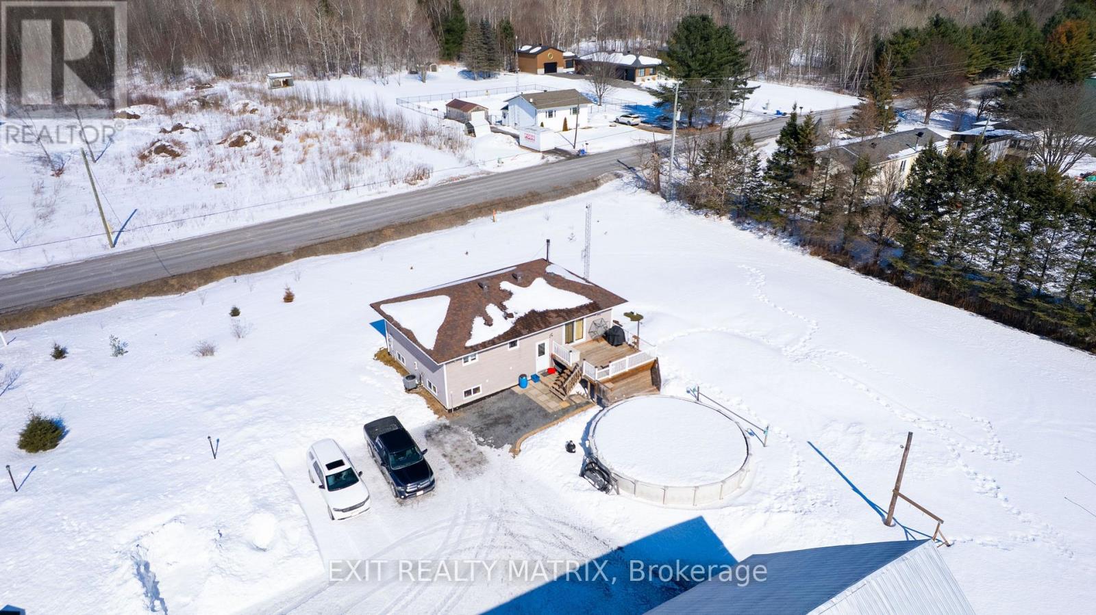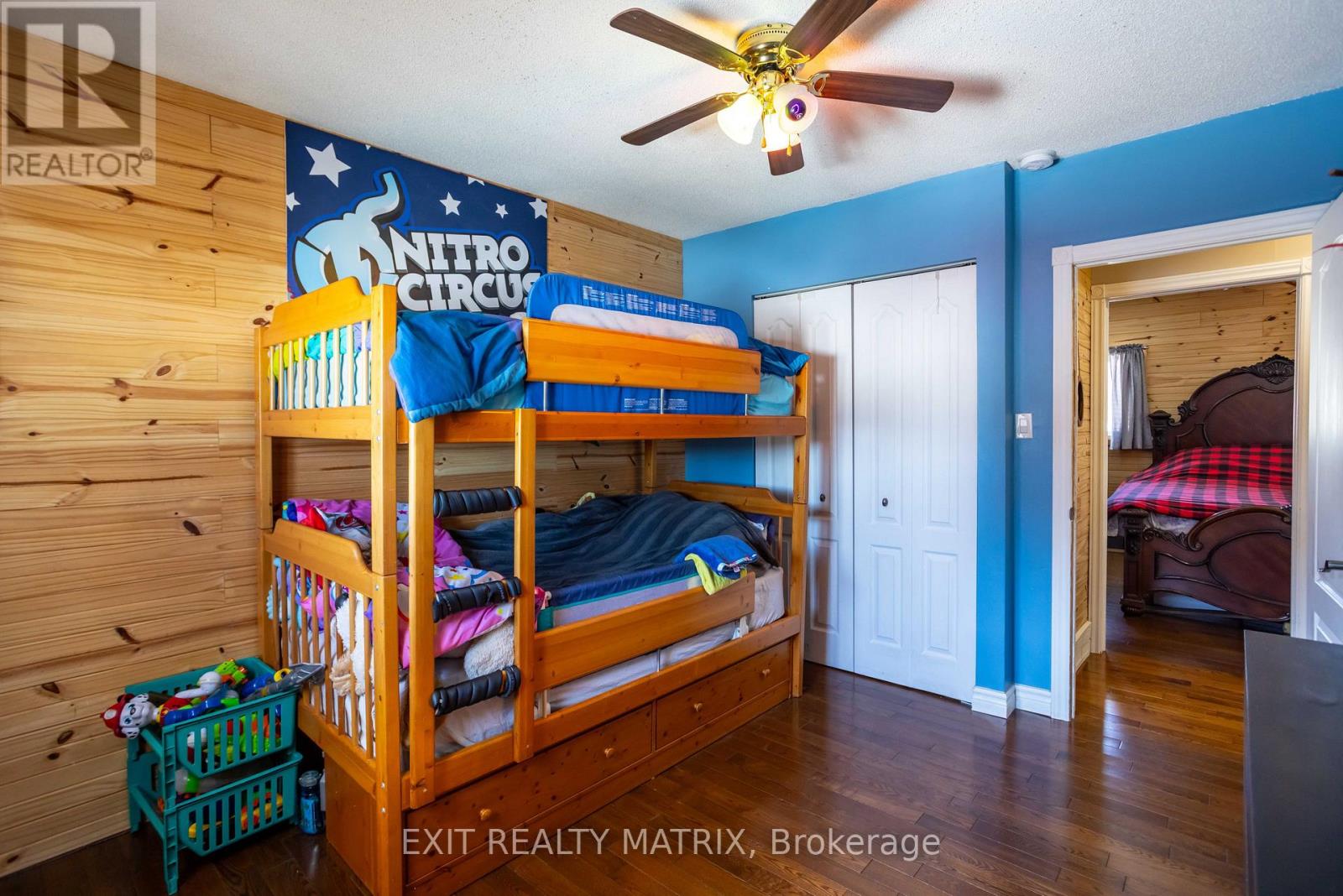 Welcome to this fully updated 2+1 bedroom hi-ranch bungalow set on a beautiful 34-acre property just 25 minutes from Ottawa. The land includes approximately 20 acres of cash-crop fields and 14 acres mixed with pond, maple trees, woods, and excellent hunting, offering incredible versatility, privacy, and natural beauty. A unique feature of this property is the newly built (2021) private cabin with sauna, tucked away at the end of the property. Perfect for extended family, guests, or potential Airbnb income, especially with Calypso Waterpark only 5 minutes away. The property also features a large heated three-door garage (formerly a 6-stall barn). The second floor is already "chicken ready" and offers 15-foot high sealings for great storage area. Inside the home, you'll find a bright kitchen with abundant cabinetry, a dining area with patio doors overlooking the acreage and above-ground pool, and a spacious living room with hardwood floors. The main level offers two generous bedrooms, including a large primary bedroom, along with an updated bathroom. The fully finished lower level includes a third bedroom, family room, and laundry/storage area, with plenty of windows bringing in natural light. Major updates include the home being placed on a new foundation in 2010, with new septic, well, furnace (2025), French drains (2021) . The house offers 3 heating options (wood, propane, heat pump) wood stove recently inspected by the insurance company. The garage offers propane and pellet options for heating. The one-bedroom cabin includes propane, generator, chemical toilet, woodstove. Cabin was used as an Airbnb rental. The 34 acres partially tiled and drained, making the land ideal for agriculture, recreation, hobby farming, or future projects. A rare opportunity to own a versatile country property with multiple buildings, income potential, and endless possibilities, all within easy commuting distance to Ottawa and biking distance to Calypso Waterpark. (id:64974)