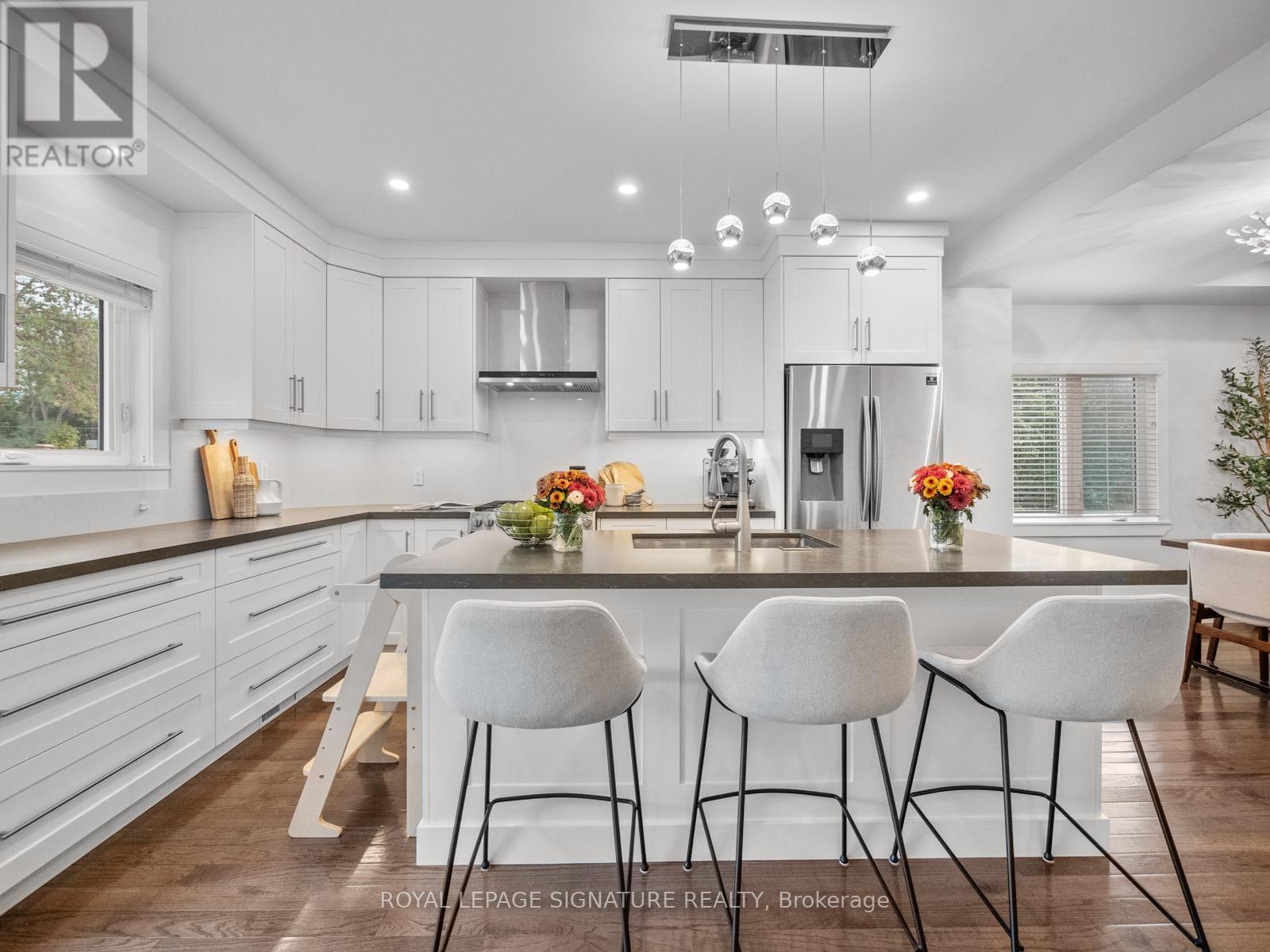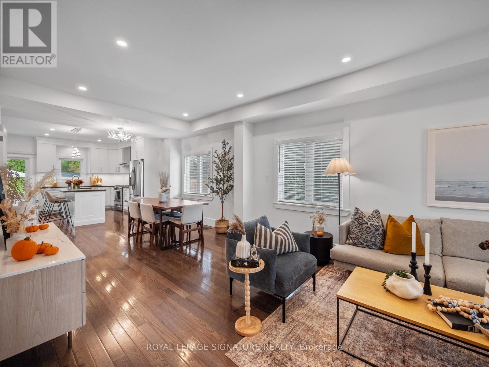 Turn-key and thoughtfully updated, this family-friendly Birch Cliff home blends comfort, function, and modern design. The inviting foyer opens to a bright living and dining area that flows seamlessly into a modern kitchen with a large island, equipped with updated Samsung stainless steel appliances (2020), perfect for everyday living and entertaining. Upstairs, the fully remodelled bathroom (2025) showcases timeless finishes and quality craftsmanship. Each bedroom is well-sized with updated flooring and paint, offering a warm and comfortable retreat for the whole family. The newly finished basement (2025) extends the living space with a renovated bedroom, new flooring, built-in laundry, and fresh paint, making it ideal for guests or home office. Comfort comes easy with a new Bosch heat pump and Trane furnace (2023), ensuring efficient heating and cooling year-round. Outside, enjoy a large, privately fenced yard surrounded by mature trees, a perennial garden, firepit, and a large 128-sq ft shed. The 8-ft privacy fence (2021) creates a rare backyard oasis perfect for entertaining or relaxing. With a freshly refinished front porch and over $100k+ in upgrades throughout since purchase, this move-in-ready home blends modern updates with the charm of a well-loved family property all in a prime Birch Cliff location just minutes from downtown, parks, schools, and walking distance to vibrant local amenities. The basement bedroom wall is non-load bearing, sellers have extra flooring available. If basement bedroom isn't needed, the space can be opened up and converted into a larger recreation area. (id:64974)