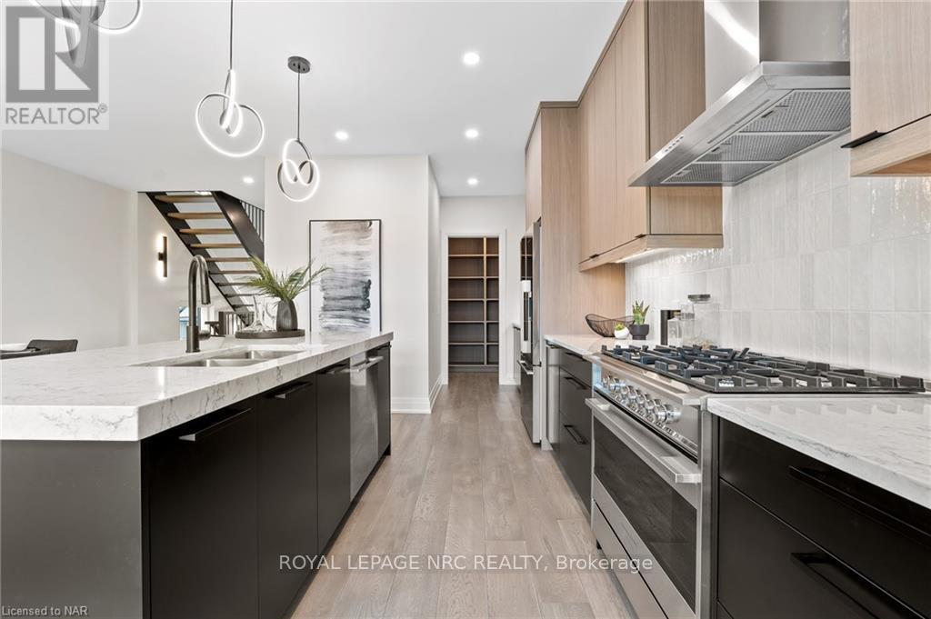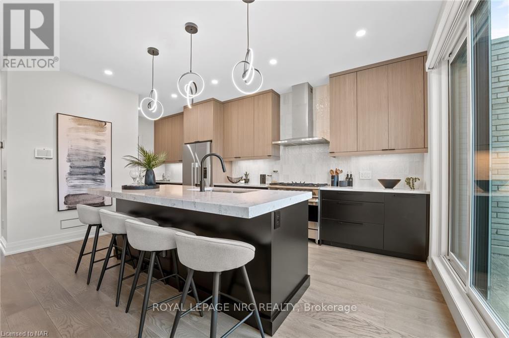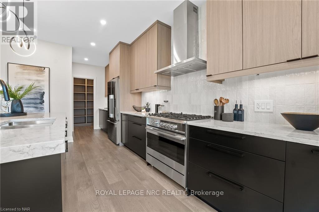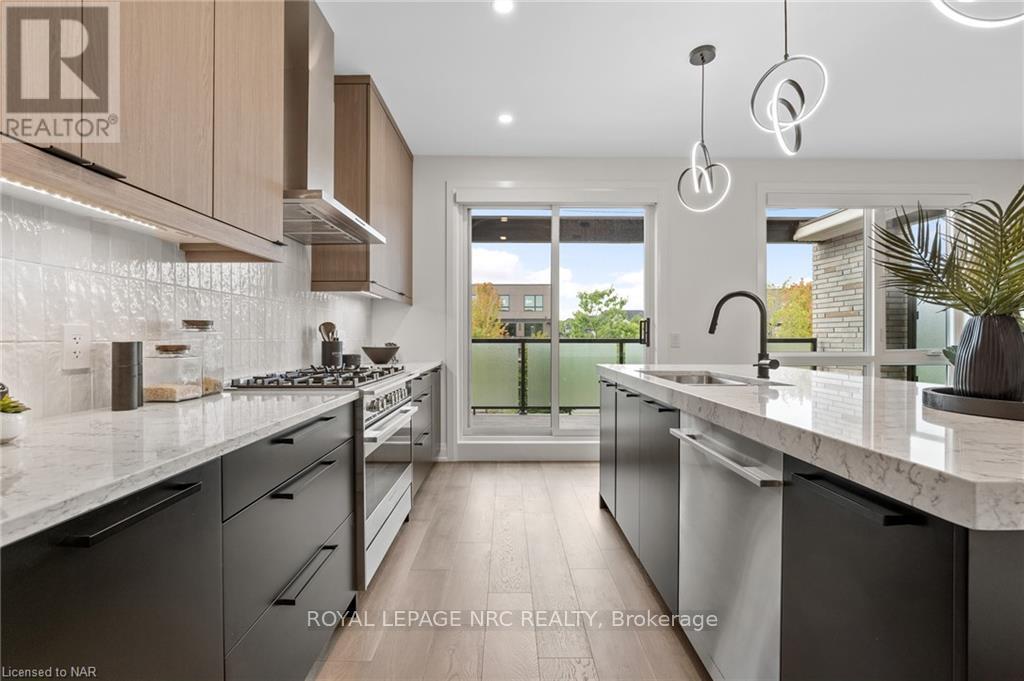 Rinaldi Homes welcomes you to the Fonthill Abbey. Ride in your private elevator to experience all 4 floors of these beautiful units. On the ground floor you will find a spacious foyer, a bedroom, 3pc bathroom & access to the attached 2 car garage. Travel up the stunning oak, open riser staircase to arrive at the second floor that offers 9' ceilings, a large living room with pot lighting & 77" fireplace, a dining room, a gourmet kitchen (with 2.5" thick quartz counters, pot lights, under cabinet lights, backsplash, fridge water line, gas & electric hookups for stove), a servery, walk in pantry and a 2pc bathroom. Full Fisher Paykel & Electrolux appliance package included. Off the kitchen you will find the incredible 20'4"x7'9" balcony above the garage (with frosted glass and masonry privacy features between units & a retractable awning). The third floor offers a serene primary bedroom suite with walk-in closet & luxury 5 pc ensuite bathroom (including quartz counters on vanity and a breathtaking glass & tile shower), laundry, 4pc bathroom and the 2nd bedroom. Remote controlled Hunter Douglas window coverings included. Finished basement offers luxury vinyl plank flooring and a spacious storage area. Exquisite engineered hardwood flooring & 12"x24" tiles adorn all above grade rooms (carpet on basement stairs). Smooth drywall ceilings in finished areas. Elevator maintenance included for 5 years. Smart home system with security features. Sod, interlock walkways & driveways (4 car parking at each unit between garage & driveway) and landscaping included. Only a short walk to downtown Fonthill, shopping, restaurants & the Steve Bauer Trail. Easy access to world class golf, vineyards, the QEW & 406. $280/month condo fee includes water and grounds maintenance. Forget being overwhelmed by potential upgrades, the luxury you've been dreaming about is standard at the Fonthill Abbey! (id:64974)