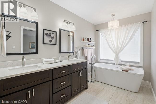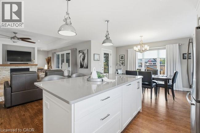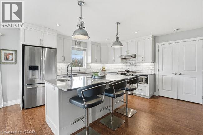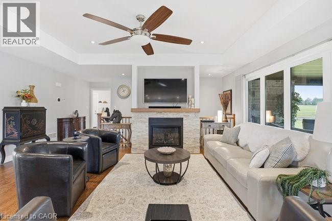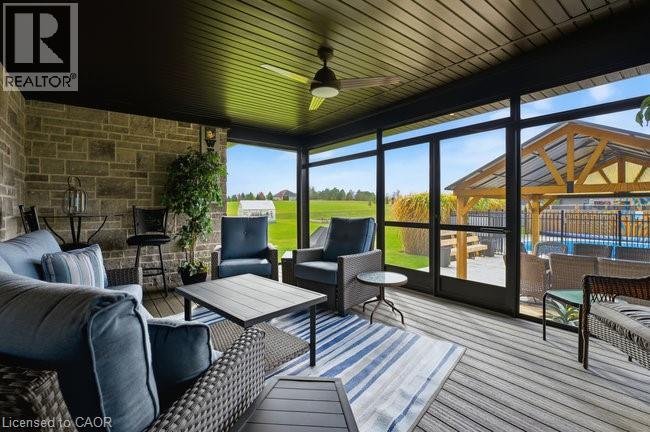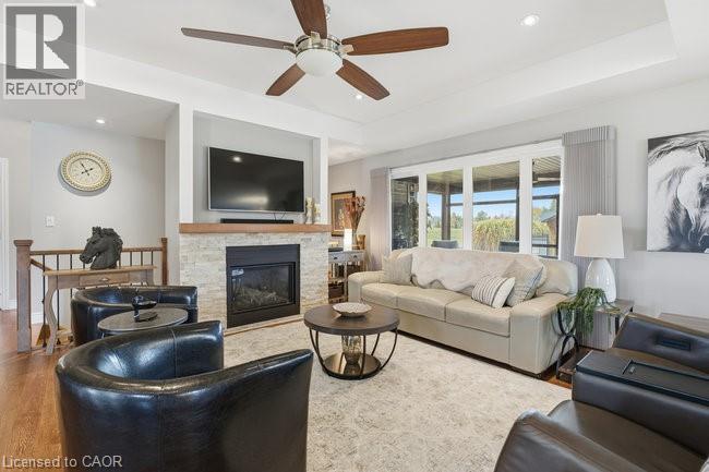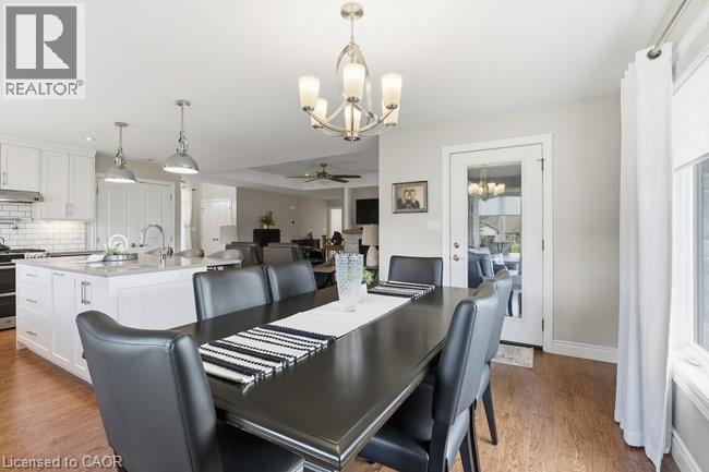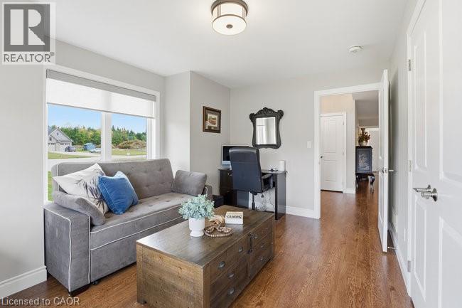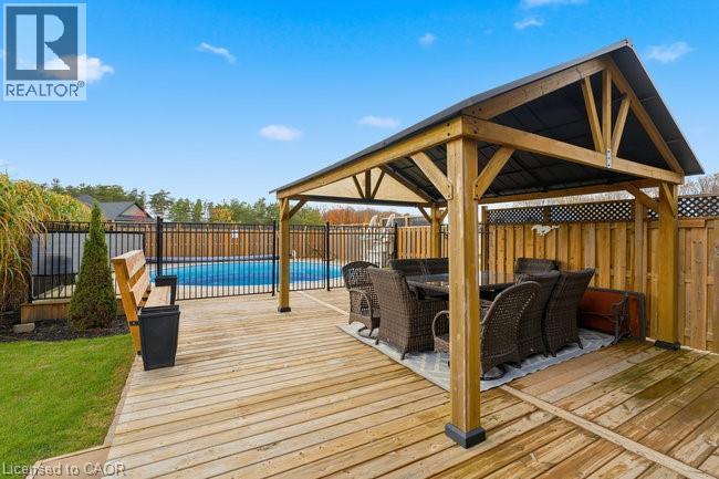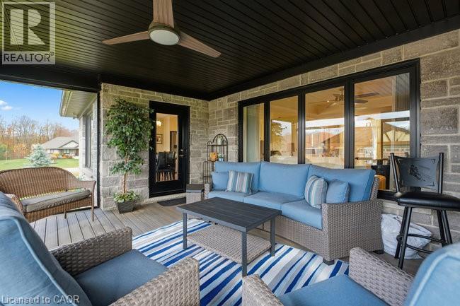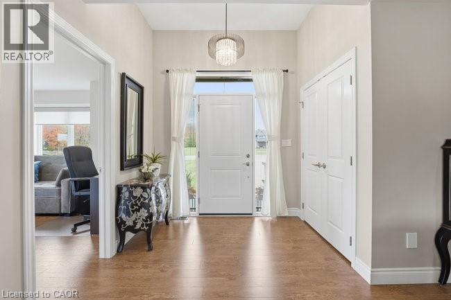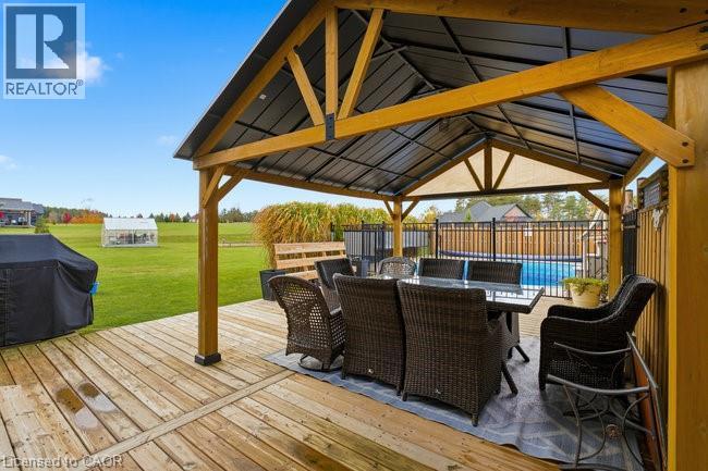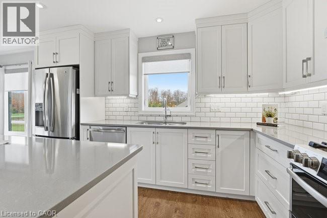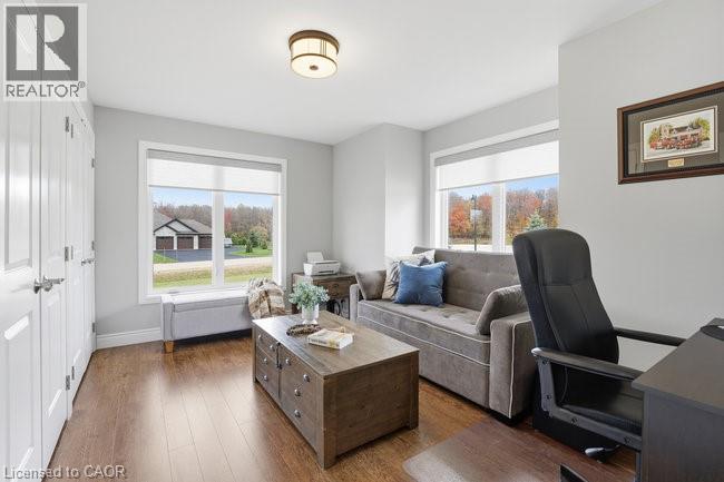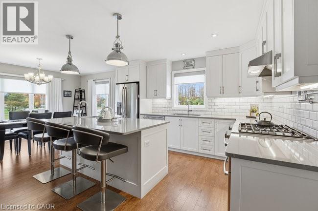 Welcome to this exceptional bungalow, perfectly situated on a spacious lot offering privacy, style, and room to entertain. The property features an impressive 4-car garage and a driveway that accommodates 12+ vehicles -perfect for gatherings or hobby enthusiasts. Step inside to an open-concept main floor filled with natural light and modern finishes. The bright, upgraded kitchen is a chef's dream, featuring a double-door pantry, Italian pot filler, and under-island garbage bins -beautifully blending function and design. The mudroom offers custom cabinetry and convenient direct garage access. The primary bedroom is a true retreat, showcasing a coffered ceiling, custom reading lights, and a luxurious 5-piece ensuite with a walk-in shower and free-standing tub. The second bedroom is currently used as a home office, offering flexibility for your lifestyle. A finished basement provides plenty of additional living space, including two additional spacious bedrooms, a home gym complete with sauna, and a 4-piece bathroom-ideal for guests or family. Step outside to your own private oasis: a covered lanai, on-ground pool, and hot tub create the perfect setting for relaxation and entertaining - all fenced and landscaped to provide the ultimate in privacy. This property truly offers the best of country living with refined style and comfort -an exceptional opportunity in beautiful West Grey. (id:64974)