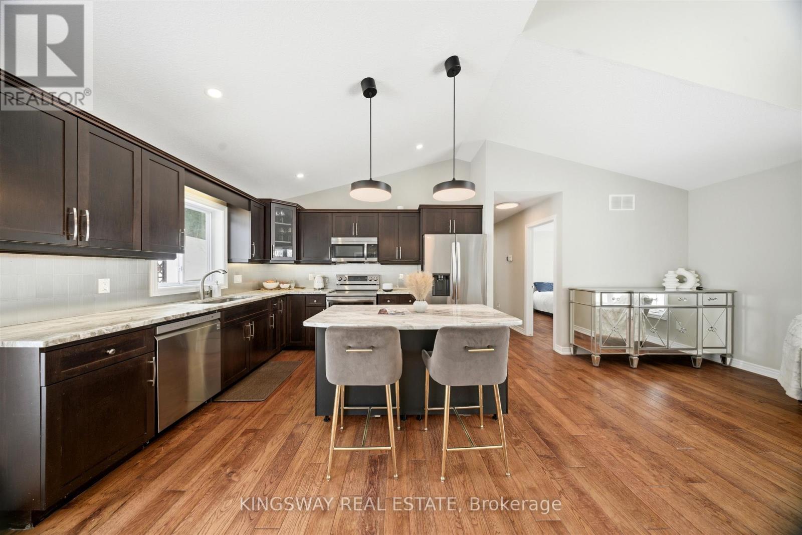 Gorgeous executive bungalow set on approximately 1 private acre in Southgate, Grey County. Bright open-concept living and dining area featuring vaulted ceilings, pot lights, and large windows providing excellent natural light throughout. Updated kitchen with LG stainless steel appliances, granite countertops, and large island with lots of storage and bar seating. Ideal for everyday living and entertaining. 3 bedrooms (2+1 layout) with two bedrooms on the main level and a third bedroom on the finished lower level, perfect for guest suite, home office, or flexible workspace. Spacious primary bedroom includes custom built walk-in closet and semi-ensuite 4-piece bath. Convenient main floor laundry with newer LG washer and dryer. Finished lower level offers large recreation room, third bedroom, 3-piece bathroom, and additional storage space, providing excellent flexibility for family living or extended stays. Additional features include oversized double garage, updated electrical panel with generator hookup, deck, fenced backyard, water softener, and water filtration system. Enjoy the privacy of rural living while remaining close to amenities - approx 10 minutes to Dundalk, home to shops, groceries, and the highly regarded St. Peter's Catholic School, and approx 20 minutes to Shelburne for additional services, restaurants, and healthcare. Ideally positioned within Grey County with convenient access to Collingwood, Blue Mountain, Georgian Bay, and Lake Huron beaches, offering year-round recreation including skiing, boating, hiking, and golf.A rare opportunity to own a newer-built country home on acreage in a region known for its natural beauty and growing demand for lifestyle properties. (id:64974)
