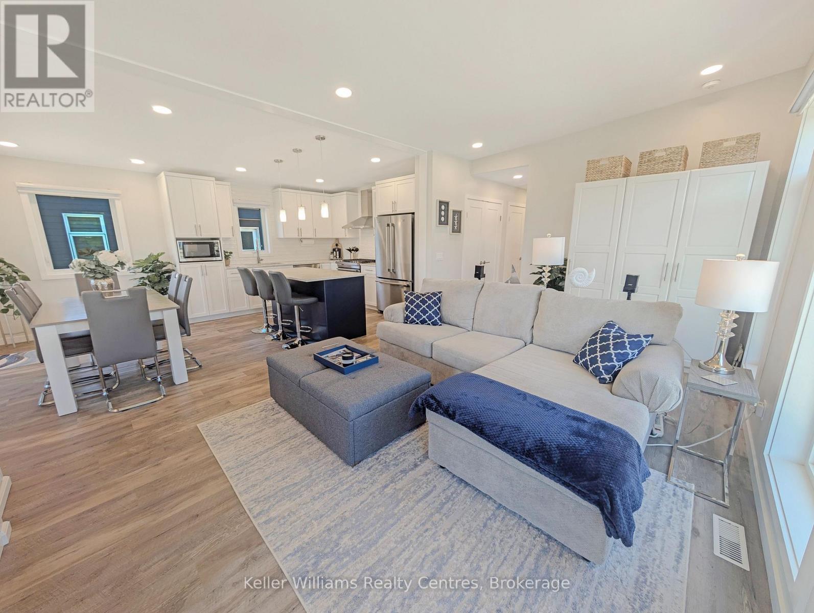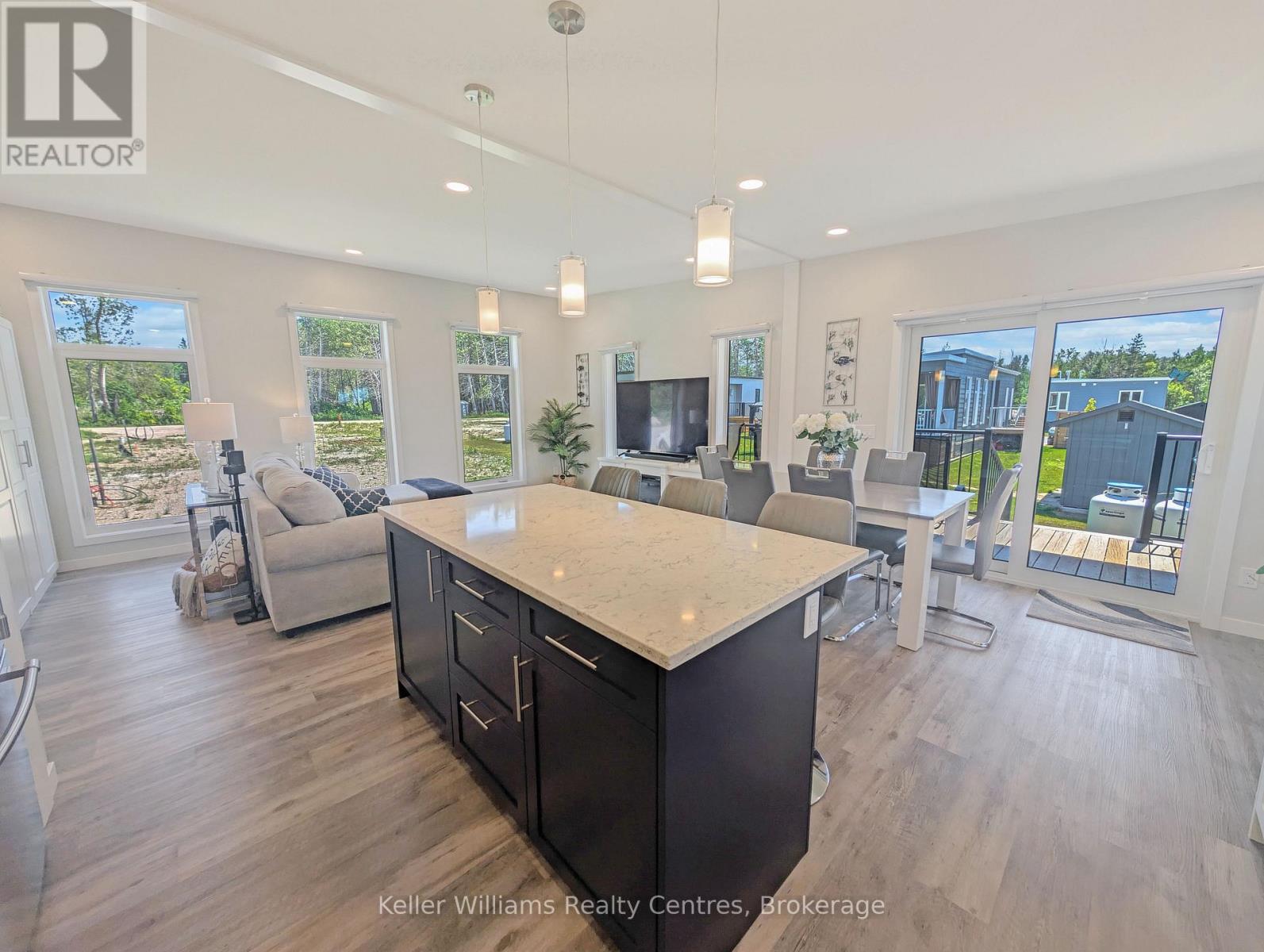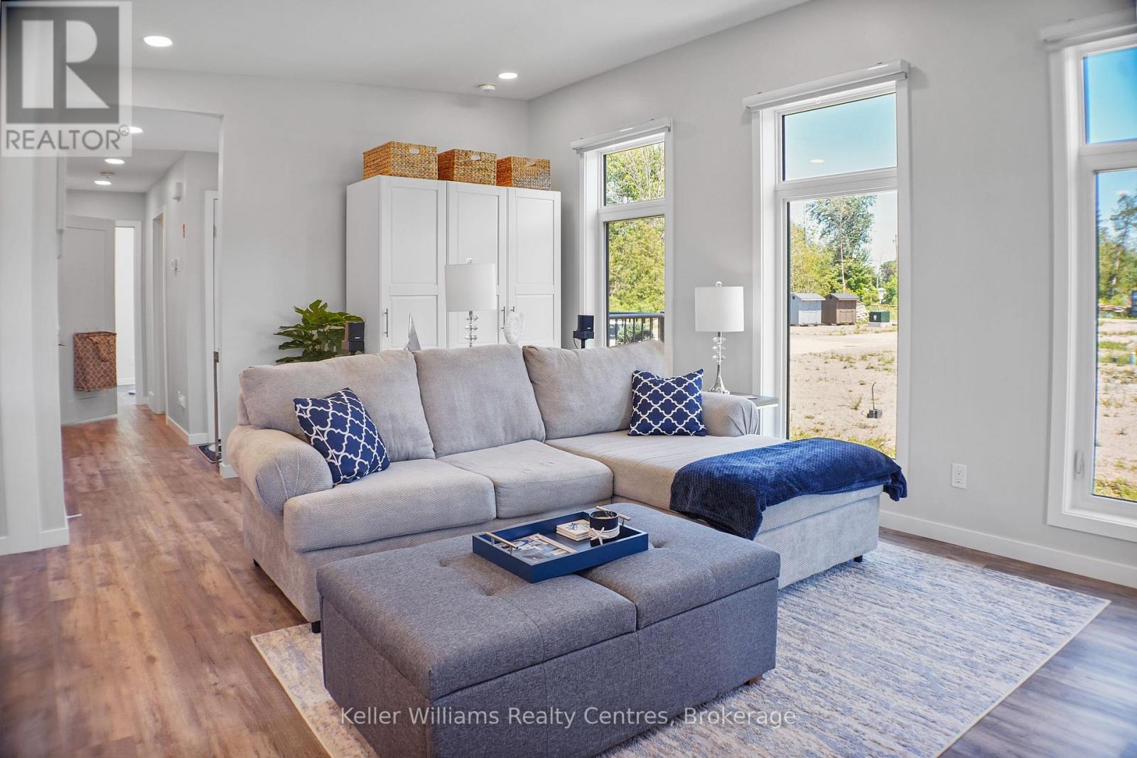 Nestled in the heart of charming Port Elgin, this stunning 2023 Ashfield model, built by Conquest, is a rare find at Port Elgin Estates. The all dry wall, open concept design welcomes you with floor to ceiling windows, flooding the living, dining, and kitchen area's with natural light, while vaulted ceilings create a grand, airy ambiance. Sleek vinyl flooring and custom cabinetry add a touch of elegance throughout. The modern kitchen (and bathrooms) boasts Caesar stone quartz countertops, Maytag and Panasonic appliances, and a versatile island ideal for entertaining and meals. This home features two bedrooms, two full bathrooms, and ample storage. The spa like ensuite offers a sleek glass shower and a well organized walk-through closet. A convenient laundry room with modern appliances. Outside, a 192 sq/ft outdoor living area is perfect for relaxing and hosting gatherings, complemented by durable Canexel siding that ensures lasting style and low maintenance. Port Elgin Estates offers a vibrant community lifestyle with a seasonal outdoor pool, planned gatherings, and a pet and kid friendly environment. Future amenities will further enhance the experience. Nature enthusiasts will love the proximity to MacGregor Point Provincial Park with its scenic hiking trails and the pristine beaches of Lake Huron, just a short drive away. Located in the peaceful town of Port Elgin, this home is close to local shops, restaurants, and parks, blending small town charm with modern convenience. Thoughtfully designed and ideally situated, this home is your perfect escape to comfort and beauty. (id:64974)