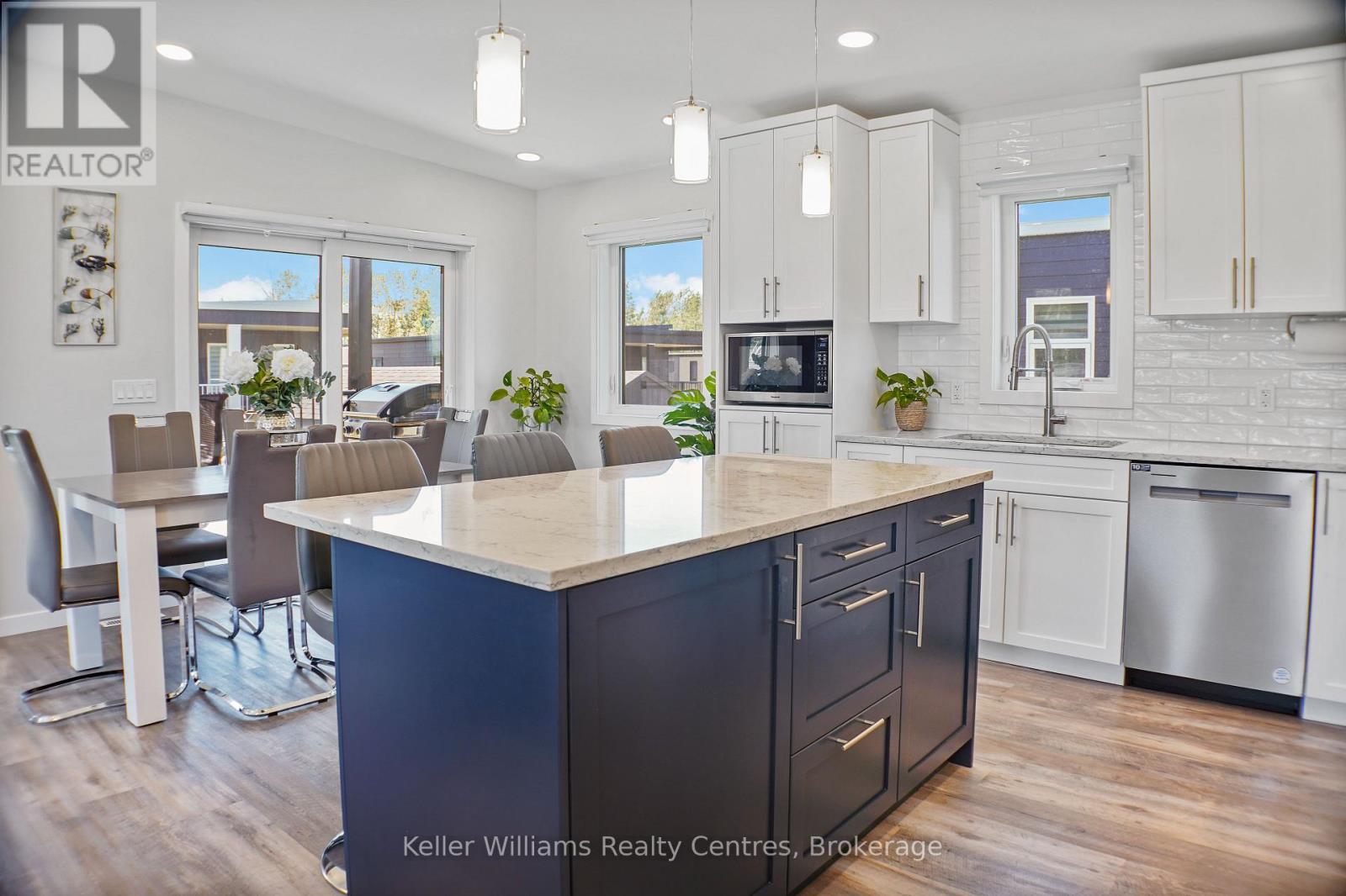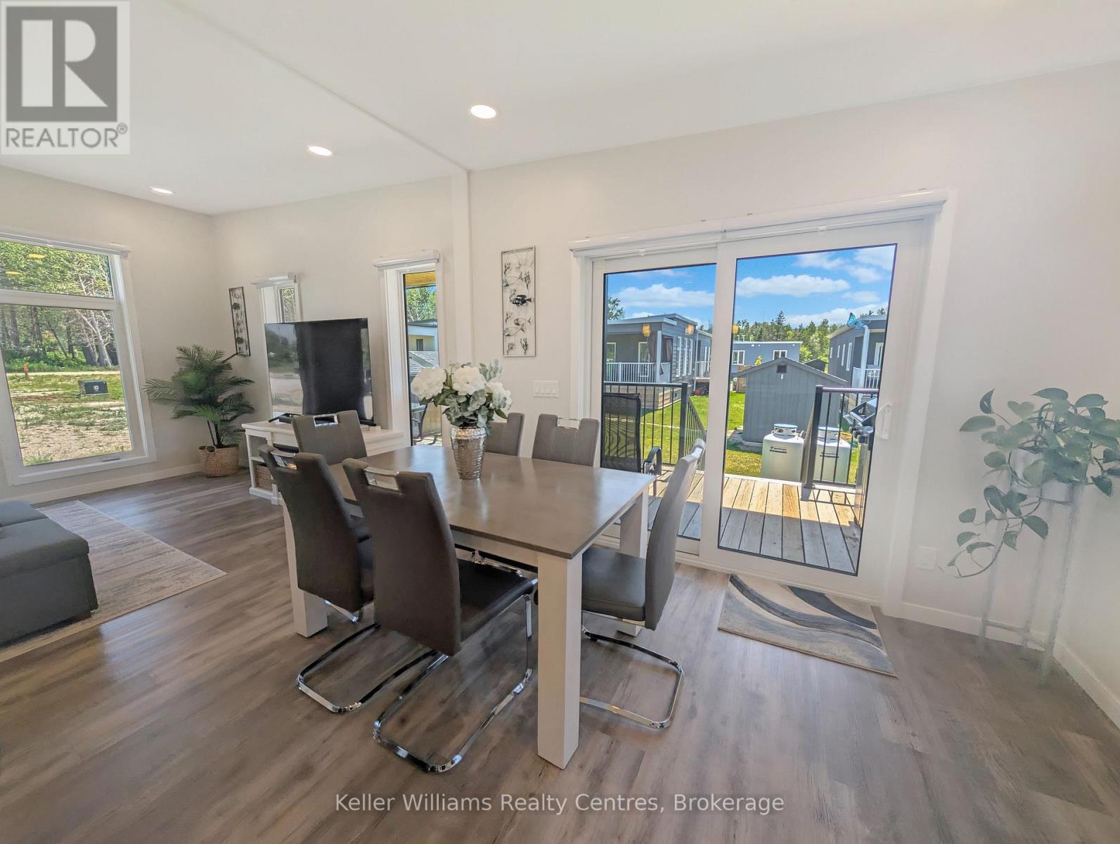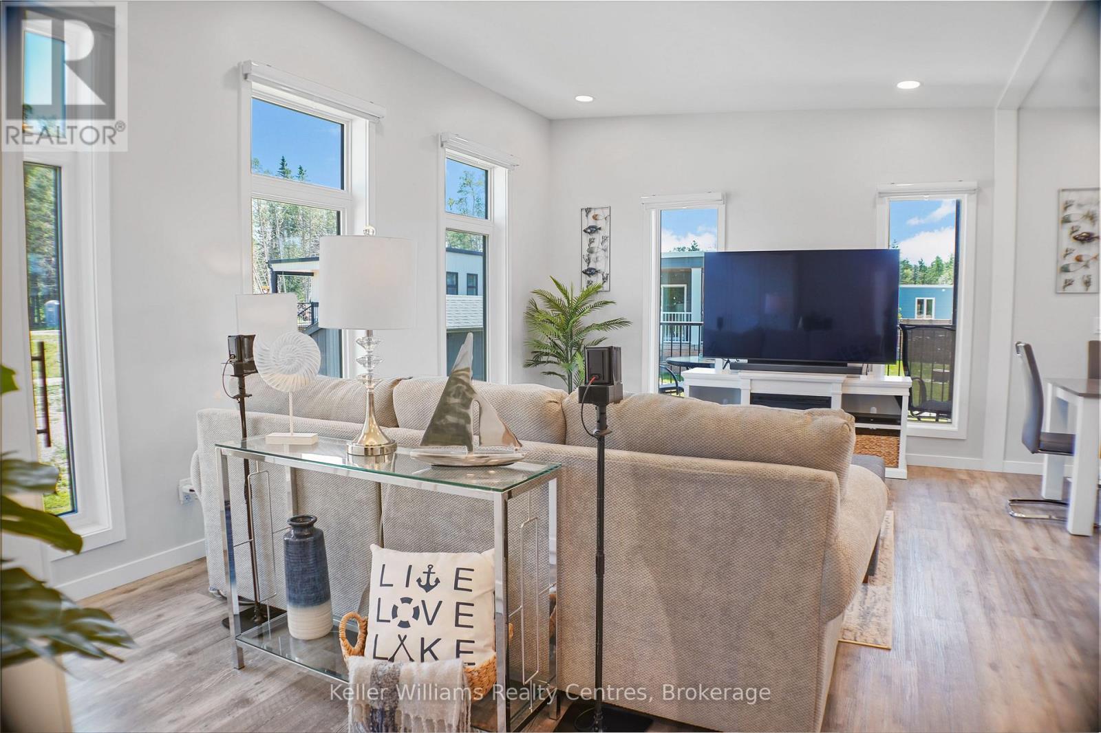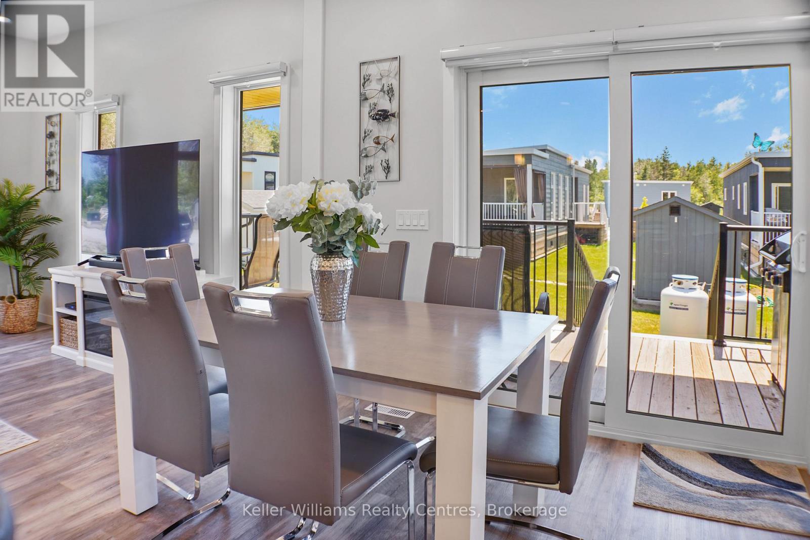 Nestled in the heart of charming Port Elgin, this stunning 2023 Ashfield model, built by Conquest, is a rare find at Port Elgin Estates. The all dry wall, open concept design welcomes you with floor to ceiling windows, flooding the living, dining, and kitchen area's with natural light, while vaulted ceilings create a grand, airy ambiance. Sleek vinyl flooring and custom cabinetry add a touch of elegance throughout. The modern kitchen (and bathrooms) boasts Caesar stone quartz countertops, Maytag and Panasonic appliances, and a versatile island ideal for entertaining and meals. This home features two bedrooms, two full bathrooms, and ample storage. The spa like ensuite offers a sleek glass shower and a well organized walk-through closet. A convenient laundry room with modern appliances. Outside, a 192 sq/ft outdoor living area is perfect for relaxing and hosting gatherings, complemented by durable Canexel siding that ensures lasting style and low maintenance. Port Elgin Estates offers a vibrant community lifestyle with a seasonal outdoor pool, planned gatherings, and a pet and kid friendly environment. Future amenities will further enhance the experience. Nature enthusiasts will love the proximity to MacGregor Point Provincial Park with its scenic hiking trails and the pristine beaches of Lake Huron, just a short drive away. Located in the peaceful town of Port Elgin, this home is close to local shops, restaurants, and parks, blending small town charm with modern convenience. Thoughtfully designed and ideally situated, this home is your perfect escape to comfort and beauty. (id:64974)