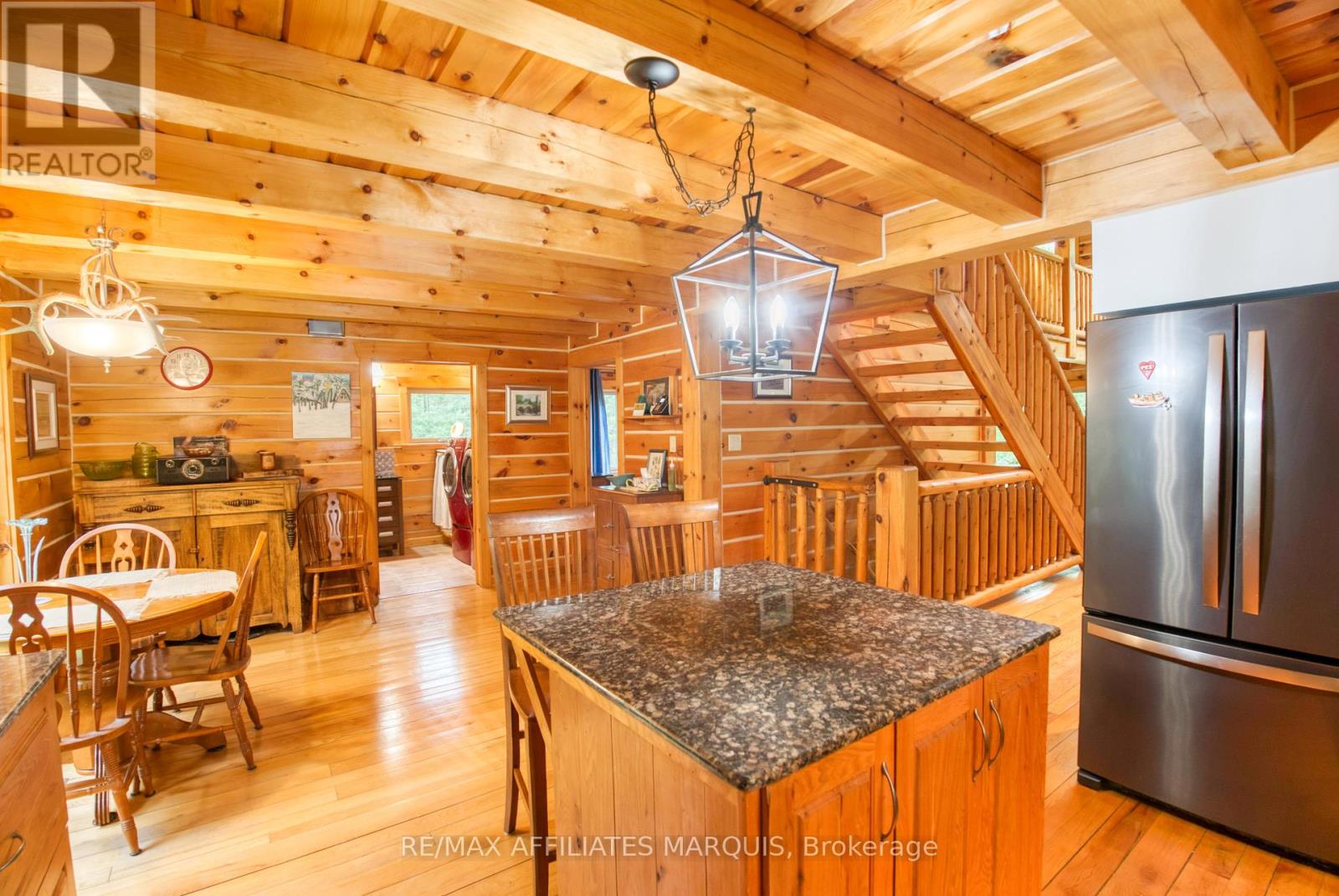 Stunning 3-Bedroom Log Home Near Westport on Quiet Christie Lake Escape to nature in this warm and inviting 3-bedroom, 2-bathroom log home located on the peaceful shores of Christie Lake, just off Devil Lake Road and minutes from Westport, Ontario. Set on a quiet, smaller lake where gas-powered motors are not used by residents , this property offers serenity, privacy, and a true connection to the outdoors. The home features a bright, open-concept layout with a spacious loft area, perfect for a family room, guest space, or home office. The partially finished walkout basement adds flexibility for future expansion or recreational use. Enjoy outdoor living from the large 8' x 40' deck, ideal for barbecues, entertaining, or simply relaxing in the fresh air. While the deck doesn't face the lake, you're just steps away from beautiful, clean water, perfect for swimming, kayaking, and fishing. Additional features include a hot tub, two storage outbuildings, and a peaceful, natural setting that invites relaxation and outdoor enjoyment. Christie Lakes calm, motor-free waters make it a true hidden gem for those seeking a slower pace and connection to nature. Whether you're looking for a tranquil year-round residence or a seasonal getaway, this property is a rare opportunity in the heart of the Frontenac region. (id:64974)