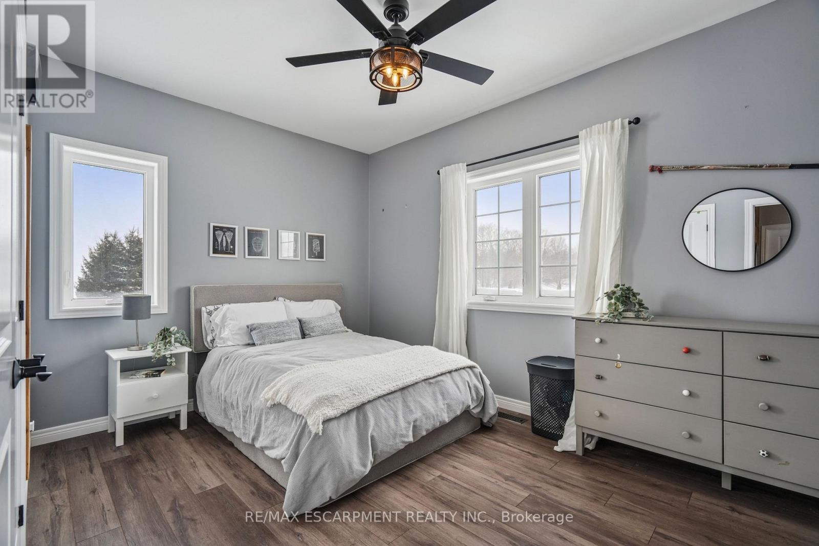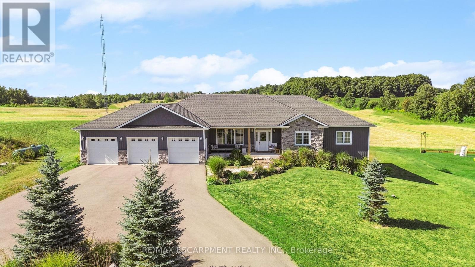 Welcome to 151116 12th Line. Set on 2.06 acres in East Garafraxa, this bungalow blends refined finishes with everyday functionality. A long circular driveway and three-car garage with direct access create a strong first impression while providing ample parking for family gatherings and guests. Inside, the open-concept main floor is filled with natural light and finished with durable vinyl flooring throughout, making it both stylish and family-friendly. The front dining room features large windows, while the chef-inspired kitchen anchors the home with quartz countertops, a centre island, farmhouse sink, stainless steel appliances, extended cabinetry, pantry storage, pot lights, and a window overlooking the backyard. The adjacent living room offers a warm, inviting atmosphere with pot lighting, expansive windows, and French doors leading to the deck, perfect for seamless indoor-outdoor living. The primary bedroom is a private retreat featuring a walk-in closet, and a spa-like five-piece ensuite with heated floors, ideal for unwinding at the end of the day. Two additional main-floor bedrooms include double closets and oversized windows, while a full four-piece bathroom, powder room, and main-floor laundry add everyday convenience. The partially finished walk-out basement extends the home's versatility with nine-foot ceilings, a fourth bedroom with walk-in closet, and a modern three-piece bathroom. With generous unfinished space, this level offers endless potential for a home office, gym, recreation area, or future in-law suite. Walk-out access leads directly to the backyard. Outside, the property truly shines. The backyard is a private resort, featuring a heated saltwater inground pool installed in 2021. The pool pavilion creates the perfect setting for summer entertaining and late-night gatherings. This home delivers modern comfort without sacrificing rural tranquility. This is more than a house. It is a lifestyle designed for families ready to settle in and stay. (id:64974)