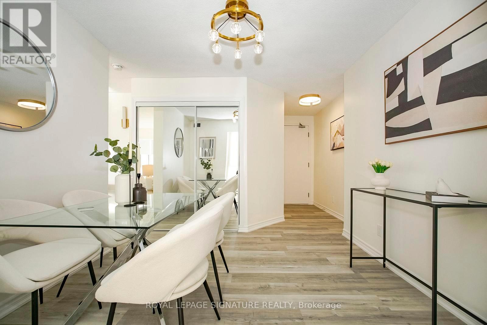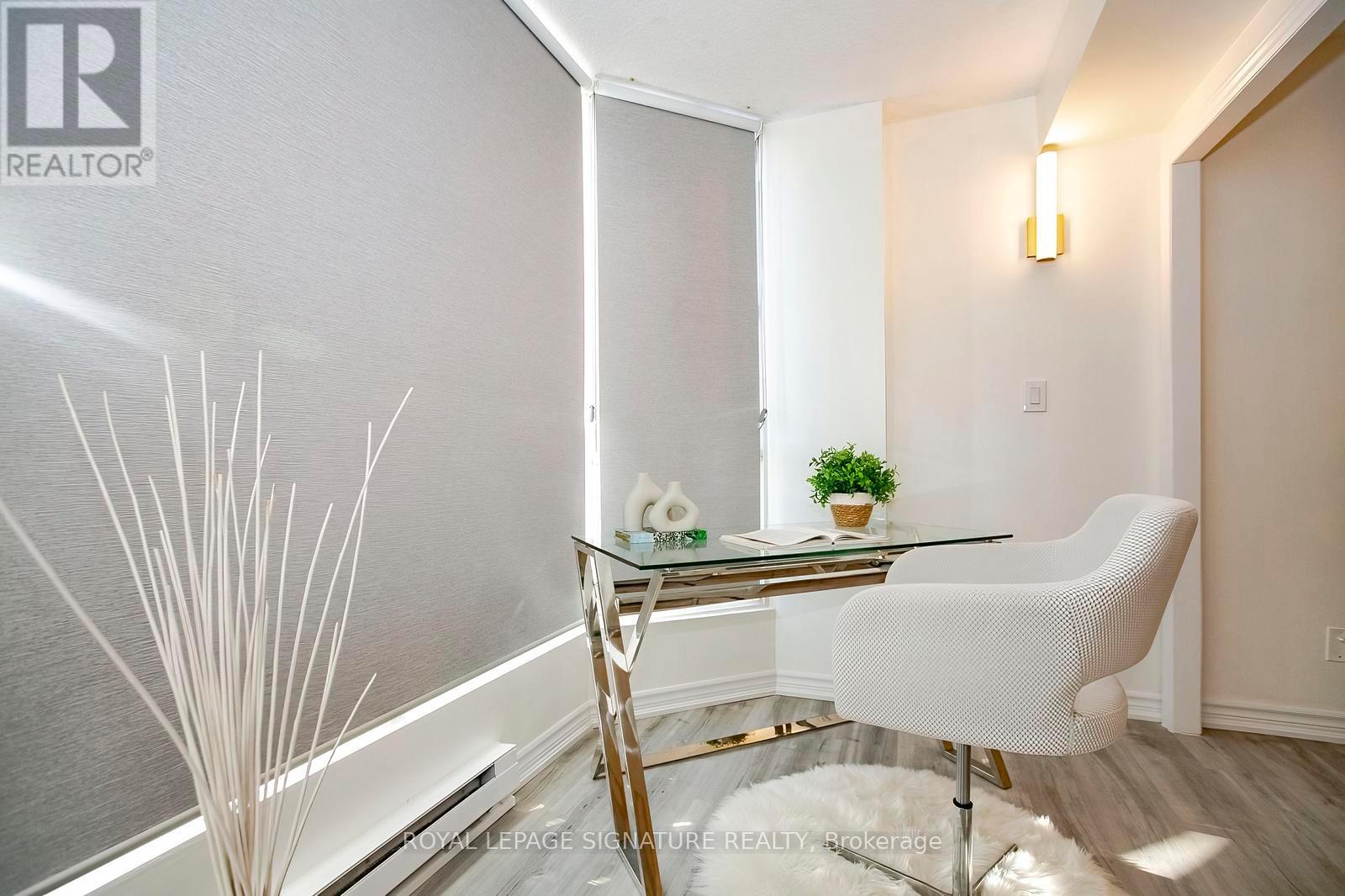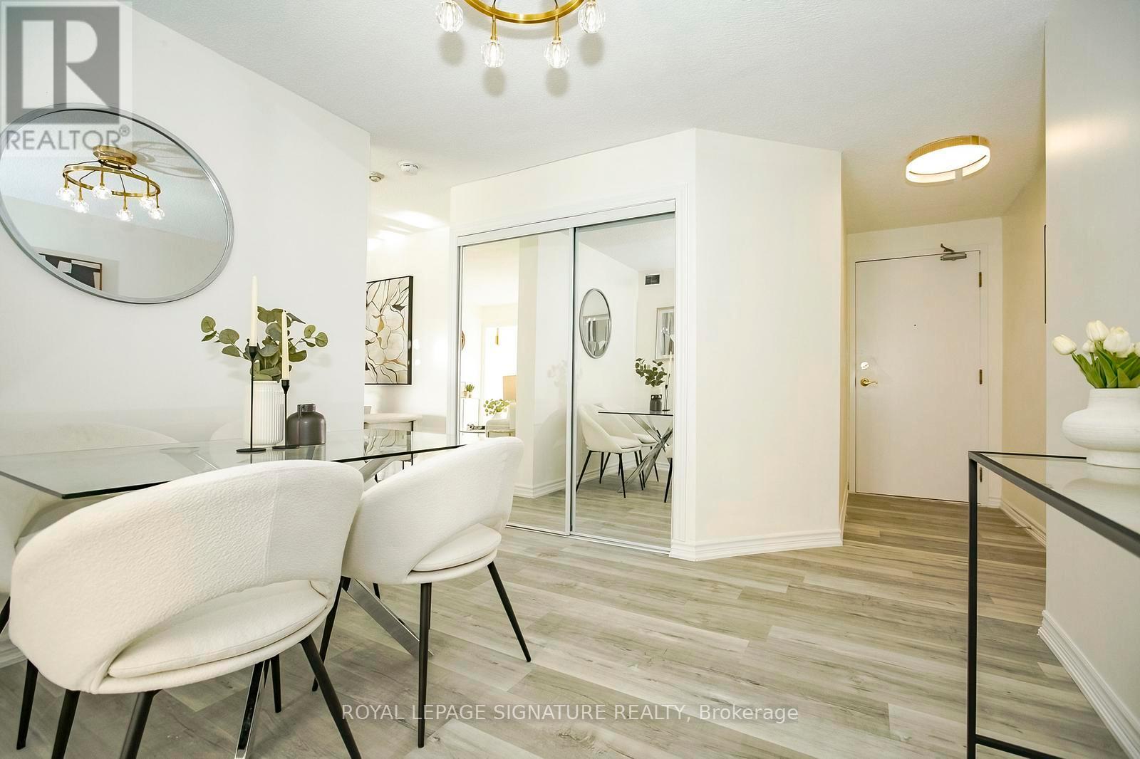 Step into elevated condo living in this stunning, fully renovated 1+1 bedroom with solarium, showcasing spectacular unobstructed views in one of Mississauga's most desirable communities. Thoughtfully redesigned and freshly painted in premium Benjamin Moore colours, this like-new condo features a bright, modern layout with separate living and dining areas and a versatile solarium ideal for a home office or second bedroom. The brand-new chef-inspired kitchen impresses with quartz countertops, soft-close cabinetry, elegant gold hardware, stainless steel appliances, porcelain flooring, and a designer backsplash. A spa-inspired bathroom, modern roller blinds, and mirrored closets complete there fined interior. Enjoy premium building amenities including 24-hour concierge, fitness centre, sauna, rooftop deck, party room, tennis and squash courts. Low maintenance of $427 includes parking, offering exceptional value. Located just steps to Cooksville GO Station with a 20-minute express train to Union Station, excellent GO bus access, and walking distance to the upcoming Hurontario LRT. Close to Square One, top schools, parks, Trillium Hospital, shopping, groceries, and more. Be the first to enjoy this beautifully renovated, move-in-ready condo - a rare opportunity for first-time buyers and savvy investors alike. (id:64974)