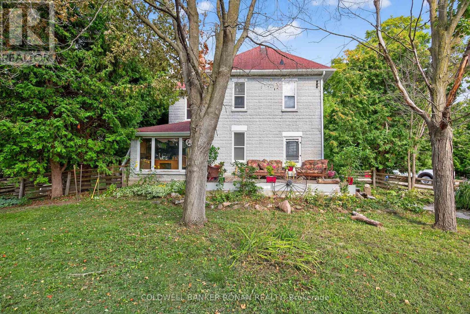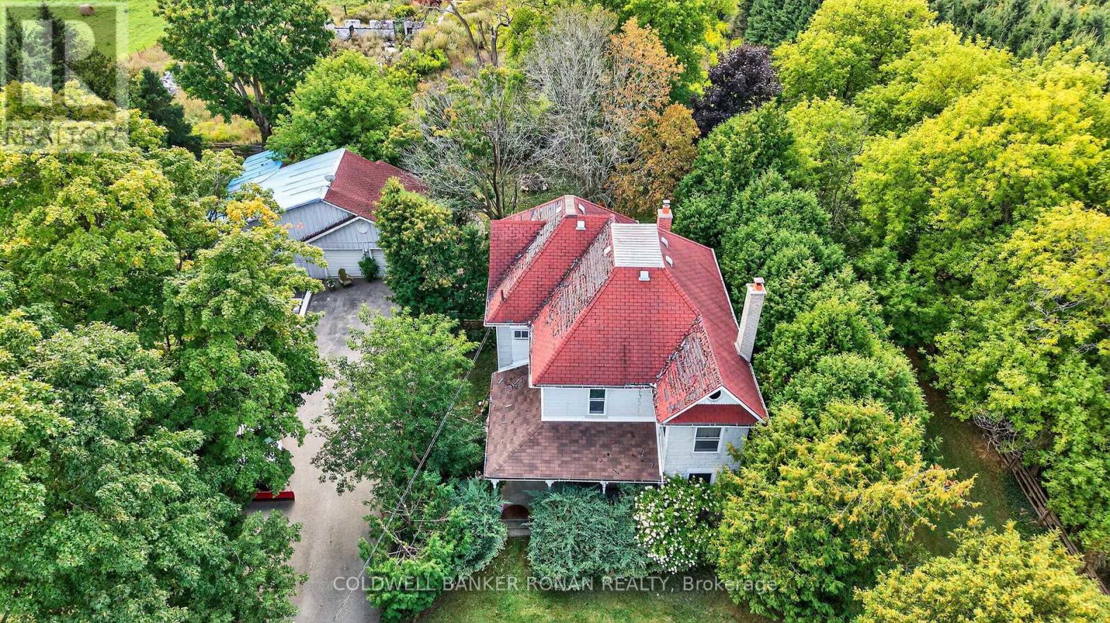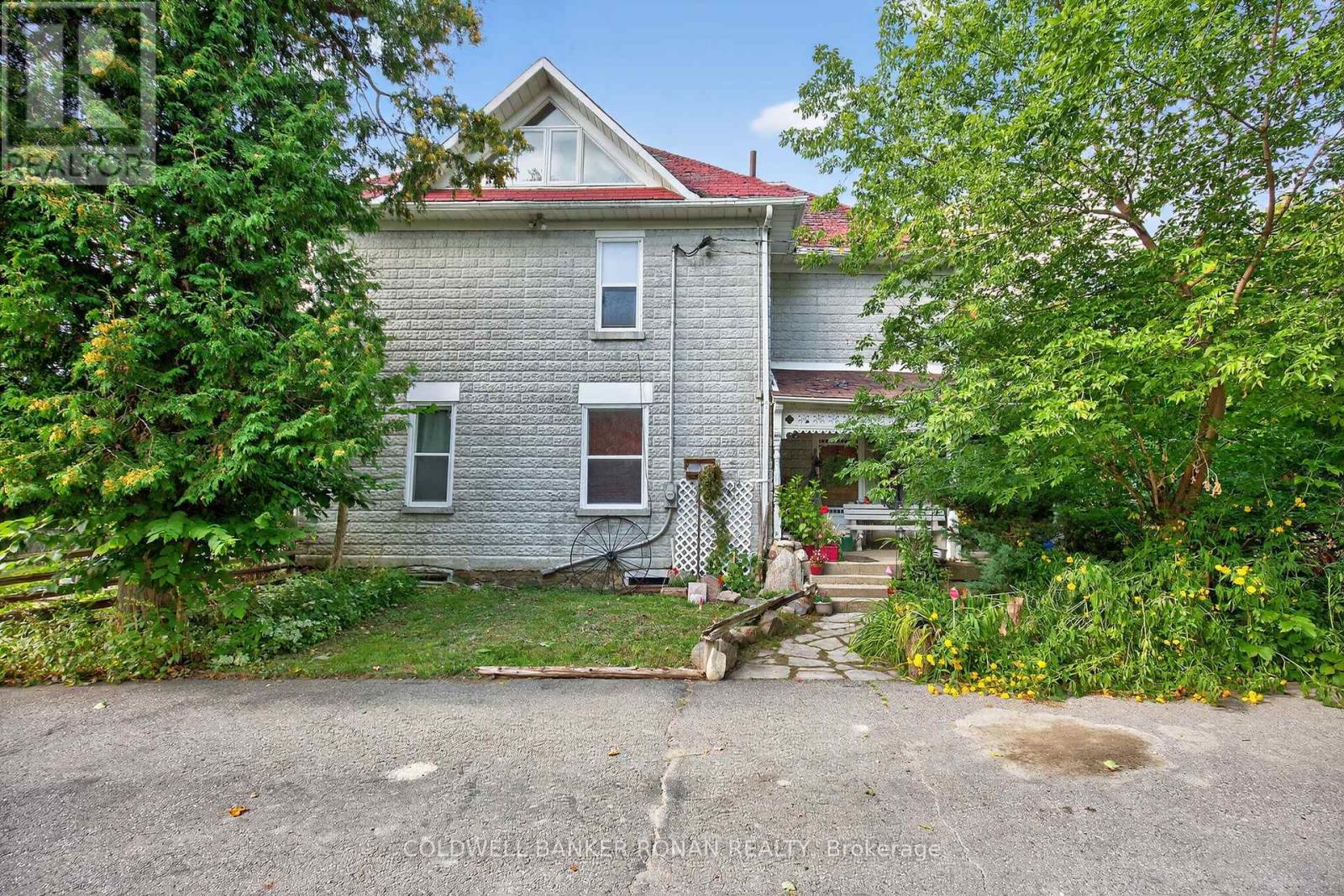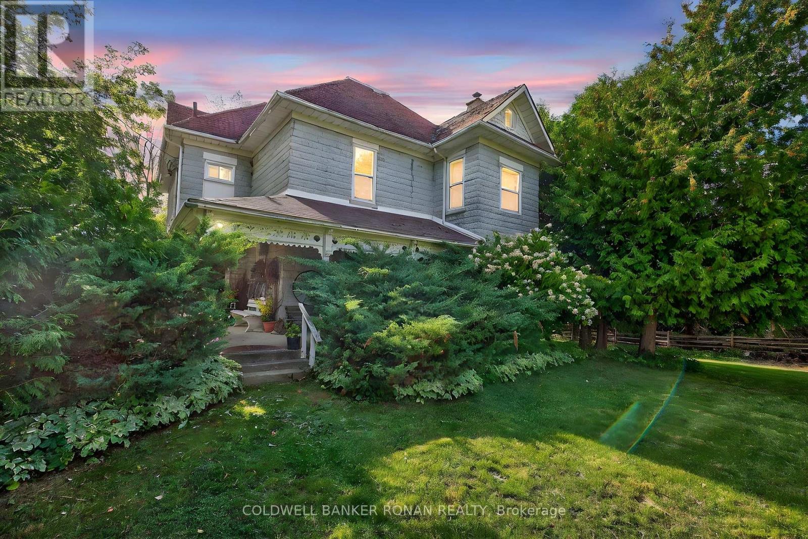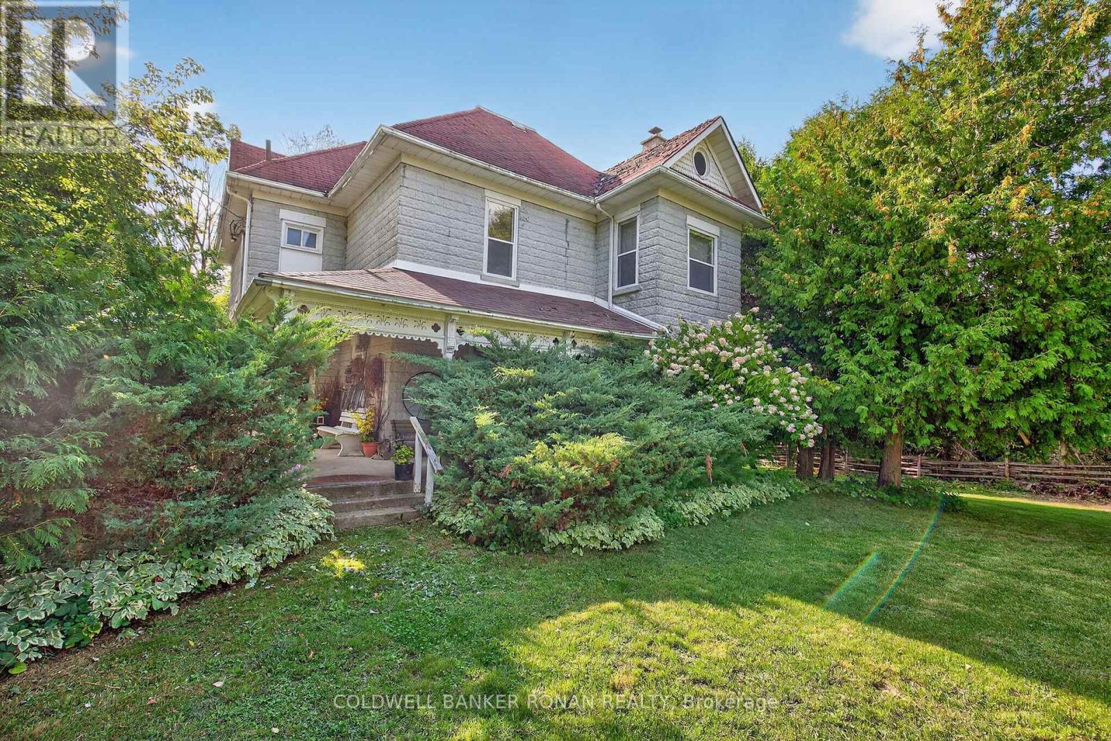 Nestled among rolling farmland, this picturesque 1.17-acre property offers a storybook setting full of charm and character. This Century home features a welcoming front veranda, flagstone walkways, and a covered front porch, a spacious back deck and detached garage/workshop. Surrounded by mature trees and lush perennial gardens, the property provides a tranquil, park-like atmosphere. A separate back entrance to the office area with floor to ceiling window with west views & stunning sunsets also makes it a great flexible workspace. Offering approximately 2,600 sq. ft. of living space, the home boasts large principal rooms, Primary Bedroom w/Walk-in Closet & 5pc Ensuite Bath, Large Country Kitchen w/Walk-in Pantry, Walk-in Closet/Mud Room w/entrance to back deck, original stained-glass windows. The third floor features a spacious games room/attic that could easily serve as a games room or creative retreat with an oversized 5 paned window with south facing views. The detached garage (23.6 x 21.10) includes an attached workshop (19.10 x 43.3) with a separate driveway/parking and oversized garage door ideal for a home-based business. This property is fully fenced & gated. Conveniently located just north of Hwy 9 with quick access to Highways 27 and 400, this unique property combines country living with commuter convenience. (id:64974)