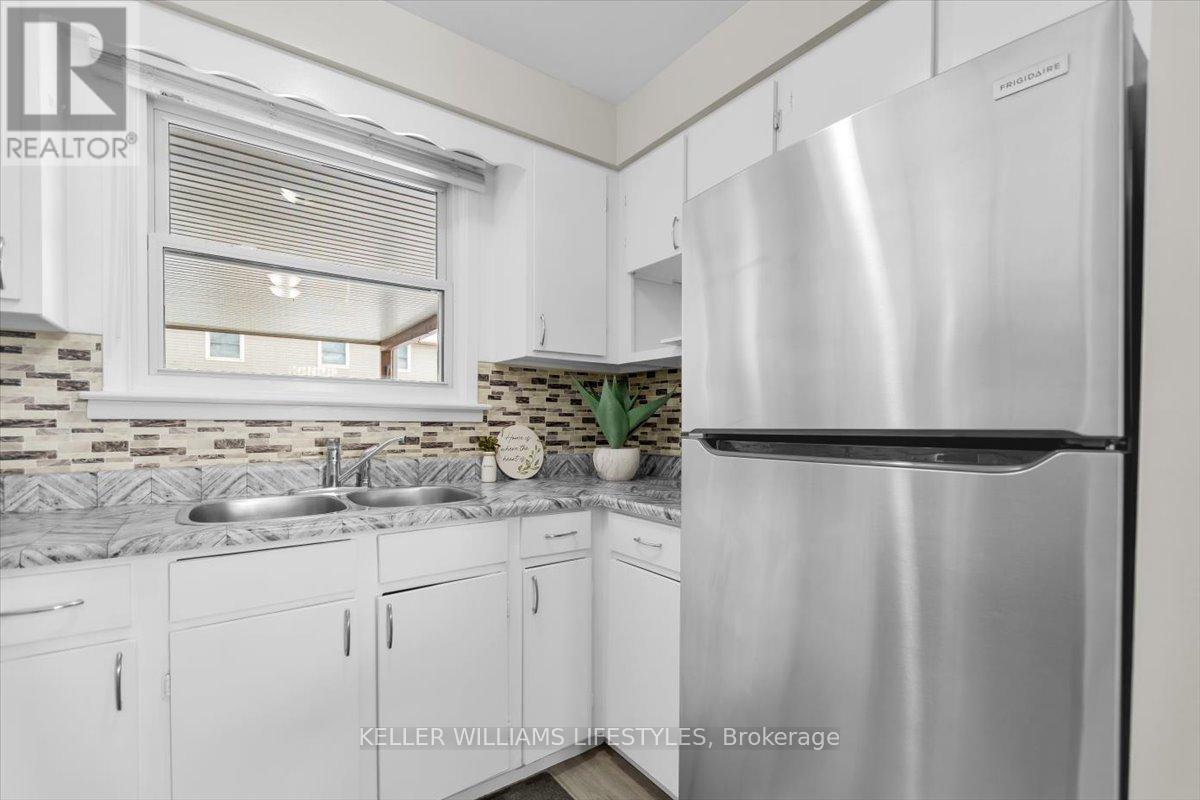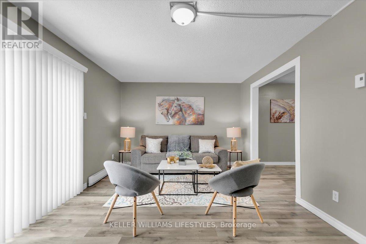 Located in the sought-after White Oaks complex, this well-maintained two-storey townhouse condo offers a practical and inviting layout with 3 bedrooms and 1.5 bathrooms-ideal for first-time buyers or growing families. The main level features a bright and functional kitchen, combined living and dining areas, and walk-out access to a private fenced patio, perfect for enjoying outdoor space. A convenient powder room completes the main floor. The upper level includes three spacious bedrooms and a full 4-piece bathroom. The finished basement provides additional living space with a comfortable family room and a dedicated laundry area. Additional features include a carport-style garage and an unbeatable location just minutes from White Oaks Mall, Highway 401, the Aquatic Centre, schools, parks, and everyday amenities. (id:64974)