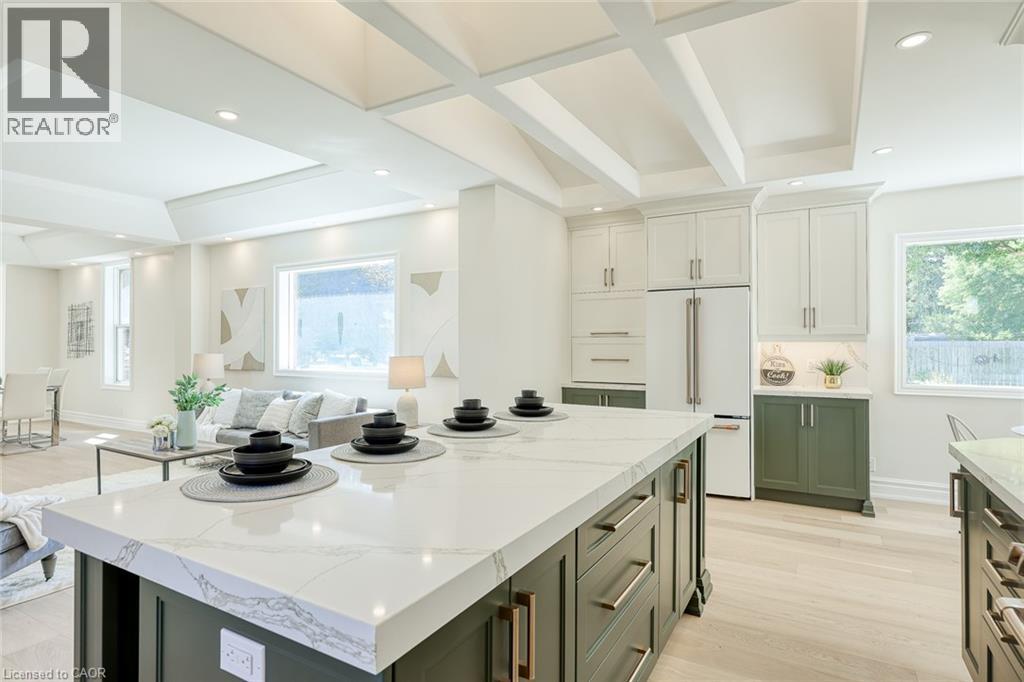 Welcome to 152 Blandford St - one of the most luxurious & heavily upgraded homes in Innerkip! Nothing like this available - a true standout in the area! Step inside to jaw-dropping main-floor wow factor: custom high-end dream kitchen w/ massive centre island, breakfast bar seating, pot drawers & top-tier GE Café appliances, stunning custom chimney hood fan, farmhouse sink w/ accessories, custom pantry around fridge, vaulted ceilings, wide hardwood plank floors & LED lighting throughout, plus a brand new oak staircase that adds timeless elegance. The upper level offers 3 generous bedrooms including a primary retreat w/ coffered ceilings, spacious walk-in closet & gorgeous 3pc ensuite featuring a custom shower, a spa-like main bath w/ beautiful tub, gold-finished fixtures & premium tiling, convenient 2nd-floor laundry, and a standout 3rd bedroom boasting its own private balcony - perfect for morning coffee, relaxing evenings or enjoying peaceful views in this family-friendly neighbourhood. The massive 2 story, 2400 sq ft detached workshop/garage in the backyard easily parks 3 vehicles inside & is ideal for a car enthusiast, man-cave, hobby space or side business! Nestled in a safe, welcoming community - ideal for peaceful family living w/ room to grow. Don't miss this rare gem (id:64974)