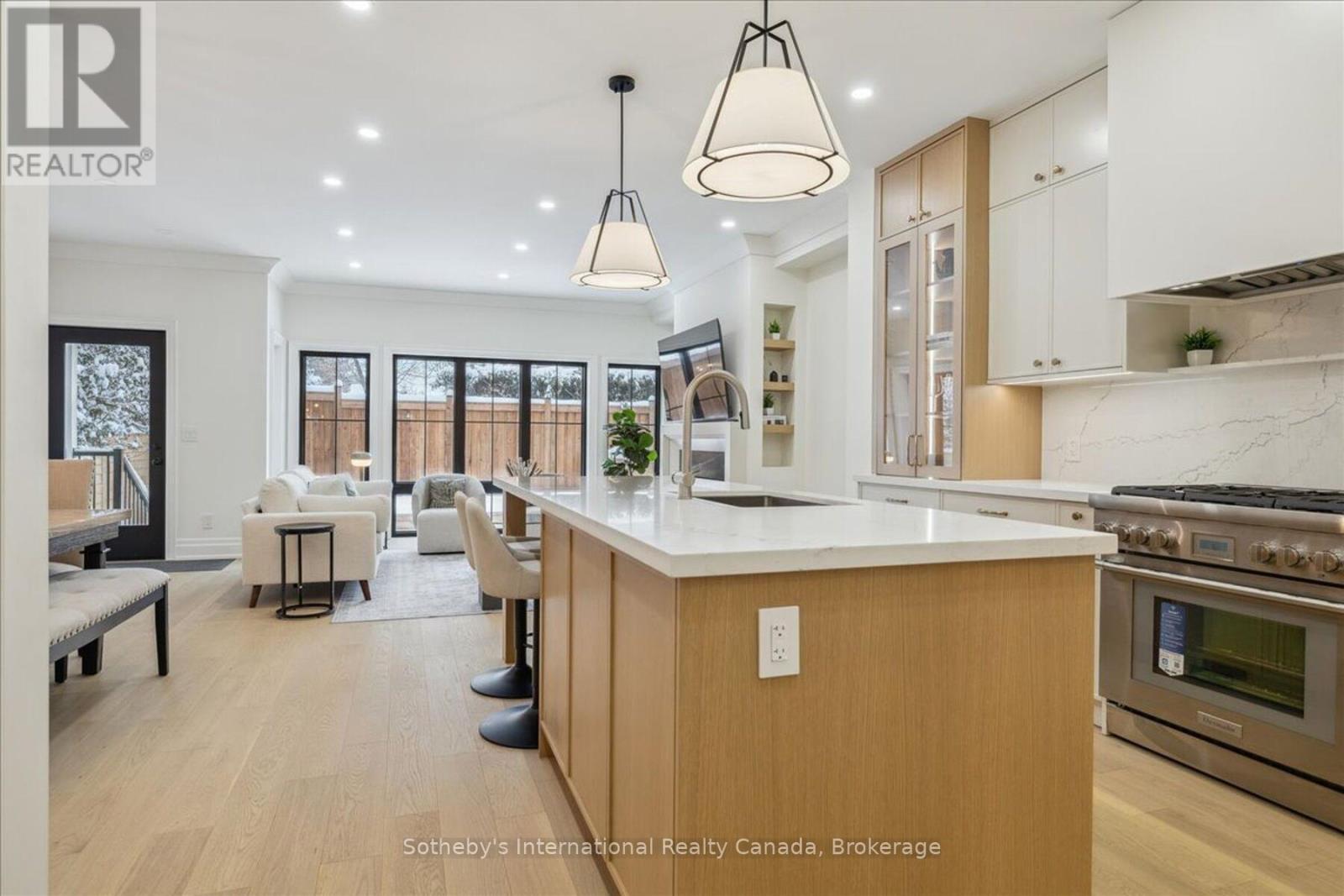 Luxury fully renovated home near Downtown Oakville, just a 5-minute walk to the lake, restaurants, shops, parks, and top-rated schools. This meticulously designed home by John Willmott, boasts over 3000 square feet of living space and features 6-inch engineered oak floors, 9ft ceilings, built-in closets, and a stunning French picket staircase with white oak treads. The high-end kitchen includes Thermador appliances, a solid white oak island, quartz countertops and backsplash, an industrial-grade exhaust fan, and a hidden appliance garage. Comfort is paramount with a smart thermostat, two-zone heating/cooling, heated floors in all bathrooms, a full heated basement, and a high-velocity HVAC system with adjustable floor vents. Additional features include a rough in for a heated driveway, rough-in for an EV car charger, Pella windows and doors, a gas fireplace with a marble surround, a central vacuum with a toe-kick vacuum, and an energy-efficient heat recovery system. The foundation has been underpinned with poured concrete and rebar for superior strength, with beam and joist pockets insulated with high-density foam for a tight, energy-efficient seal. With a hockey stick staircase seamlessly supported in the walls, a sewage pump and sump pump in the basement, and an integrated water thermo drain for efficiency, this home offers unparalleled craftsmanship and modern luxury in a prime Oakville location. (id:64974)