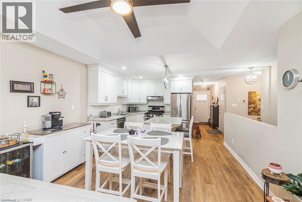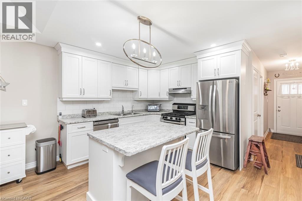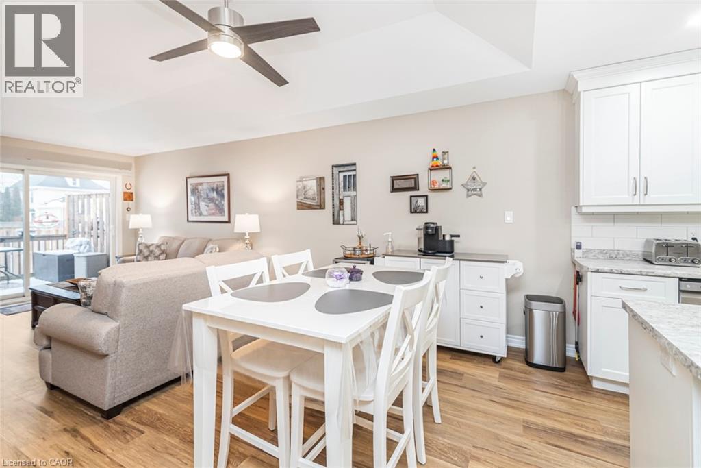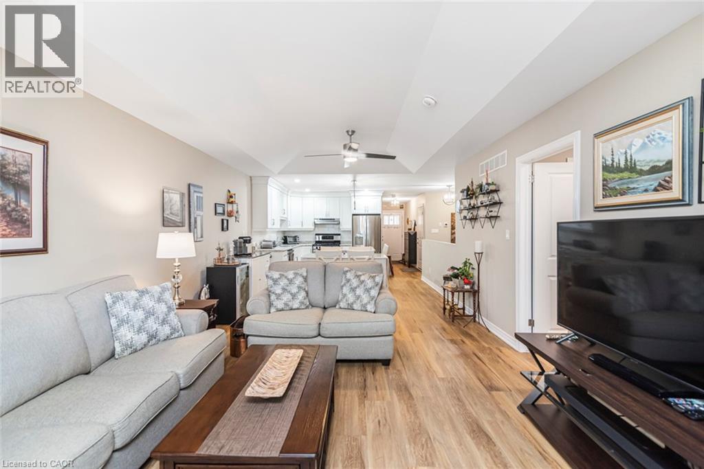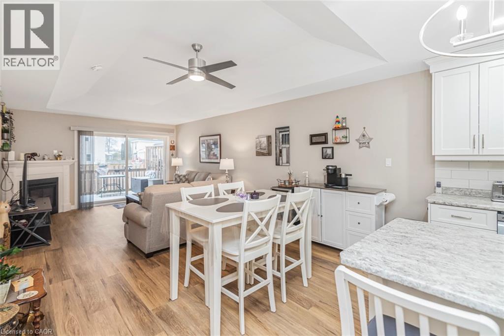 Welcome to the serenity of this exclusive bungalow townhouse in an adult community complex accessed through a private road off of Cross St E in the quaint town of Dunnville. Here you will find Unit 6 which is carpet free and has been immaculately maintained & upgraded featuring a beautiful white kitchen with subway tile backsplash, island with electrical outlet, stainless appliances, Boshart drinking water filtration system, open to the spacious dining/living area featuring a gas fireplace and large sliding doors to the backyard deck with motorized awning. The spacious primary bedroom with upgraded lighting has a well-planned 4pc ensuite bathroom and walk in closet. The 2nd main floor bedroom is situated close to the front foyer and works well as a home office, down the hall is inside garage access, a convenient main floor laundry with new built-in storage cabinetry and a 2pc guest bathroom. In the lower level you will find a recently finished (2024), open concept, extra large flexible recreation space with upgraded electrical, as well as an unfinished storage/utility area with a laundry tub. Enjoy the convenience of 1 floor living, snow removal and lawn maintenance done for you and a location within walking distance to all downtown amenities as well as the Grand River pathways. Included with the purchase of this townhouse is a complimentary 1 year Canadian Home Shield Warranty (some exclusions & limitations apply) (id:64974)