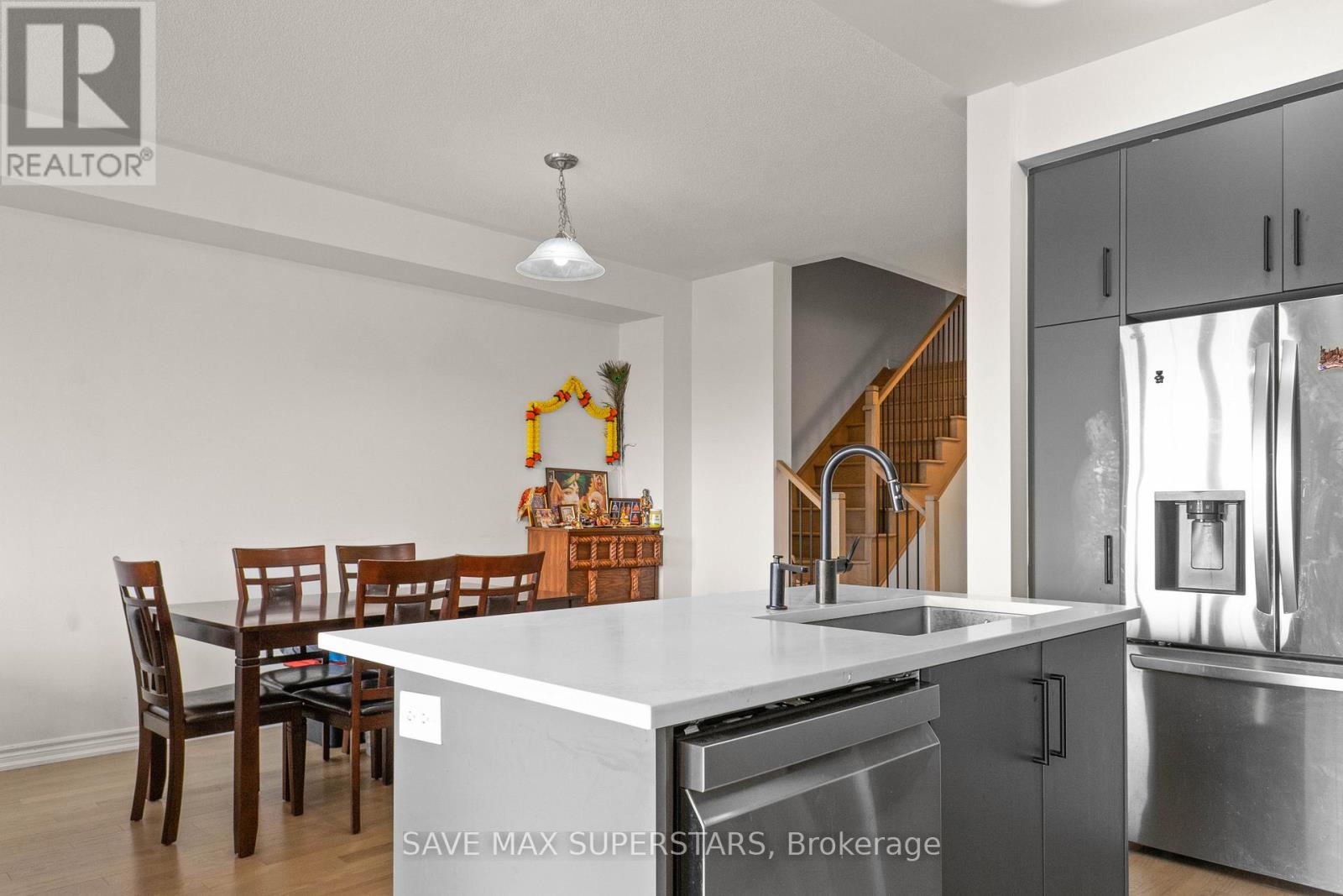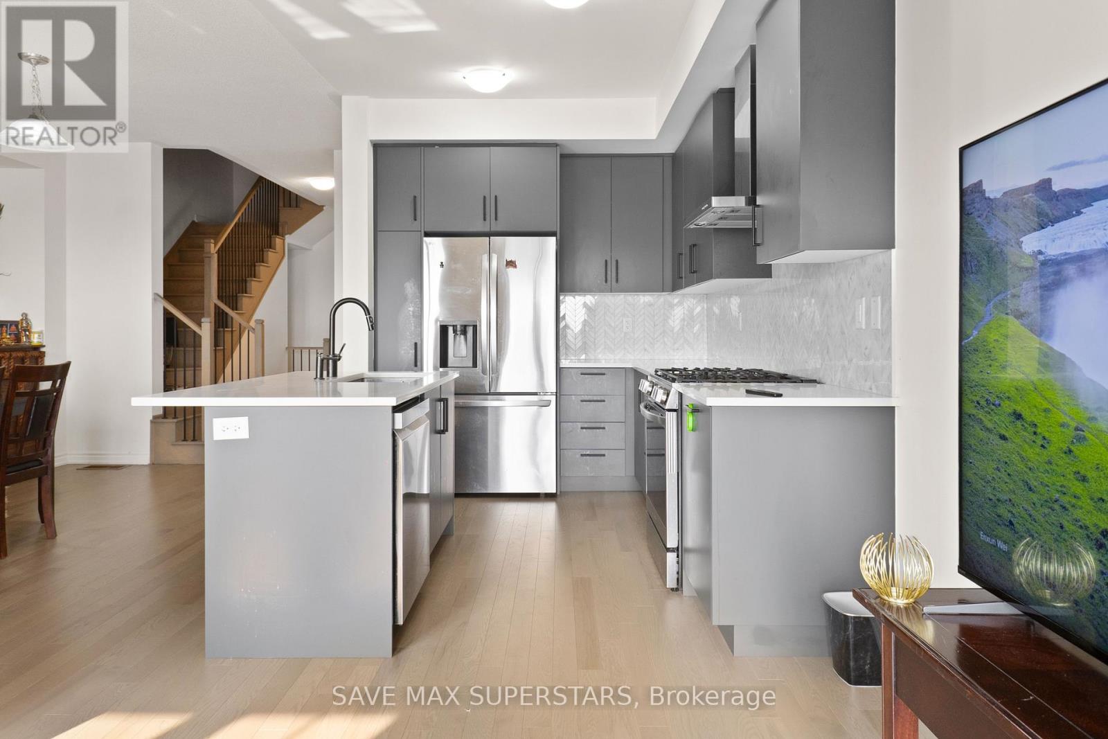 Stunning 1-year-old, 1985 sq ft townhouse at 152 GREER ST, featuring over $66,000 in premium builder upgrades and 9 ft ceilings on the main floor. The chef-inspired kitchen showcases sleek slate grey QTK cabinets, luxurious Calacatta Nuvo quartz countertops, a Cyclone chimney hood, and an elegant Oriental White marble chevron backsplash. Stainless steel appliances, a Blanco undermount sink, and custom cabinetry with a 3-bin pull-out recycling unit and magic corner cabinet combine style with smart storage. The spacious main floor features an open-concept great room with upgraded hardwood flooring and an abundance of natural light, as well as a large dining area. The main-floor laundry includes extended cabinetry for added comfort and convenience. The unfinished look-out basement features a bathroom rough-in and a 200-AMP electrical service, offering excellent future development potential. Upstairs are three bright bedrooms and a large loft with a walk-in closet-ideal for a home office or extra living space. The primary bedroom features his and her walk-in closets, hardwood floors, and a 3-piece ensuite. Secondary bedrooms also offer hardwood flooring, ample closet space, and oversized windows. Bathrooms throughout include concrete countertops, raised vanities, and modern hardware for a polished finish. Located just minutes from Barrie South GO Station (2-minute drive/15-minute walk), with quick access to shopping, grocery stores (Costco, Metro, Walmart, Sobeys, Zehrs), restaurants, schools, parks, golf, Highway 400, and Friday Harbour. This move-in-ready home offers a perfect blend of style, function, and location-don't miss this exceptional opportunity! (id:64974)