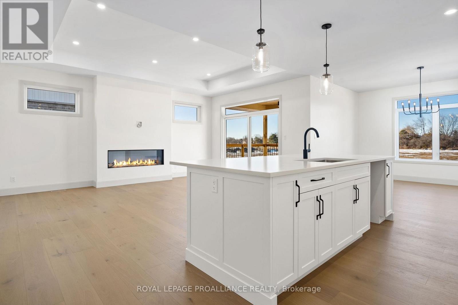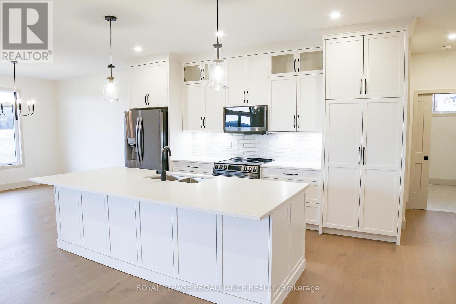 New Build Quality Bungalow by Van Huizen Homes. This spacious 1,556 sq. ft. bungalow is built with the high-end quality Van Huizen Homes is known for. Featuring engineered hardwood floors, upgraded trim and doors, a kitchen that comes with solid wood cabinets topped with quartz counters, a tile backsplash and new appliances ,every detail has been thoughtfully designed. The open-concept living area is perfect for entertaining and anchored by a stylish electric fireplace. It leads to the covered back deck which provides the perfect outdoor retreat. The large primary suite includes an en-suite with a walk-in shower with rain head, and walk on closet . The convenient main floor laundry has a sink and entrance to the fully finished garage. Modern touches and quality craftsmanship are found throughout. Located just a short drive to Prince Edward County's wineries, beaches, and quaint shops, this home offers both comfort and lifestyle. Quick closing available! (id:64974)