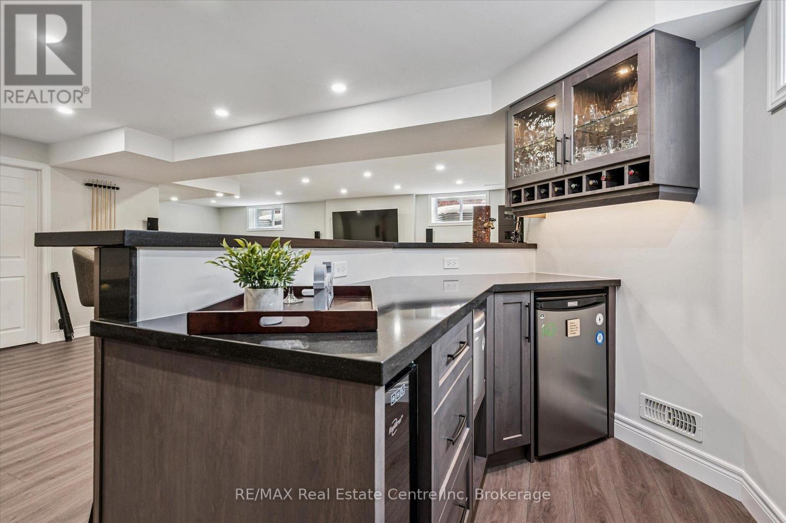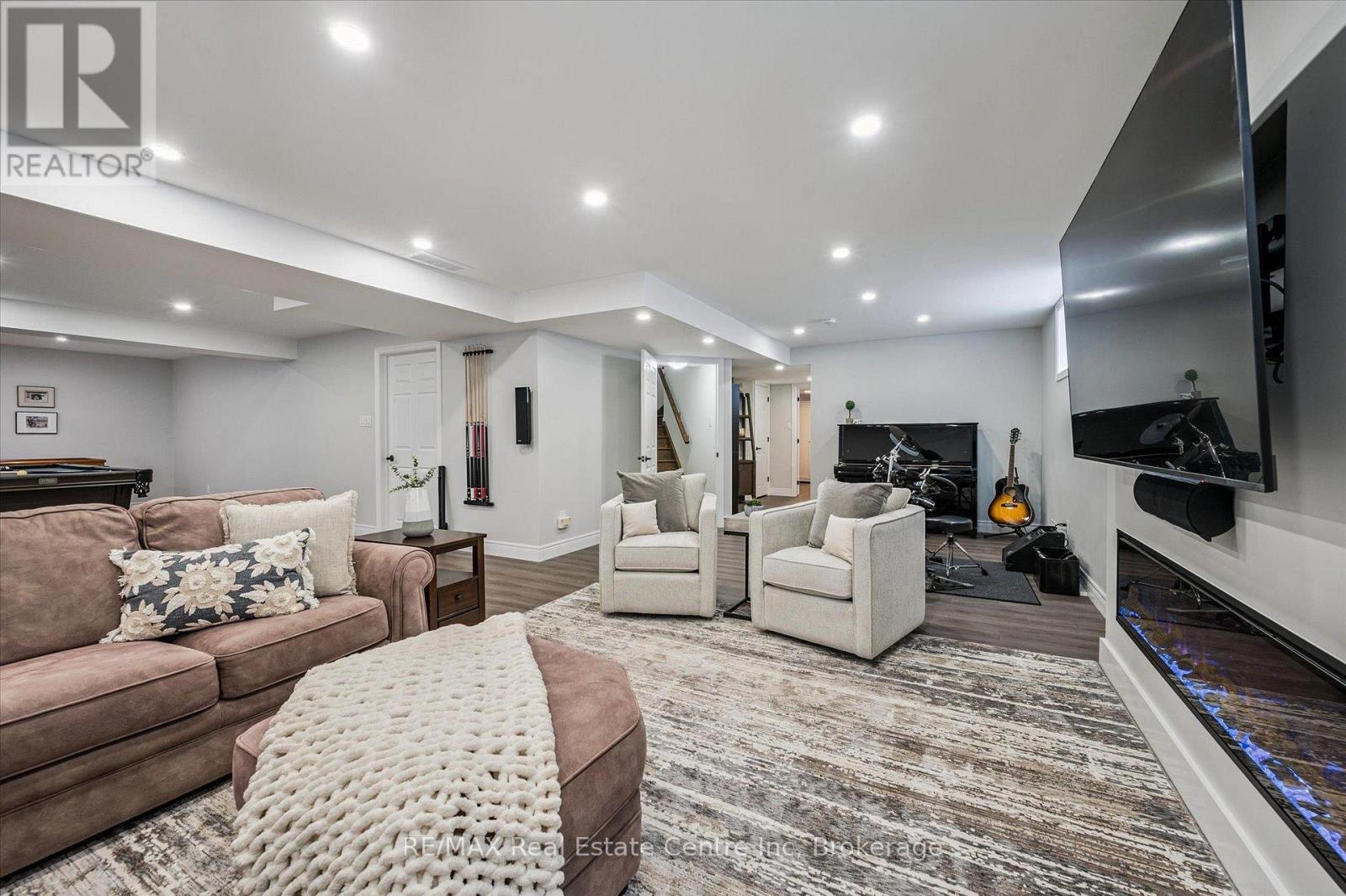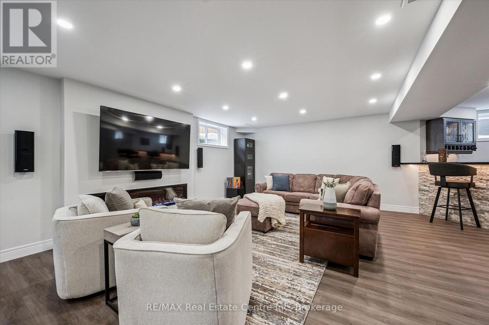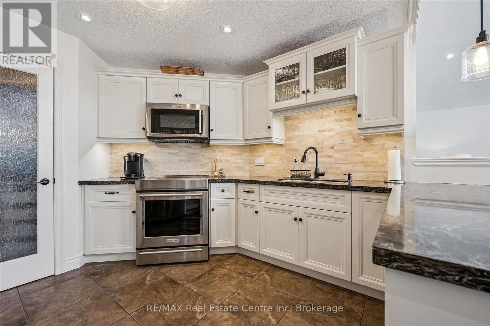Stunning 4-bdrm bungalow W/newly finished bsmt & sep ent backing onto greenspace! Located in family-friendly neighbourhood this home was built by WrightHaven Homes, local builder known for superior craftsmanship, thoughtful design & energy-efficient construction. Stone & brick exterior, resurfaced driveway, front entry, interlock walkway & landscaped grounds create striking presence. Open-concept living & dining areas create space for everyday living & entertaining. Hardwood floors & vaulted ceilings enhance openness while windows fill home W/light & offer greenspace views. Stone fireplace creates warm atmosphere & dining room offers perfect setting for hosting. Kitchen W/white cabinetry, crown moulding & glass-front accents complement striking granite counter & stone backsplash. S/S appliances W/new 2025 KitchenAid stove & microwave. Ample cabinet & counter space provide lots of storage & prep space. Peninsula W/seating is ideal for casual meals & W/I pantry for storage. Primary bdrm W/tray ceilings, hardwood & large window. Ensuite with W/I shower, vanity W/storage & W/I closet. 2 add'l bdrms are bright & well-sized. 4pc main bath offers shower/tub. Laundry & mudroom offer storage & folding space W/access to garage & Level 2 EV charger. Prof. finished bsmt W/permits & over $100,000 invested to create high-quality space. Rec room W/electric fireplace, pot lighting & 4windows. Custom stone bar with B/I beverage fridge & wine storage. Lots of room for gym, games area or playroom. Add'l bdrm W/dbl closet &3pc bath W/quartz counters & glass shower. Sep ent offers potential for in-law or income suite. Backyard oasis W/interlock pathways, pristine gardens, landscaping & composite deck for entertaining, dining & lounging. Cedar hedges & trees provide privacy & fenced yard is ideal for families & pets. Backing onto Trestle Bridge Trail offering access to 47km scenic route connecting you to Grand River & Cataract Trail. Mins from downtown shops, dining & Elora Mill Spa! (id:64974)
