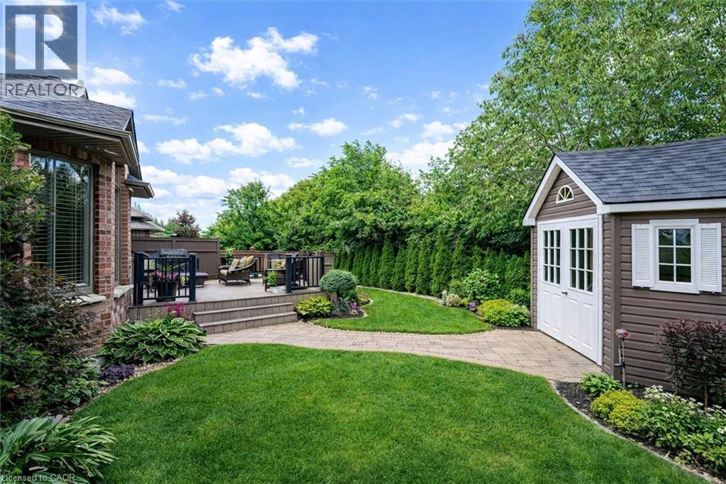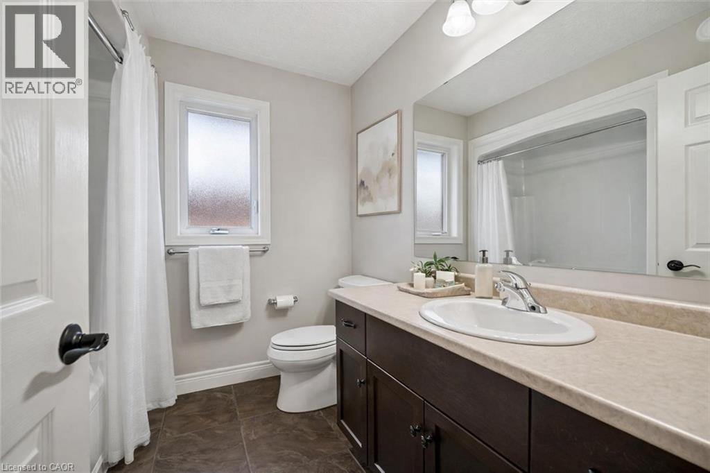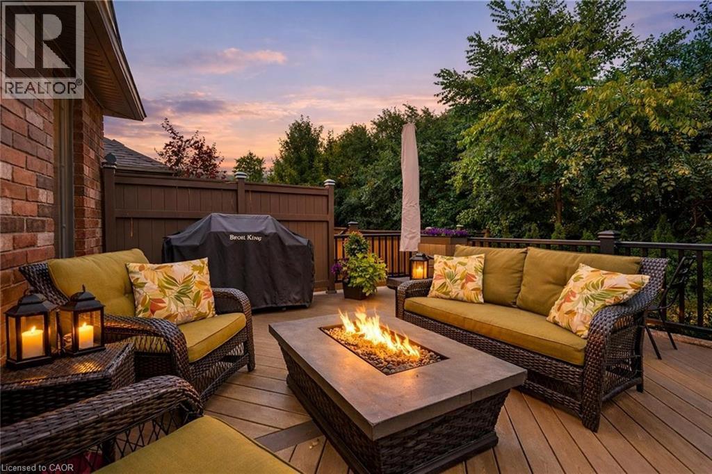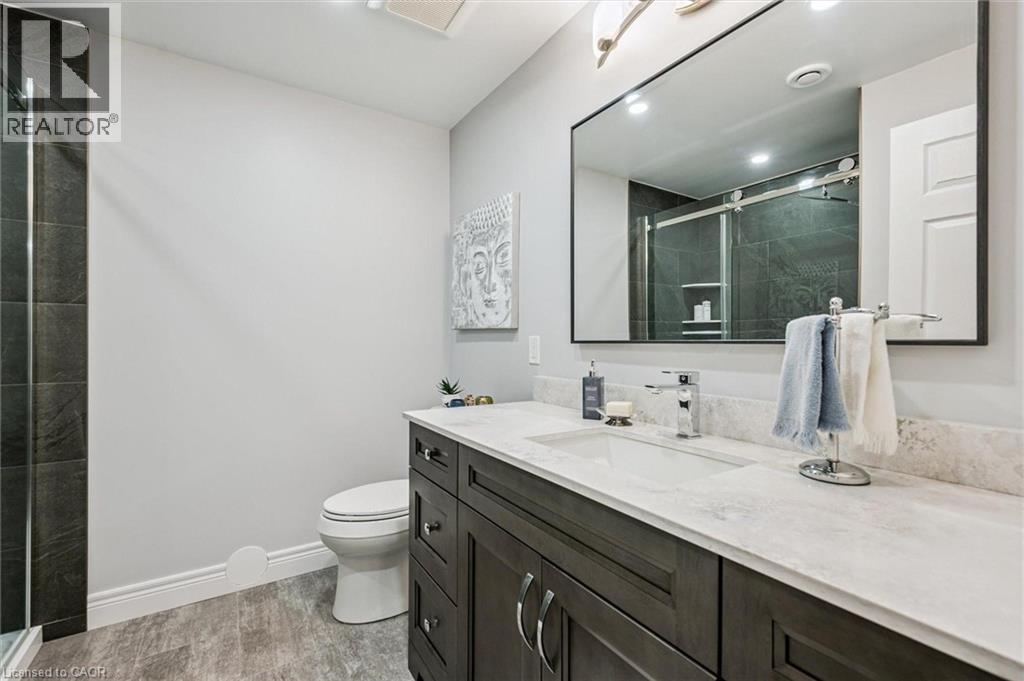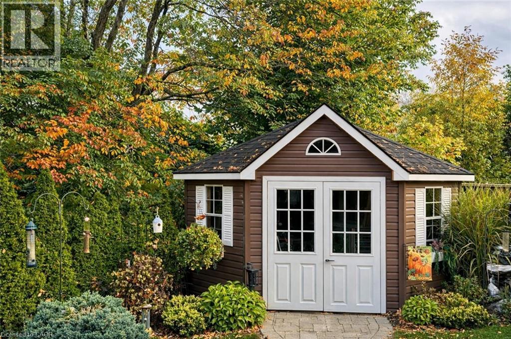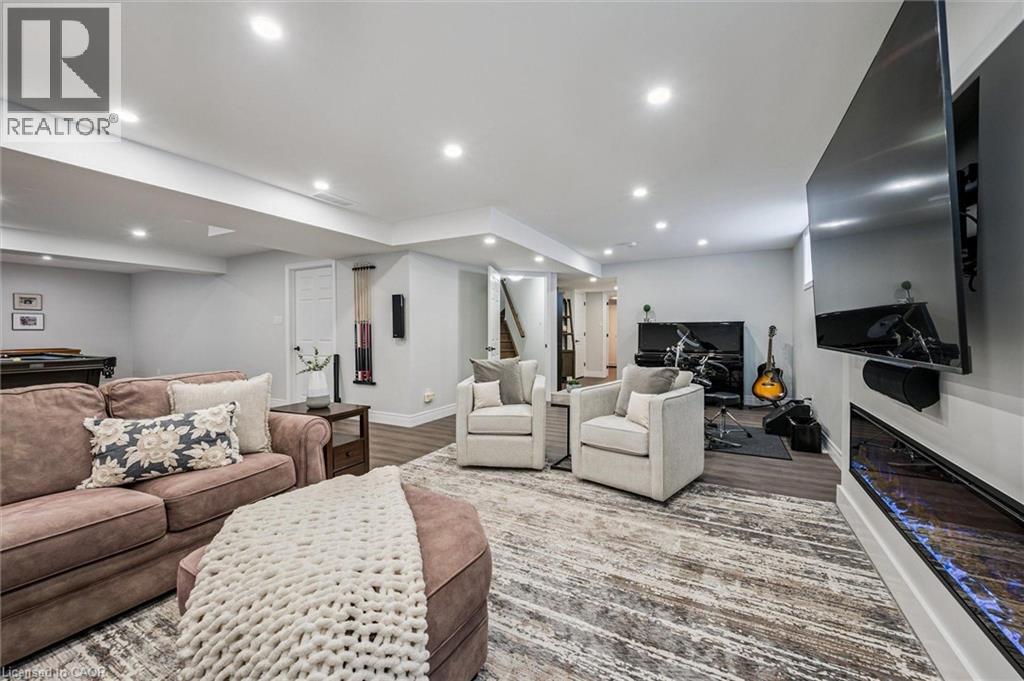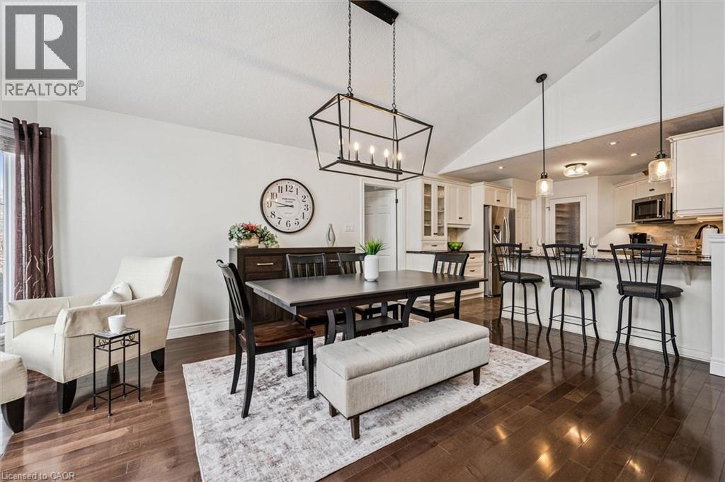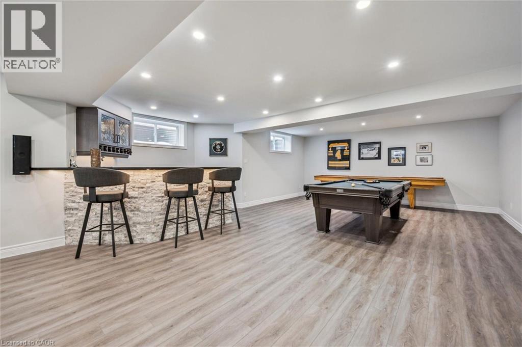 Stunning 4-bdrm bungalow W/newly finished bsmt & separate entrance backing onto greenspace! Located in family-friendly neighbourhood this home was built by a local builder known for superior craftsmanship, thoughtful design & energy-efficient construction. Stone & brick exterior, resurfaced driveway, front entry, interlock walkway & landscaped grounds create striking presence. Open-concept living & dining areas create space for everyday living & entertaining. Hardwood floors & vaulted ceilings enhance openness while windows fill home W/light & offer greenspace views. Stone fireplace creates warm atmosphere & dining room offers perfect setting for hosting. Kitchen W/white cabinetry, crown moulding & glass-front accents complement striking granite counter & stone backsplash. S/S appliances W/new 2025 KitchenAid stove & microwave. Ample cabinet & counter space provide lots of storage & prep space. Peninsula W/seating is ideal for casual meals & W/I pantry for storage. Primary bdrm W/tray ceilings, hardwood & large window. Ensuite with W/I shower, vanity W/storage & W/I closet. 2 add'l bdrms are bright & well-sized. 4pc main bath offers shower/tub. Laundry & mudroom offer storage & folding space W/access to garage & Level 2 EV charger. Prof. finished bsmt W/permits & over $100,000 invested to create high-quality space. Rec room W/electric fireplace, pot lighting & 4 windows. Custom stone bar with B/I beverage fridge & wine storage. Lots of room for gym, games area or playroom. Add'l bdrm W/dbl closet & 3pc bath W/quartz counters & glass shower. Sep ent offers potential for in-law or income suite. Backyard oasis W/interlock pathways, pristine gardens, landscaping & composite deck for entertaining, dining & lounging. Cedar hedges & trees provide privacy & fenced yard is ideal for families & pets. Backing onto Trestle Bridge Trail offering access to 47km scenic route connecting you to Grand River & Cataract Trail. Mins from downtown shops, dining & Elora Mill Spa! (id:64974)