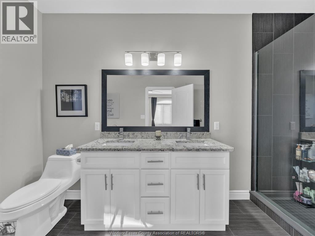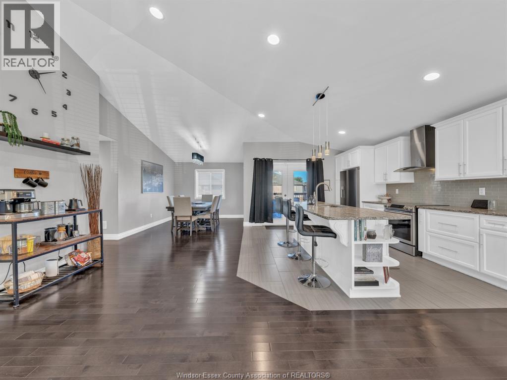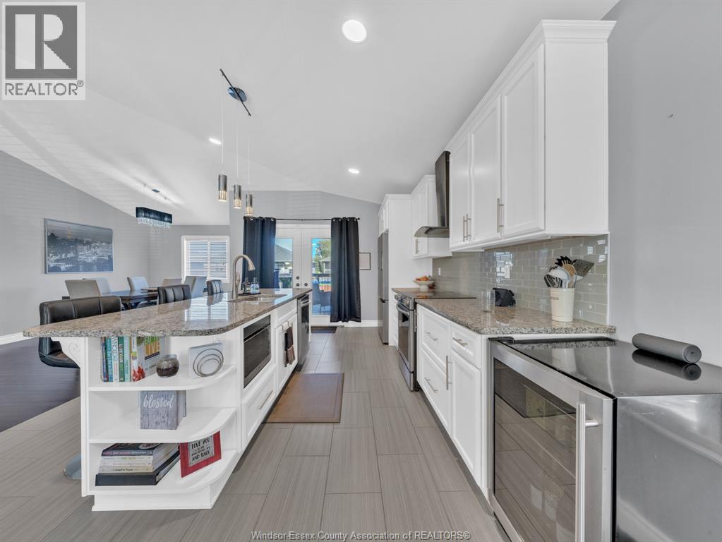 BUILT IN 2014 AND LOCATED IN A HIGHLY SOUGHT AFTER EAST RIVERSIDE LOCATION, THIS BRICK/STONE TO ROOF HOME FEATURES 3+2 BEDROOMS/OFFICE, 3 FULL BATHROOMS, HARDWOOD & CERAMIC THROUGHOUT MAIN FLOOR, INCLUDING LIVING ROOM W/CATHEDRAL CEILINGS, MODERN WHITE KITCHEN W/ GRANITE TOPS, BACK SPLASH & STAINLESS APPLIANCES STAY! SEPARATE DINING ROOM W/ LARGE PANTRY, 2 LARGE BEDROOMS ON MAIN FLOOR, MASTER SUITE UPSTAIRS, WITH WALK-IN CLOSET, CERAMIC/GLASS SHOWER AND DOUBLE VANITY IN GRANITE, LOWER LEVEL HAS BEEN WONDERFULLY FINISHED W/ FAMILY ROOM, GAS FIREPLACE FINISHED IN CULTURED STONE, GAMES/PLAY ROOM, BEDROOM, OFFICE & CERAMIC/GLASS SHOWER BATHROOM. FRENCH DOORS TO LARGE DECK, AGGREGATE PATIO & DRIVEWAY, WALK TO ST. JOSEPH SCHOOL, PARKS, SHOPPING & WFCU CENTRE. BOOK YOUR SHOWING TODAY! (id:64974)