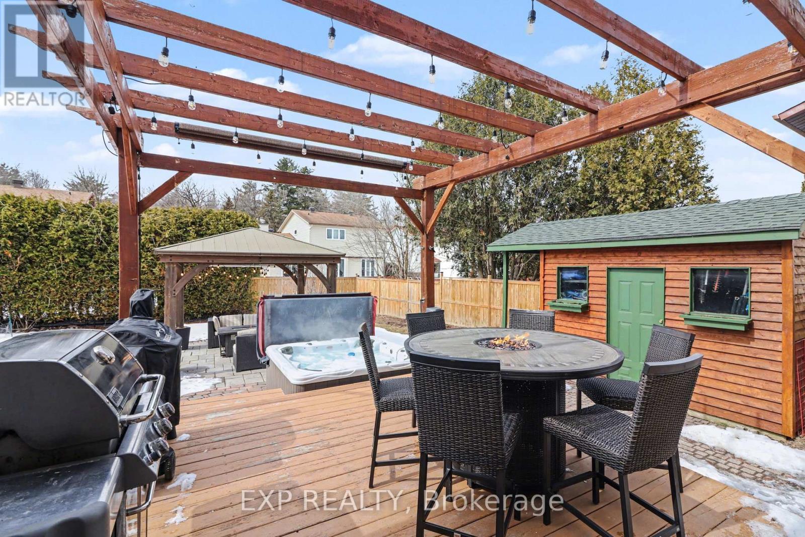 Rarely offered and well maintained throughout, this spacious 3+1 bedroom, 3.5 bathroom home is tucked into the sought-after, family-friendly community of Queenswood Heights in Orleans. Designed for both comfortable living and effortless entertaining, the main floor features a formal living/dining room with fireplace and a bright, well-appointed kitchen with a breakfast nook overlooking the private backyard. Just off the kitchen a cozy family room is the perfect spot to unwind or gather with guests. The main floor also features a private office-ideal for today's work-from-home lifestyle. Upstairs, the primary retreat offers a private ensuite and the level is completed by two well-sized bedrooms and a full main bath-ideal for growing families. The fully finished basement adds exceptional versatility, complete with a recreation room, kitchenette, laundry area, bedroom, and bathroom - perfect for teens, guests, or multigenerational living. Step outside to your own backyard oasis - fully fenced and thoughtfully designed with a deck, gazebo, fire pit, green space, and storage shed, offering the perfect setting for relaxing or entertaining all season long. Tastefully updated and meticulously cared for throughout, this home also features a double garage and driveway parking for up to four vehicles. Located in a fantastic neighbourhood with excellent schools, and just minutes to walking trails, ravine pathways, cross-country skiing, shopping and transit. Updates include: furnace (2011), windows (2016), roof (2016), and A/C (2022). One to see! (id:64974)