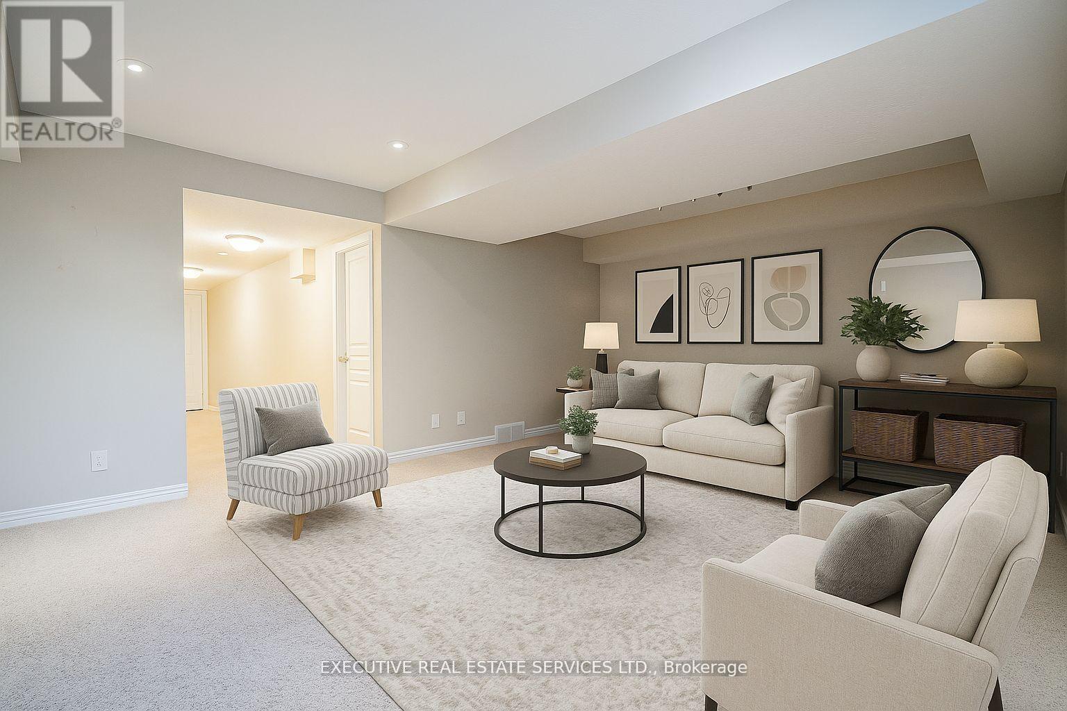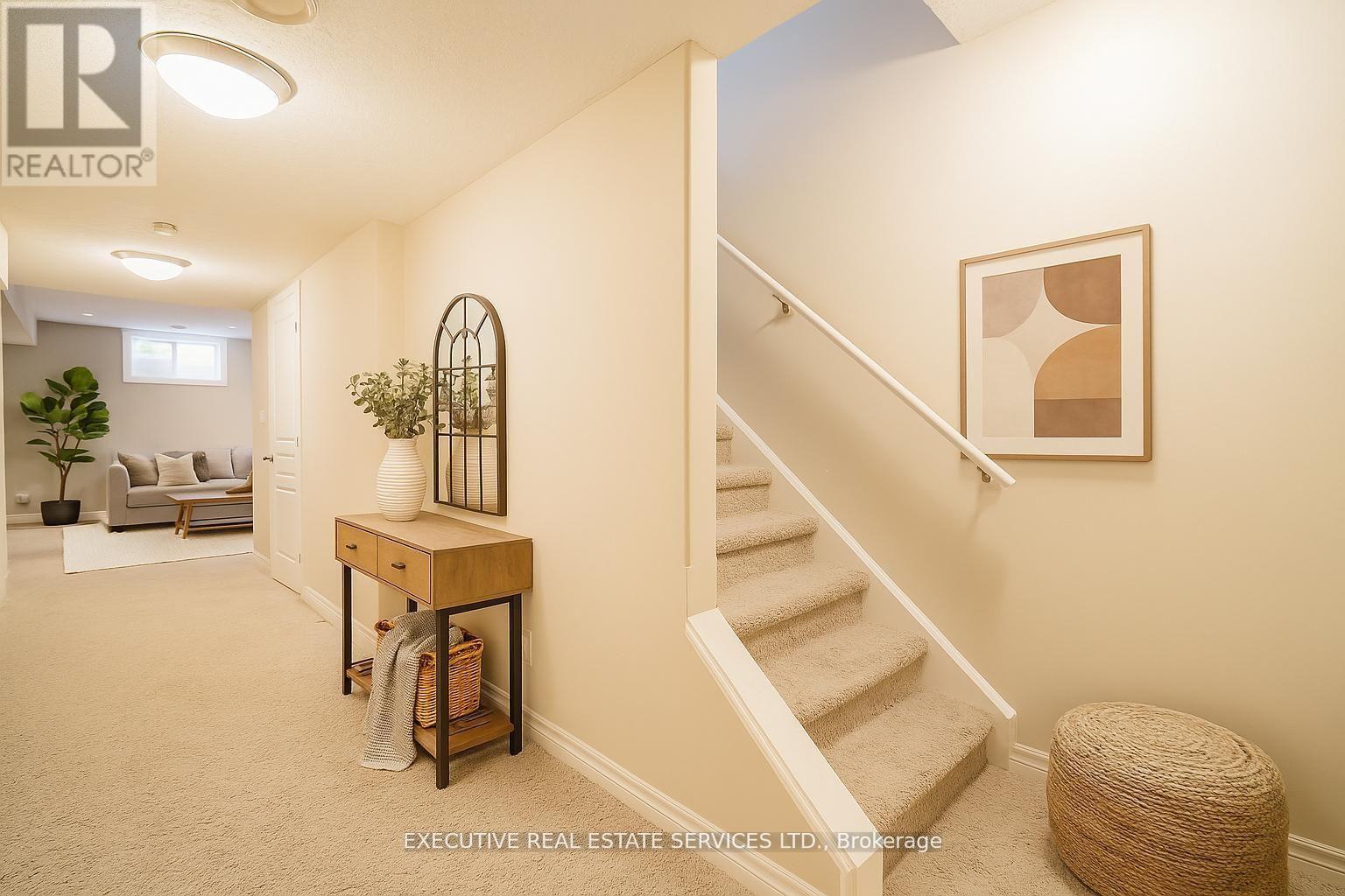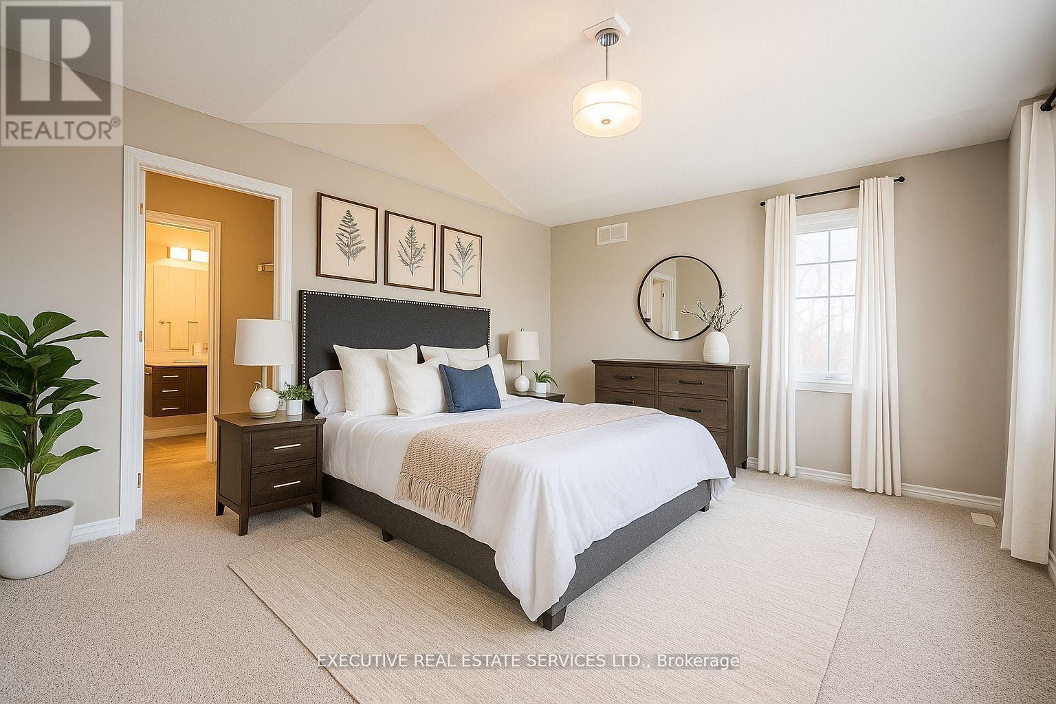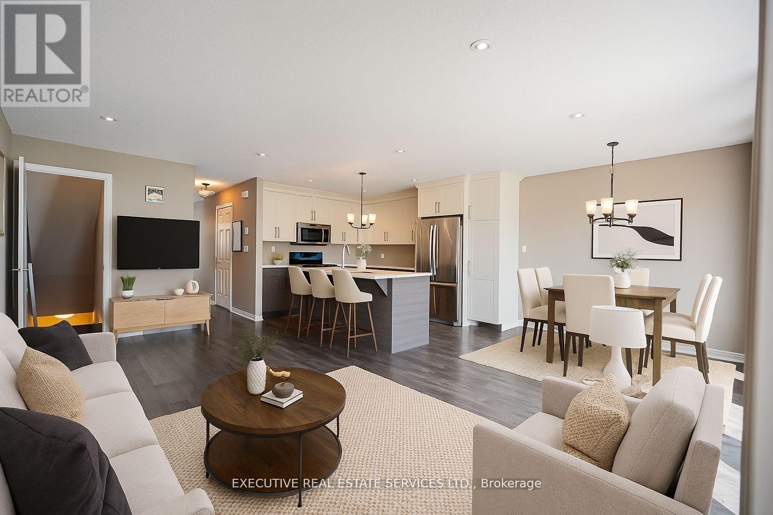 Beautifully upgraded townhouse in a desirable Stratford neighborhood with no house at the back, offering rare privacy and open views of green space. (Photos are virtually staged for visualization purposes.) This move-in-ready home features high ceilings and dimmable pot lights throughout the main floor and basement, creating a warm and inviting ambiance.The upgraded kitchen includes ceiling-height cabinetry, brand-new stainless steel stove and dishwasher, and a spacious layout perfect for both daily living and entertaining. Enjoy the elegance of hardwood flooring throughout and a curtain-free design that allows natural light to pour in.The finished basement includes a 3-piece washroom, providing extra space for guests, a home office, or recreation. Upstairs, the massive primary bedroom features a walk-in closet, while the other two bedrooms boast beautiful views of an open field.Garage includes built-in storage and is equipped with Tesla charger installed. Driveway fits 2 cars with room for 1 more in the garage. Located just 5 minutes from Stratford Hospital, Walmart, and all major amenities, this is the perfect home for families or professionals seeking comfort, space, and convenience. (id:64974)