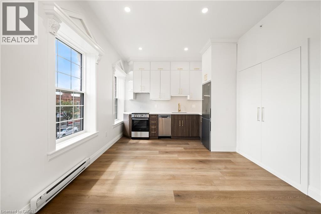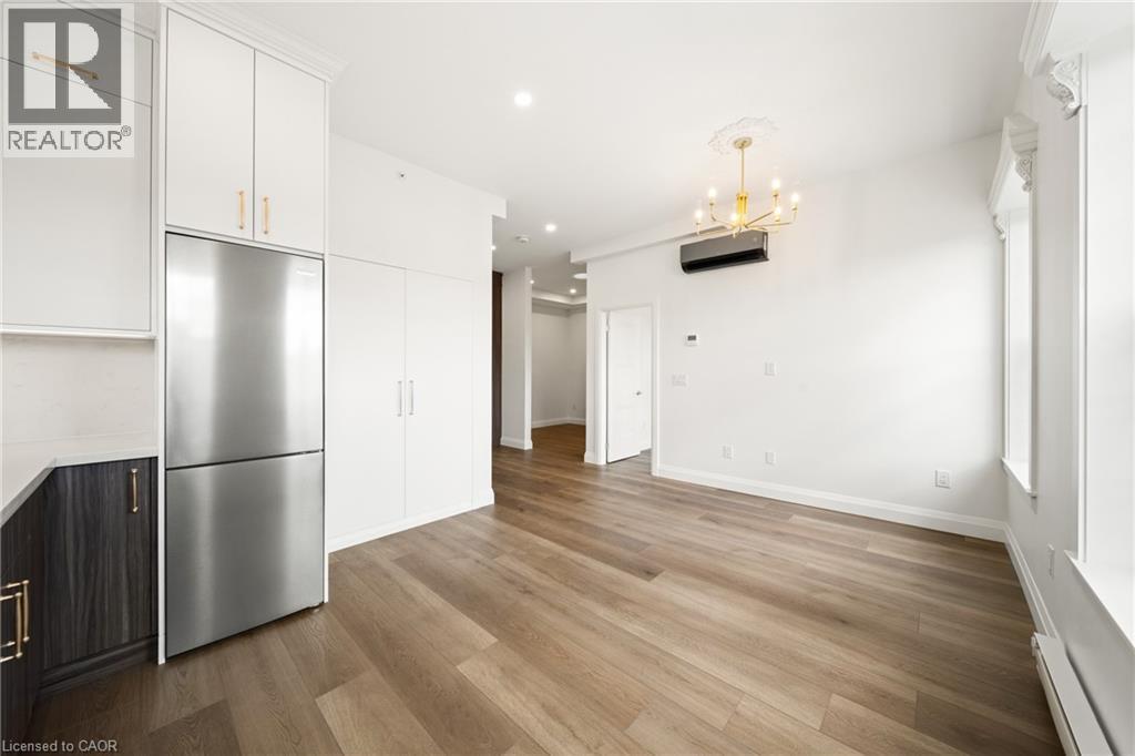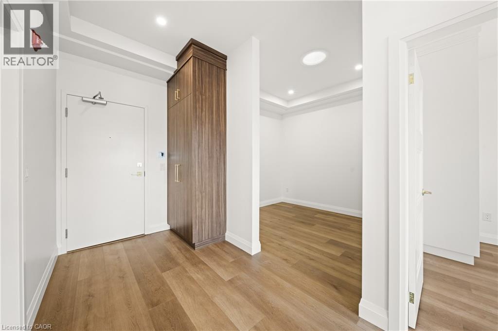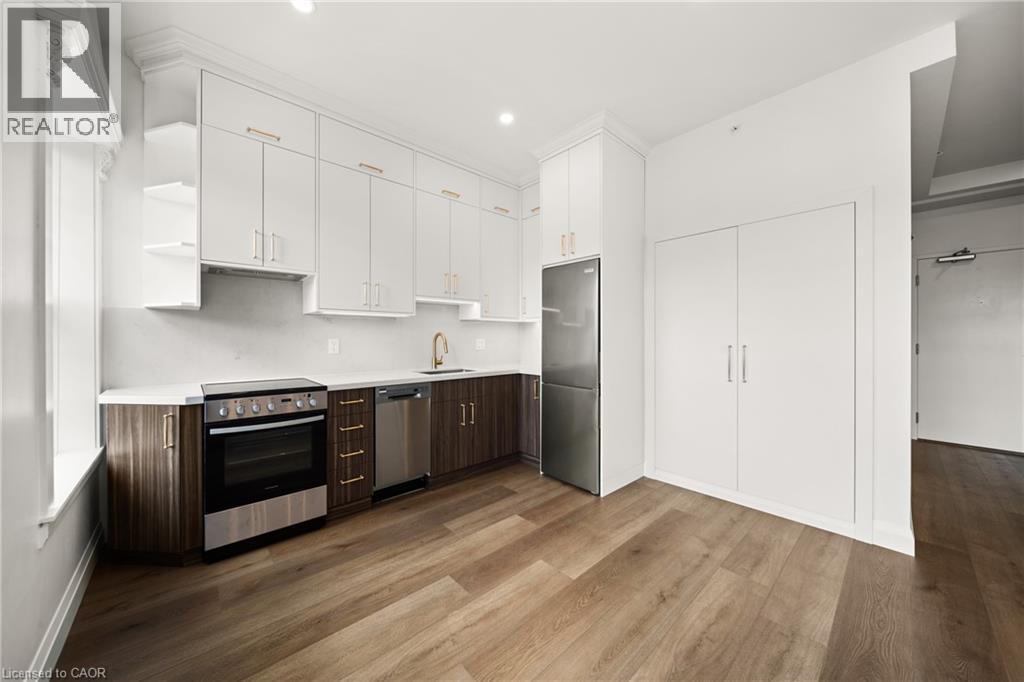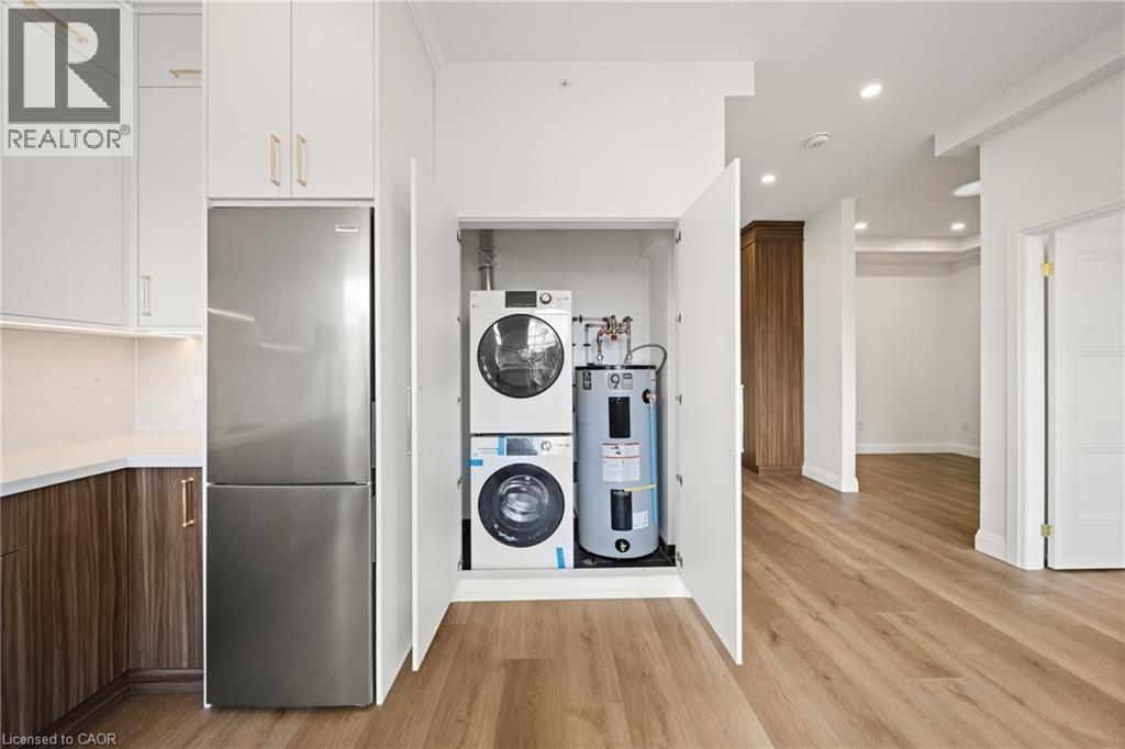 Step into something extraordinary. This brand-new, never-lived-in 1-bedroom + den unit in the heart of historic downtown Milton is where old-world charm collides with bold, modern luxury. Framed by a striking sage green door, the vibe starts before you even enter. Inside, its all about rich hardwood floors, custom marble-tiled bathrooms with heated floors, luxury crown molding, and gold-accented lighting that nods to the buildings timeless character while delivering sleek, high-end appeal. The modern kitchen is made to impress, with stainless steel appliances, soft-touch cabinetry, and oversized window sills that flood the space with natural light. The open layout and high ceilings bring serious loft energy, while the versatile den offers space to create whether its a home office, guest nook, or cozy media zone. Set in a boutique building with a beautifully curated common hallway, you're surrounded by heritage vibes and design-forward finishes from the ground up. Live steps from La Toscana, Pasqualino, the Farmers Market, schools, parks, and major highways. This is more than a place to live- its a lifestyle with character and class. (id:64974)