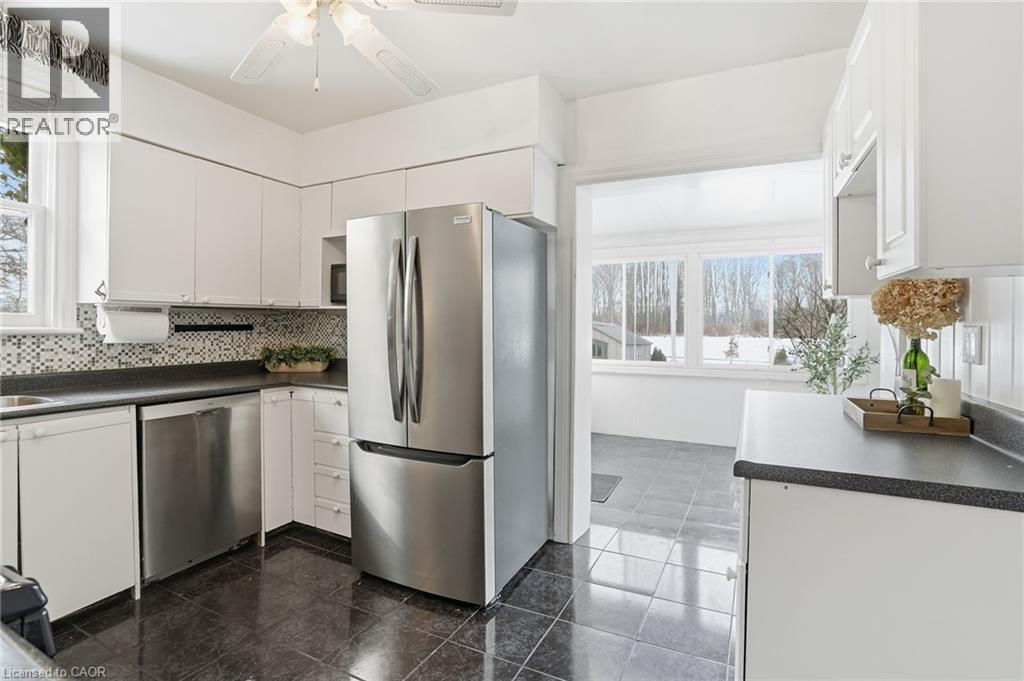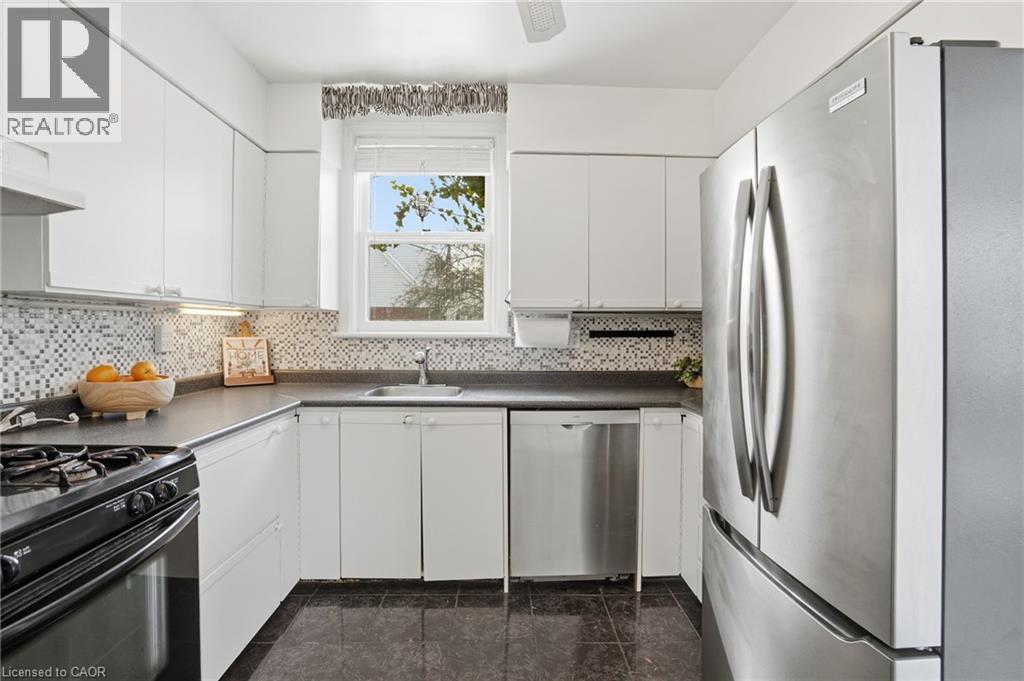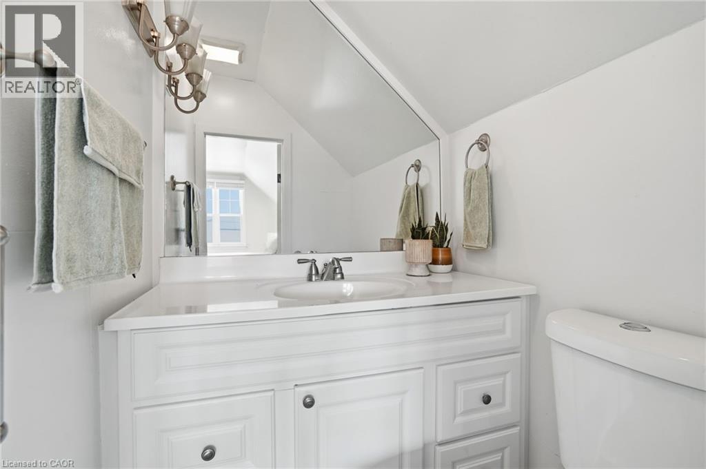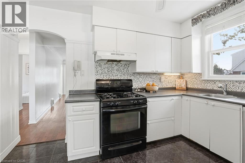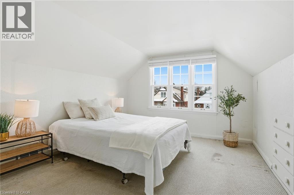 Enjoy elegant park side living in this charming 1.5-storey home offering 4 bedrooms and 2.5 baths, backing directly onto Churchill Park. Nestled in a quiet neighbourhood, you’re steps to sports fields, scenic trails to Princess Point and Cootes Paradise, close to McMaster, and minutes to highway access. The beautifully landscaped exterior features established gardens, high-quality aggregate walkways, a welcoming front porch, rear patio, and an elevated deck off the four-season sunroom—perfect for relaxing or entertaining. The main floor offers a bright living room with a big bay window, kitchen, sunroom with deck and backyard access, 4-piece main bath, and two versatile bedrooms, one currently set as a dining room. Upstairs, the sun-filled master bedroom includes a 2-piece ensuite, and the second bedroom enjoys west-facing views overlooking the park. The basement has its own separate side entrance ideal for extended family or rental potential. There is a rec room with sink, two bedrooms, 3-piece bath, and laundry room. This home is all about beautiful potential. Come check it out and start imagining how idyllic your life can be! (id:64974)
