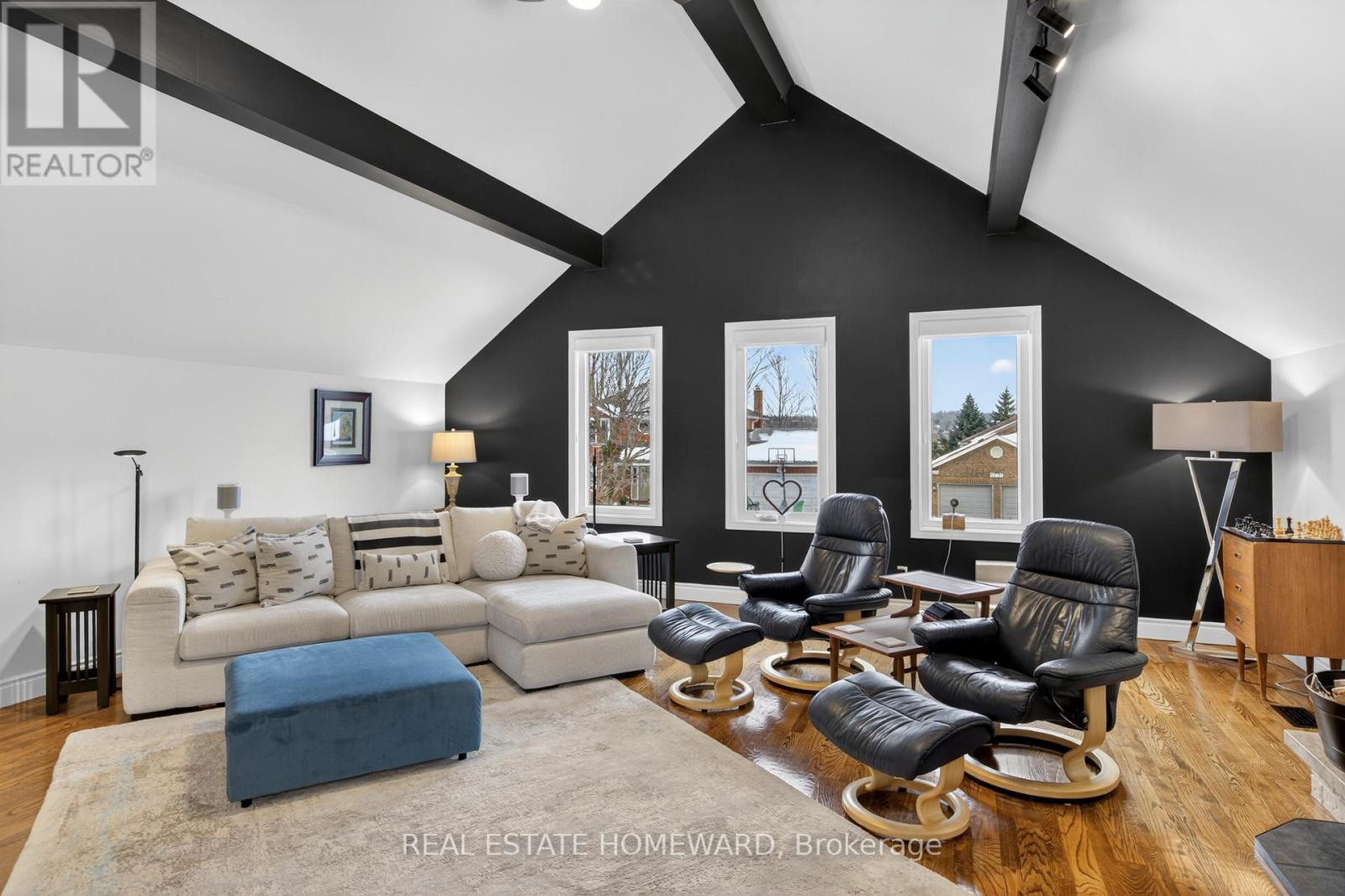 Set on one of Peterborough's most coveted crescents, this beautifully updated executive residence offers a refined lifestyle where comfort, quality, and long-term value come together seamlessly. From the moment you arrive, it's clear this is a home designed to be lived in and loved. At the heart of the home, the expansive family room impresses with soaring cathedral ceilings and a warm wood-burning fireplace-an inviting space for both quiet evenings and memorable gatherings. Every detail has been thoughtfully refreshed, with fresh paint throughout, new lighting, and new flooring in the main hallway and kitchen, creating a bright and cohesive flow. The primary suite is a true retreat, complete with a walk-in closet and private ensuite. Downstairs, the lower level transforms into a personal sanctuary featuring a large recreation area and an indulgent steam shower-ideal for relaxing, entertaining, or wellness at home.S tep outside to your private backyard oasis, where a three-year-old inground heated salt-water pool and hot tub create the ultimate outdoor playground, perfect for summer entertaining and year-round enjoyment. With major upgrades completed in the last three years-including the roof, furnace, central air conditioning, and bathroom vanities-this home offers peace of mind alongside its undeniable style.Just minutes on foot from the shores of Thompson Bay and the Peterborough Golf & Country Club, the location is as impressive as the home itself. With planned future rail connectivity anticipated to link Peterborough with Toronto in the coming years, discerning buyers will recognize the opportunity to secure a premier property ahead of this highly anticipated growth and enhanced accessibility. Perfectly suited to those seeking an elevated lifestyle today-and exceptional potential for tomorrow-this is a rare offering in an established, prestigious neighbourhood. (id:64974)