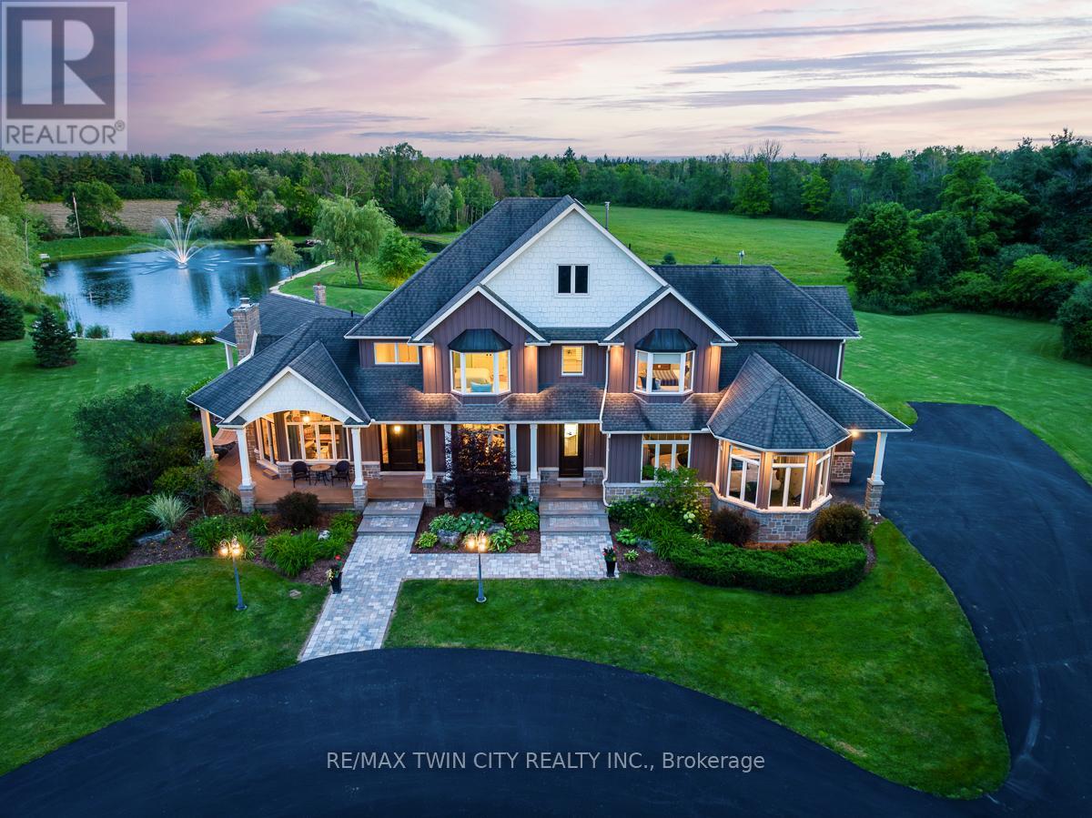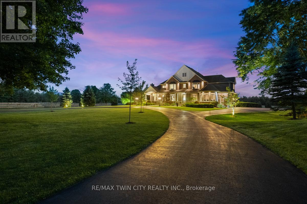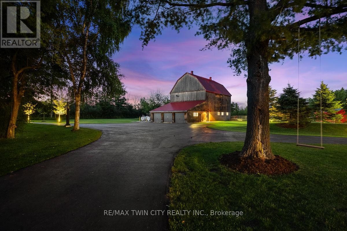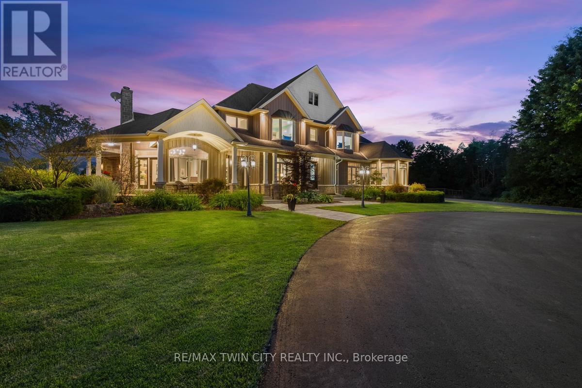 Scenic Flamborough is a part of southwestern Ontario known for farms and horse ranches. Located between Cambridge and Hamilton is this completely private, calendar book property on 90 acres. The home is set back from the main road with mature natural beauty as a buffer. A manicured tree line separates the driveway from the paddocks leading up to the home with approximately 15 acres of cultivable land, pastures, and gardens. The barn is suited for horses, complete with hydro, running water, four stalls, tack room, and massive hay loft. Attached to it is an oversized 3 bay garage providing space for utility vehicle storage and a workshop. In the centre of the property is a beautiful two story home at over 6800 square feet of finished space including the basement, with in-floor heating throughout the entire home and subdivided triple car garage. The board and batten/stone skirt exterior, wrap around porch, large windows, and soaring ceilings give the home its luxury farmhouse feel. It offers capacity for living and entertaining with 3 bedrooms plus a spa like primary suite, 6 bathrooms, beautiful living room with stunning fireplace, gourmet kitchen with butler pantry, and oversized dining room open to the nook and family room also featuring an elegant stone fireplace with timber mantel. The main floor office and laundry offer convenience. The basement was designed with recreation in mind offering a games room, wet bar and home theatre with surround sound and projection system. The basement level is also directly accessible from the garage via the second staircase. Relaxation extends to the outdoors with a backyard heated saltwater pool, 20' x 30' Muskoka room and wood burning stone fireplace and chimney. The views are gorgeous in every direction; to the south it overlooks a private acre pond complete with beach and aerating fountain, and behind it over 74 acres of forest with a 4 km network of trails for walking and riding. A truly stunning property! (id:64974)