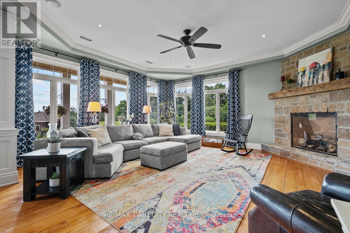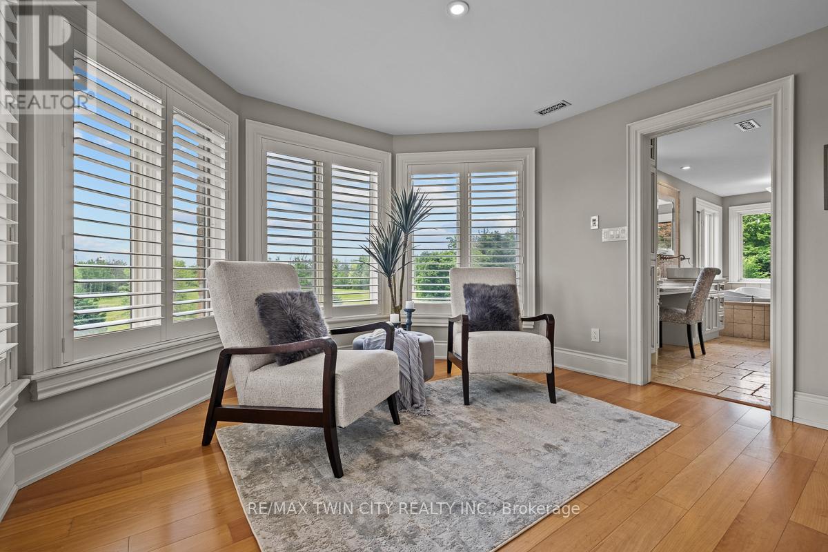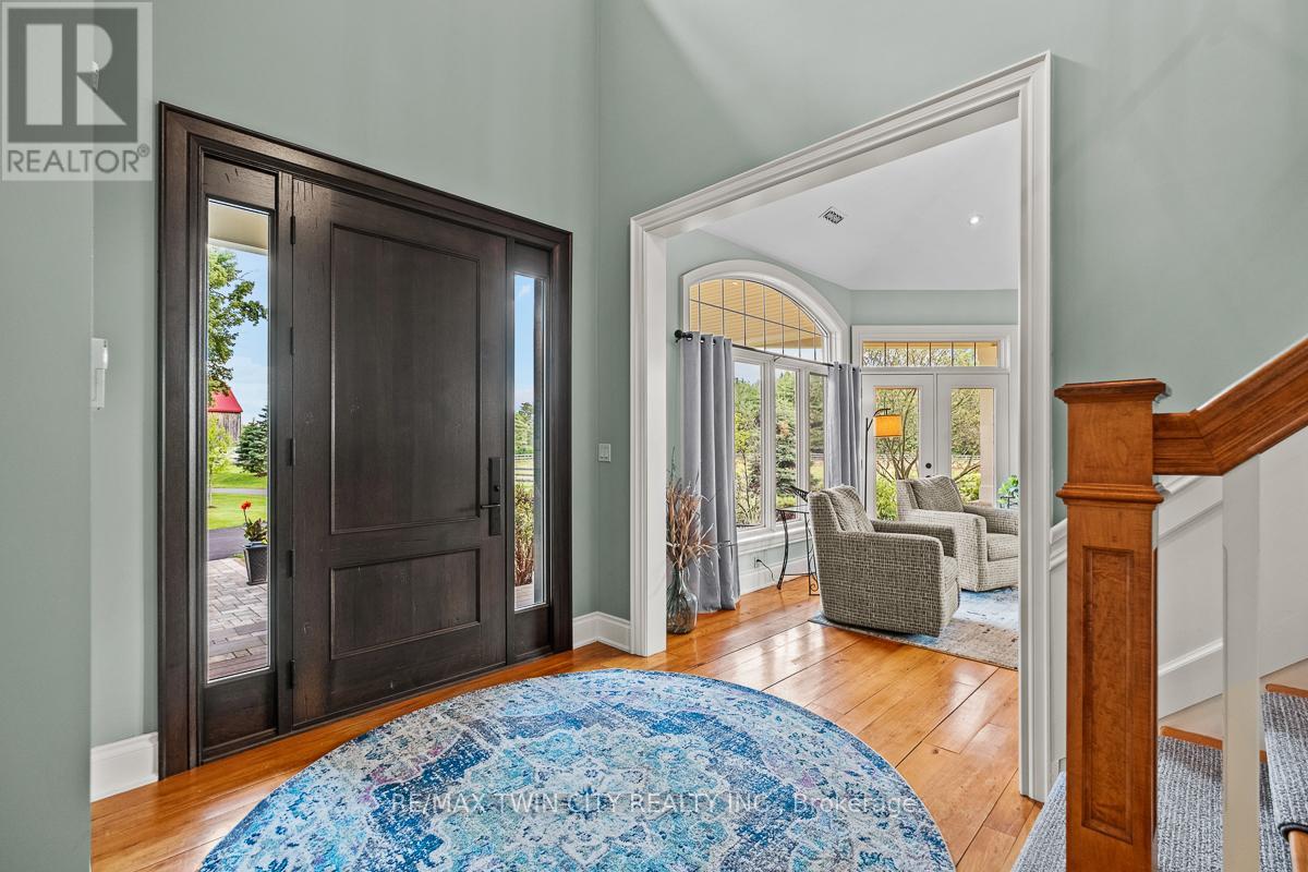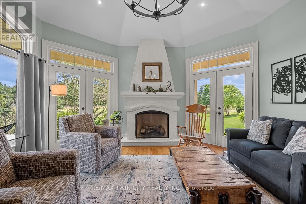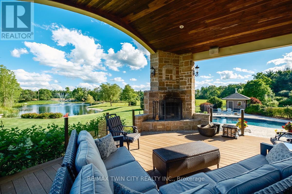 Scenic Flamborough is a part of southwestern Ontario known for farms and horse ranches. Located between Cambridge and Hamilton is this completely private, calendar book property on 90 acres. The home is set back from the main road with mature natural beauty as a buffer. A manicured tree line separates the driveway from the paddocks leading up to the home with approximately 15 acres of cultivable land, pastures, and gardens. The barn is suited for horses, complete with hydro, running water, four stalls, tack room, and massive hay loft. Attached to it is an oversized 3 bay garage providing space for utility vehicle storage and a workshop. In the centre of the property is a beautiful two story home at over 6800 square feet of finished space including the basement, with in-floor heating throughout the entire home and subdivided triple car garage. The board and batten/stone skirt exterior, wrap around porch, large windows, and soaring ceilings give the home its luxury farmhouse feel. It offers capacity for living and entertaining with 3 bedrooms plus a spa like primary suite, 6 bathrooms, beautiful living room with stunning fireplace, gourmet kitchen with butler pantry, and oversized dining room open to the nook and family room also featuring an elegant stone fireplace with timber mantel. The main floor office and laundry offer convenience. The basement was designed with recreation in mind offering a games room, wet bar and home theatre with surround sound and projection system. The basement level is also directly accessible from the garage via the second staircase. Relaxation extends to the outdoors with a backyard heated saltwater pool, 20' x 30' Muskoka room and wood burning stone fireplace and chimney. The views are gorgeous in every direction; to the south it overlooks a private acre pond complete with beach and aerating fountain, and behind it over 74 acres of forest with a 4 km network of trails for walking and riding. A truly stunning property! (id:64974)