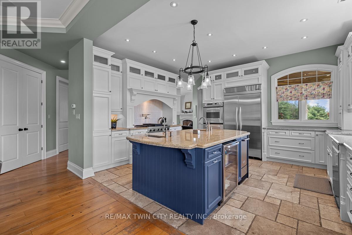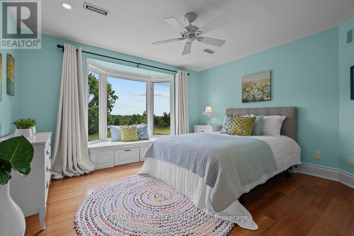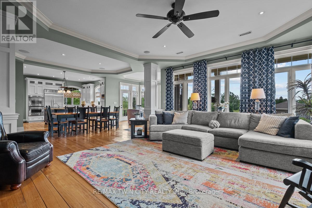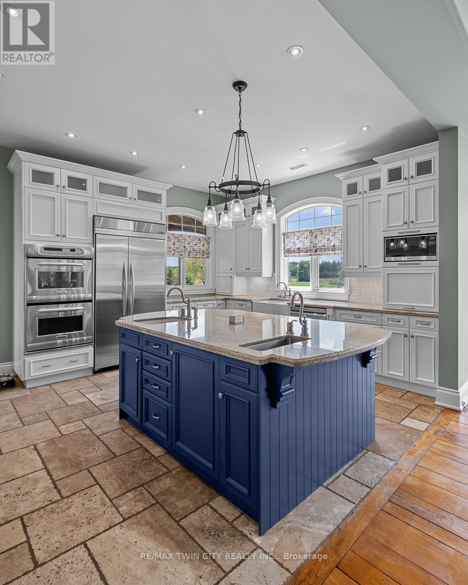 Scenic Flamborough is a part of southwestern Ontario known for farms and horse ranches. Located between Cambridge and Hamilton is this completely private, calendar book property on 90 acres. The home is set back from the main road with mature natural beauty as a buffer. A manicured tree line separates the driveway from the paddocks leading up to the home with approximately 15 acres of cultivable land, pastures, and gardens. The barn is suited for horses, complete with hydro, running water, four stalls, tack room, and massive hay loft. Attached to it is an oversized 3 bay garage providing space for utility vehicle storage and a workshop. In the centre of the property is a beautiful two story home at over 6800 square feet of finished space including the basement, with in-floor heating throughout the entire home and subdivided triple car garage. The board and batten/stone skirt exterior, wrap around porch, large windows, and soaring ceilings give the home its luxury farmhouse feel. It offers capacity for living and entertaining with 3 bedrooms plus a spa like primary suite, 6 bathrooms, beautiful living room with stunning fireplace, gourmet kitchen with butler pantry, and oversized dining room open to the nook and family room also featuring an elegant stone fireplace with timber mantel. The main floor office and laundry offer convenience. The basement was designed with recreation in mind offering a games room, wet bar and home theatre with surround sound and projection system. The basement level is also directly accessible from the garage via the second staircase. Relaxation extends to the outdoors with a backyard heated saltwater pool, 20' x 30' Muskoka room and wood burning stone fireplace and chimney. The views are gorgeous in every direction; to the south it overlooks a private acre pond complete with beach and aerating fountain, and behind it over 74 acres of forest with a 4 km network of trails for walking and riding. A truly stunning property! (id:64974)
