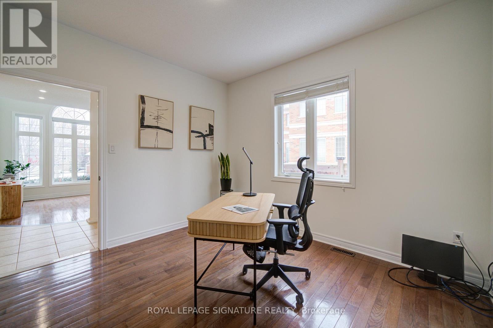 Welcome to Oakville's prestigious Joshua Creek community, where convenience, luxury, and top-rated schools come together. This stunning Ballantry-built home sits on a premium deep lot with approximately 60' width across the rear, offering exceptional privacy and a professionally landscaped backyard with cobblestone-style patio, towering 28' Blue Spruce trees, maple, ornamental pear trees, and large cedars. Approximately 3,540 sq. ft. of luxurious living space features an upgraded fiberglass front entry door, hardwood flooring throughout the home, 9' main floor ceilings, crown mouldings, and a curved oak staircase. The main floor features a private office, a sunken formal living room with tapered columns, crown mouldings, and pot lights, and an elegant dining room with coffered ceiling and hardwood floors. The extensively upgraded and modified kitchen boasts maple cabinetry, extended-height upper cabinets, granite countertops, travertine backsplash, stainless steel appliances, a breakfast bar, and a walk-out to the breakfast area. The open-concept family room, anchored by a gas fireplace, completes this level, providing a perfect space for family gatherings and entertaining. The second floor features a spacious primary suite with a spa-inspired ensuite, including a luxurious soaker tub and a large walk-in closet. Three additional bedrooms include one with a private ensuite, providing comfort and convenience for family or guests. An exceptional home offering outstanding location, privacy and quality craftsmanship. (id:64974)