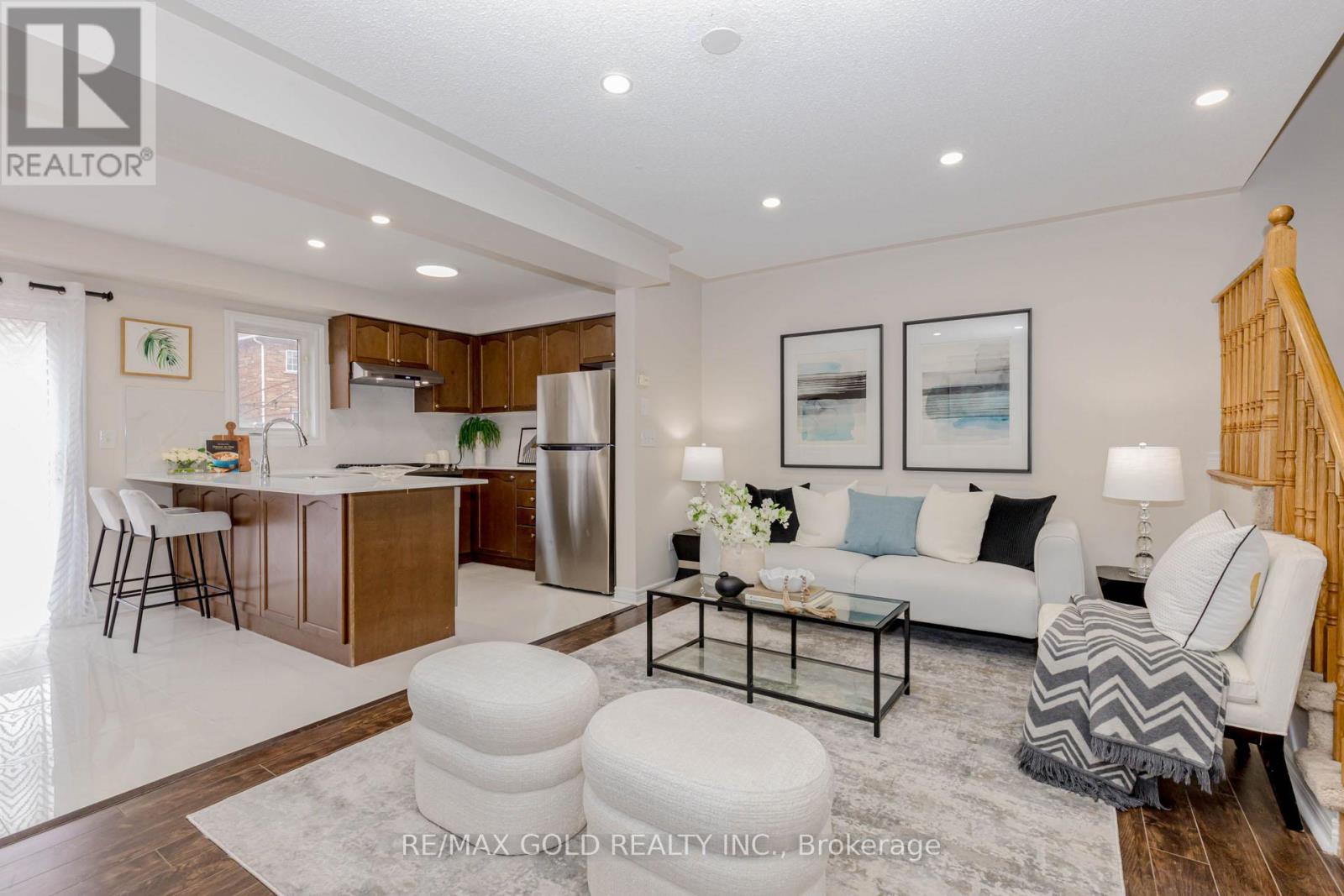 Welcome to this beautifully maintained and upgraded home located in a highly desirable neighborhood of Brampton! This bright and spacious 3+1 bedroom, 4 bathroom property features a fully finished legal in-law suite basement, perfect for extended family or additional living space. The home welcomes you with a grand double door entry into a foyer finished with ceramic tiles, leading into a modern open-concept main floor adorned with elegant pot lights and freshly painted throughout. The upgraded kitchen and breakfast area also feature ceramic tile flooring and are equipped with quartz countertops, stylish backsplash, and brand-new gas stove and dishwasher. The remainder of the main floor, along with the upper and basement levels, showcases seamless laminate flooring for a clean and contemporary feel. Step outside to a well-designed backyard featuring a combination of concrete and deck space, ideal for relaxing or entertaining. Convenient access to the backyard directly from the garage adds extra functionality. Includes 3 parking spaces. All measurements are approximate. Situated in a prime location close to schools, parks, public transit, shopping, and major highways, this home offers both comfort and convenience. A fantastic opportunity for tenants seeking a move-in ready home in a family-friendly community! (id:64974)