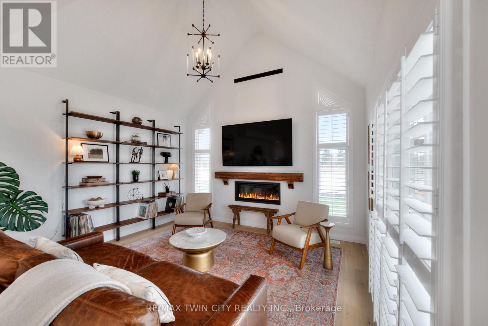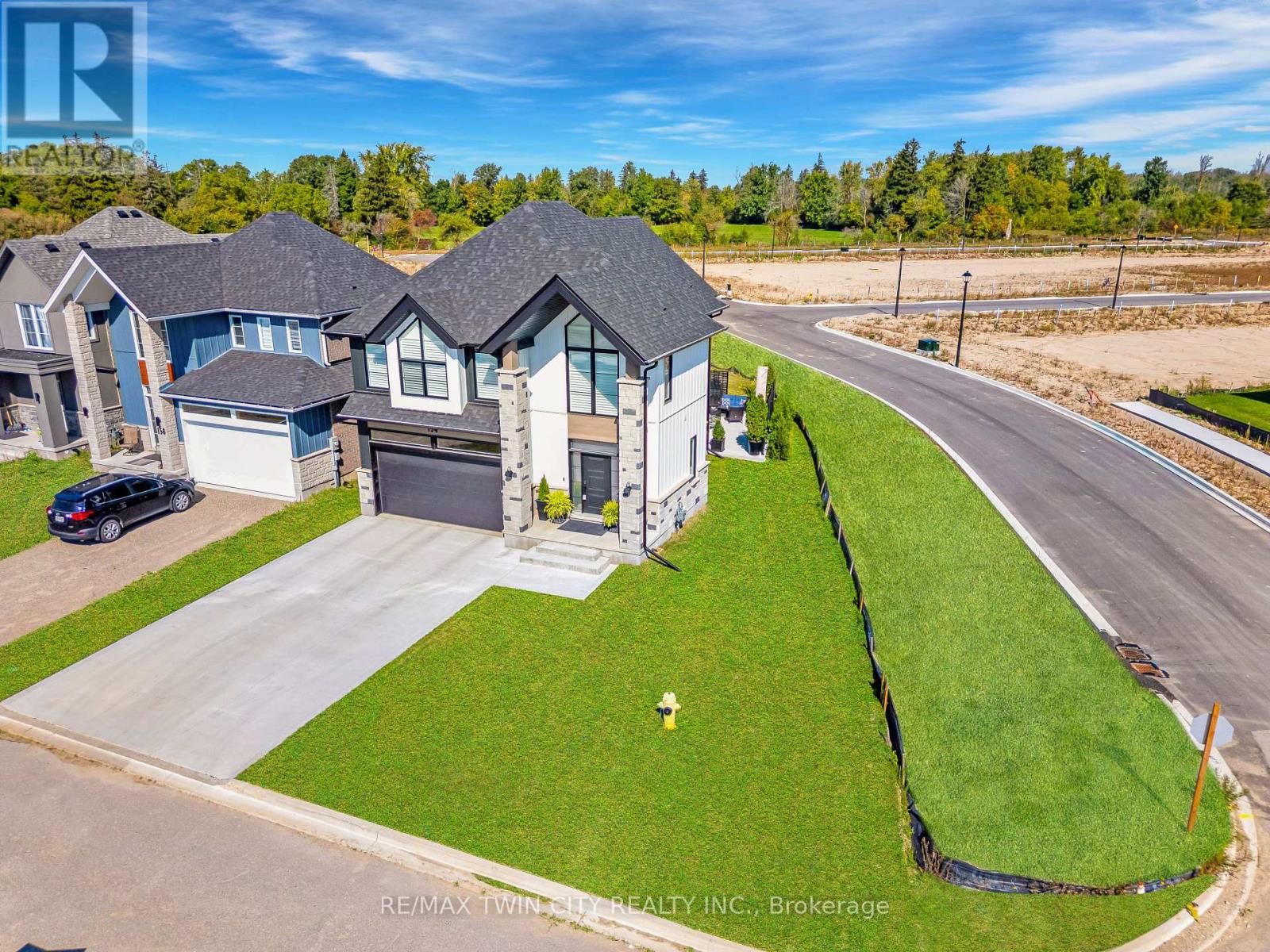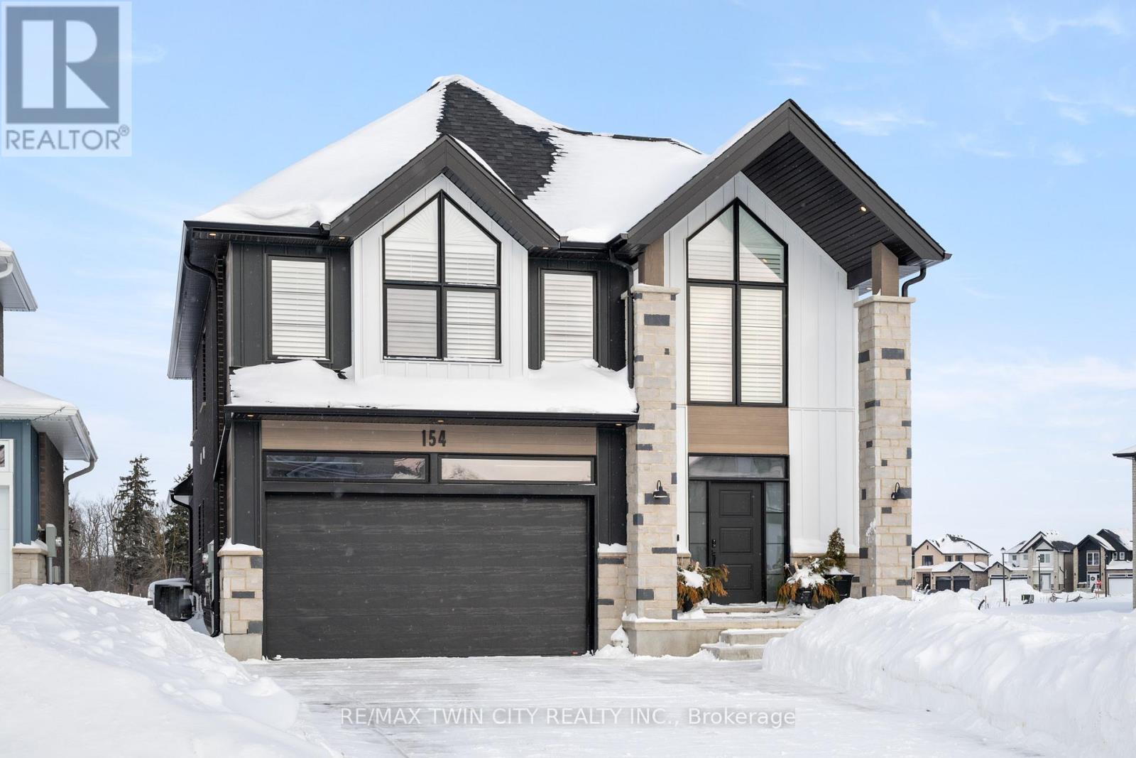 Welcome to 154 Dempsey Drive! At over 2,500 square feet, this 4-bed, 3.5-bath home is packed with standout features from its striking curb appeal to the custom interior details that set it apart. Check out our TOP 7 reasons why you'll want to make this house your home! #7: PRIME STRATFORD LOCATION - Tucked away in Knightsbridge - a quiet, family-friendly community in one of Stratford's most desirable pockets, you're just minutes from schools, parks, downtown shopping, and the world-renowned Stratford Festival Theatre. #6: STUNNING CURB APPEAL - With a rich blend of brick, stone, and board-and-batten siding, The Lionel stands out for all the right reasons. #5: SMART MAIN FLOOR LAYOUT - The carpet-free main level features engineered hardwood and tile flooring, with thoughtful details like a powder room, main floor laundry with built-in shelving, 9-foot ceilings and two walkouts to the backyard. #4: STANDOUT KITCHEN - The kitchen brings it all together form, function, and a serious dose of flair. You'll love the statement island, shaker cabinetry, ceramic subway tile backsplash, quartz countertops, and sleek stainless steel appliances. There's even a dedicated coffee station or bar with quartz countertops and open shelving. #3: THE BACKYARD - Both patio doors lead out to the sun-soaked backyard. Whether you're grilling on the concrete patio or sipping your morning coffee, you've got room to breathe, relax, and entertain. #2: BEDROOM SUITES - Upstairs features four large bedrooms, including a show-stopping primary suite with dual vaulted ceilings, oversized windows, a walk-in closet, and a 5-piece spa-inspired ensuite. One additional bedroom features its own 4-piece en-suite, while the other two share a beautiful 5-piece main bath. #1: ROOM TO GROW - The unspoiled basement offers over 1,200 square feet of potential, with a 3-piece rough-in already in place. Build out a rec room, gym, home theatre, or in-law suite the possibilities are wide open. (id:64974)