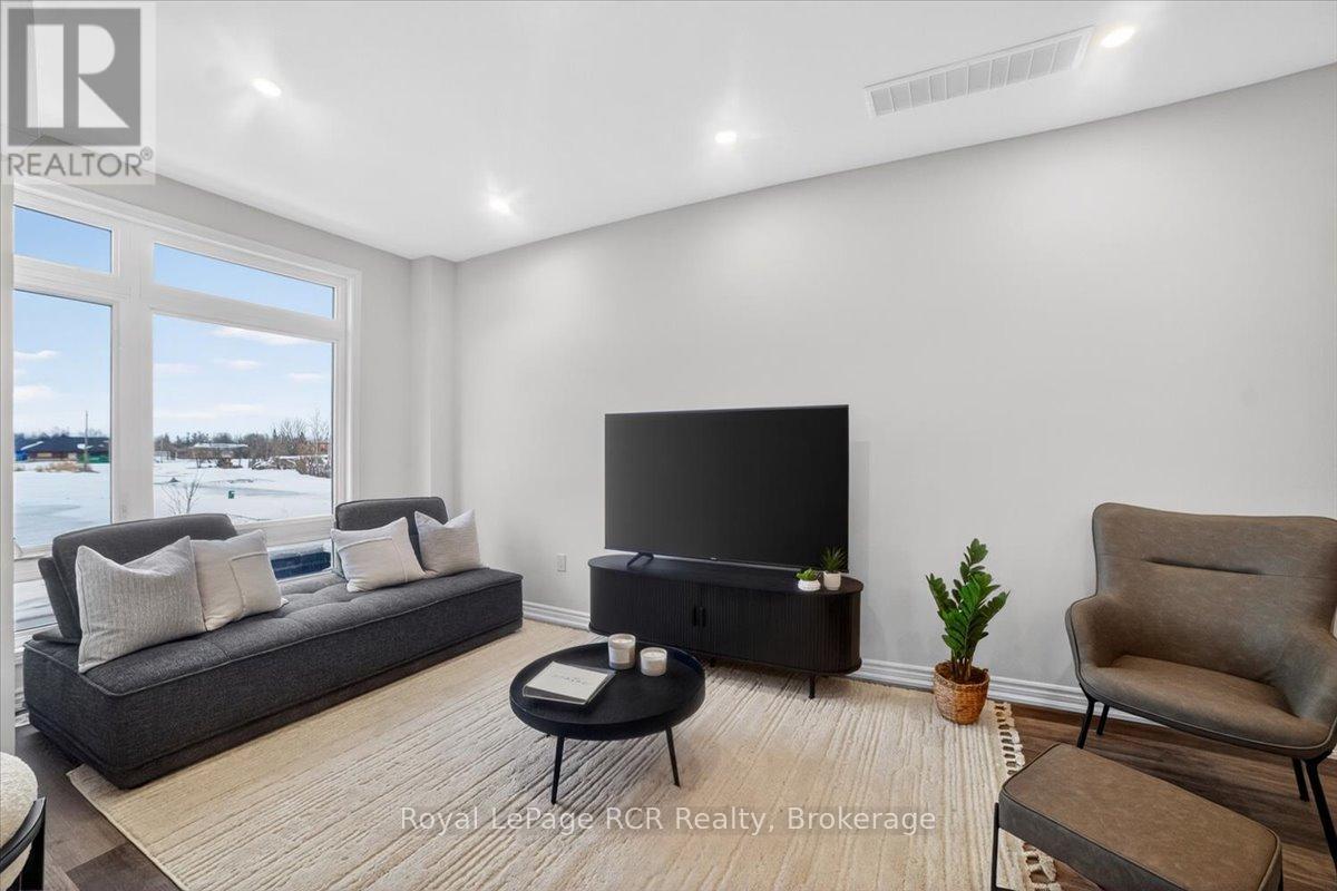 NEW CONSTRUCTION, with Tarion New Home Warranty!! Lakeside community in Orillia, equipped with a PRIVATE Rooftop Terrace! Be the first one to call this unit, home! Experience the pinnacle of modern living in this brand-new, exquisitely designed home in the heart of Orillia, just moments from the sparkling waters of Lake Couchiching. This 2 Bedroom, 2.5 Bathroom home offers an elegant open-concept living and dining area, with an abundance of natural light- perfect for hosting gatherings or unwinding after a long day. On the ground level you will find a second living space (rec room), a bright and open foyer, with access to the garage. The second floor features the open concept living space, along with the kitchen, laundry room & powder room. Making your way to the third level is where you will find two bedrooms, main bathroom & ensuite bathroom. Last (but certainly not least), the fourth floor offers access to the beautiful, and private roof top terrace, looking out at a pond. This home is located a short walk to the vibrant downtown core of Orillia. Discover unique boutiques, art galleries, diverse dining options, a historic opera house, and a lively farmers' market. This is more than just a home; its a lifestyle. Clubhouse is under construction, nearing completion. (id:64974)