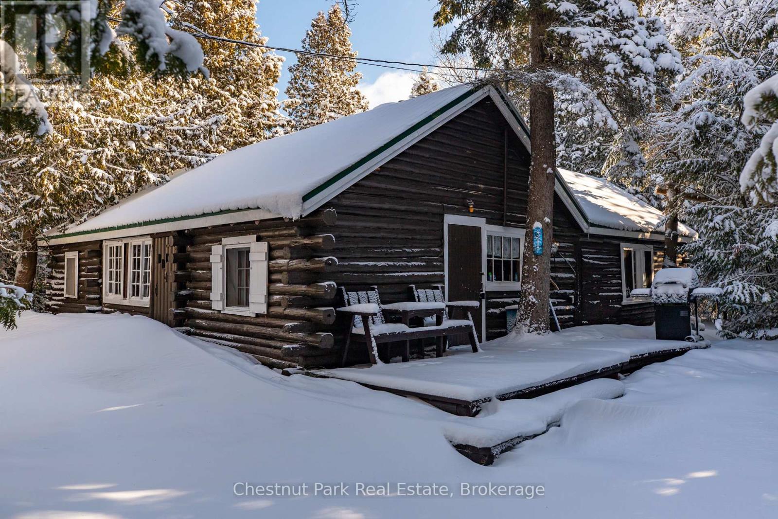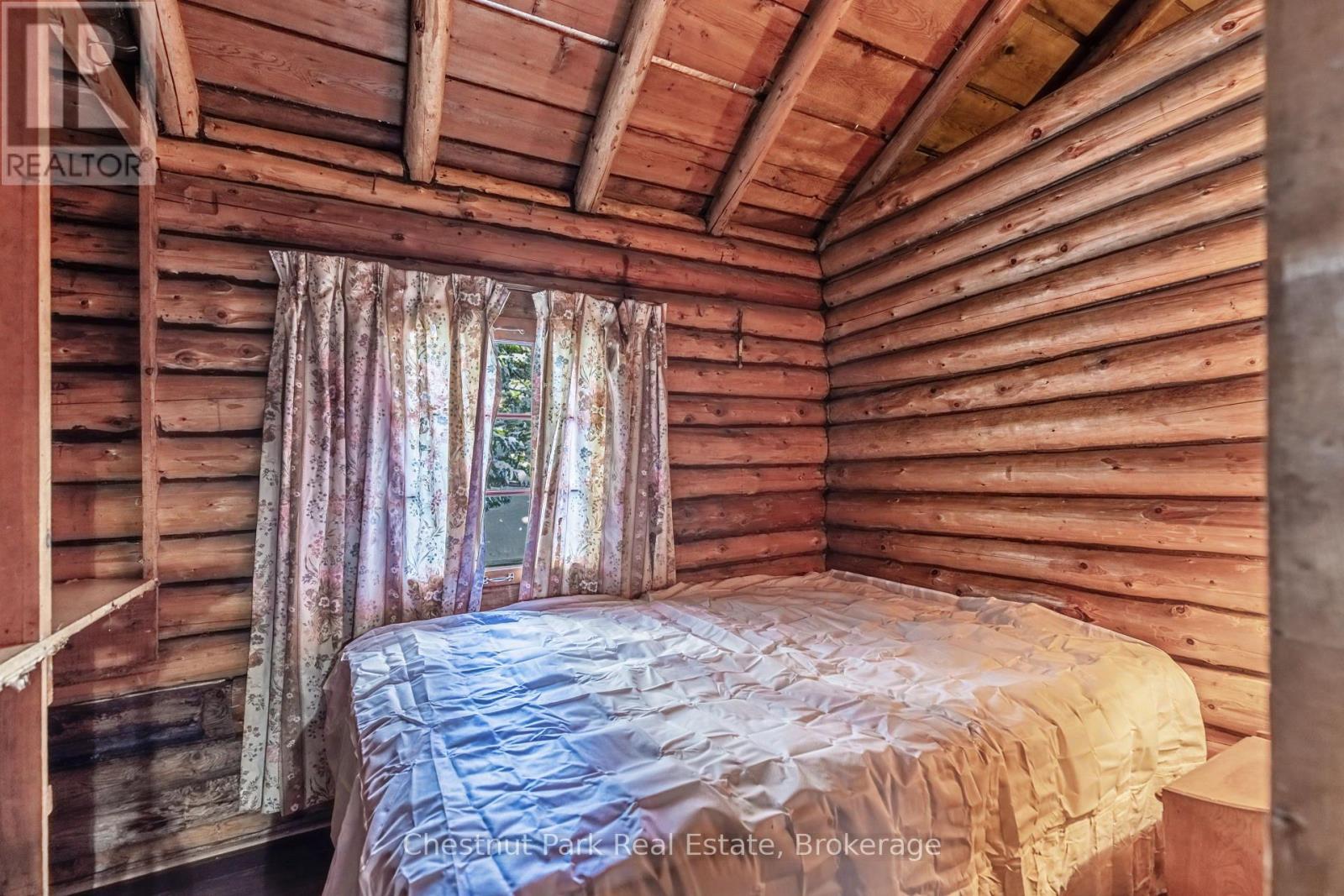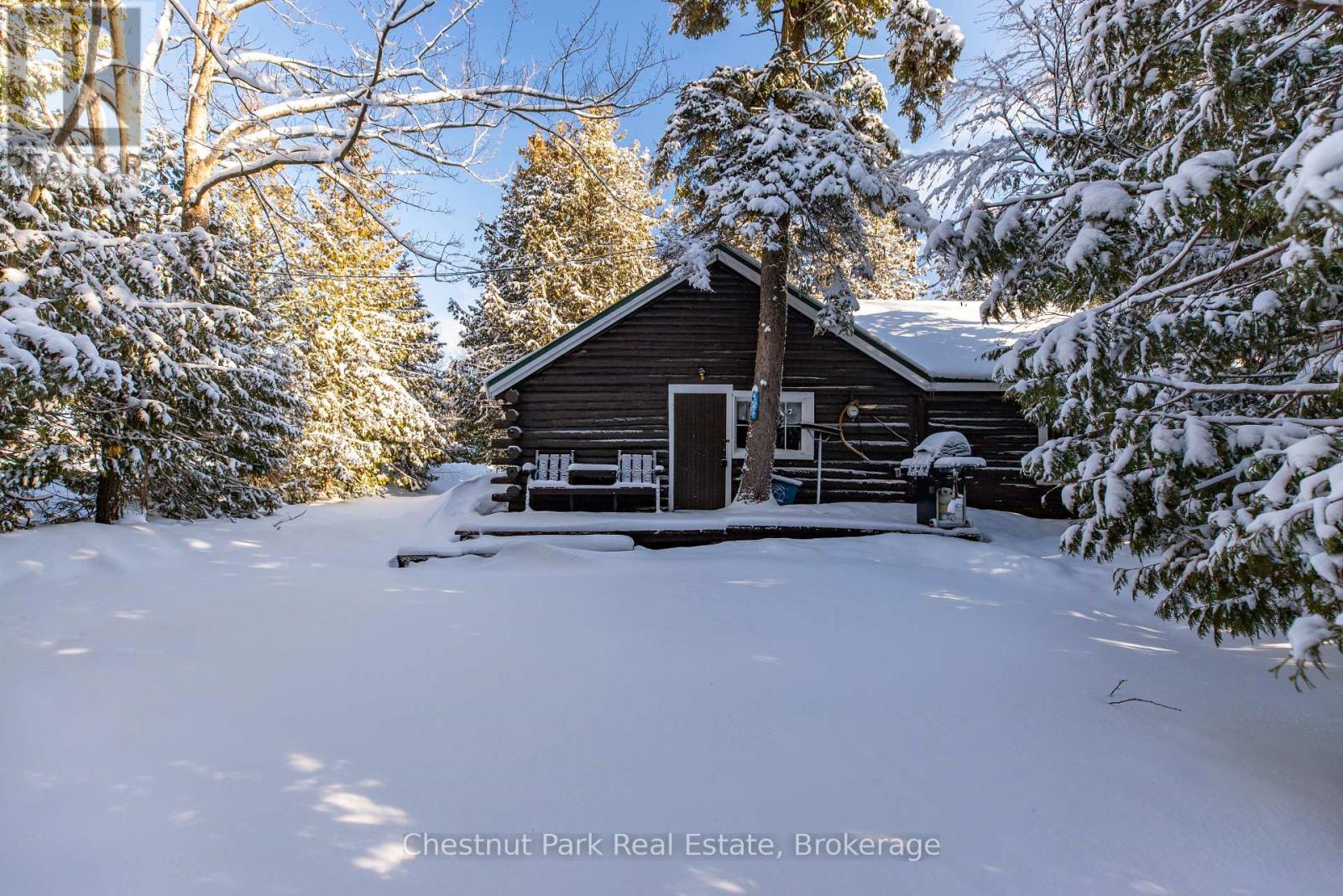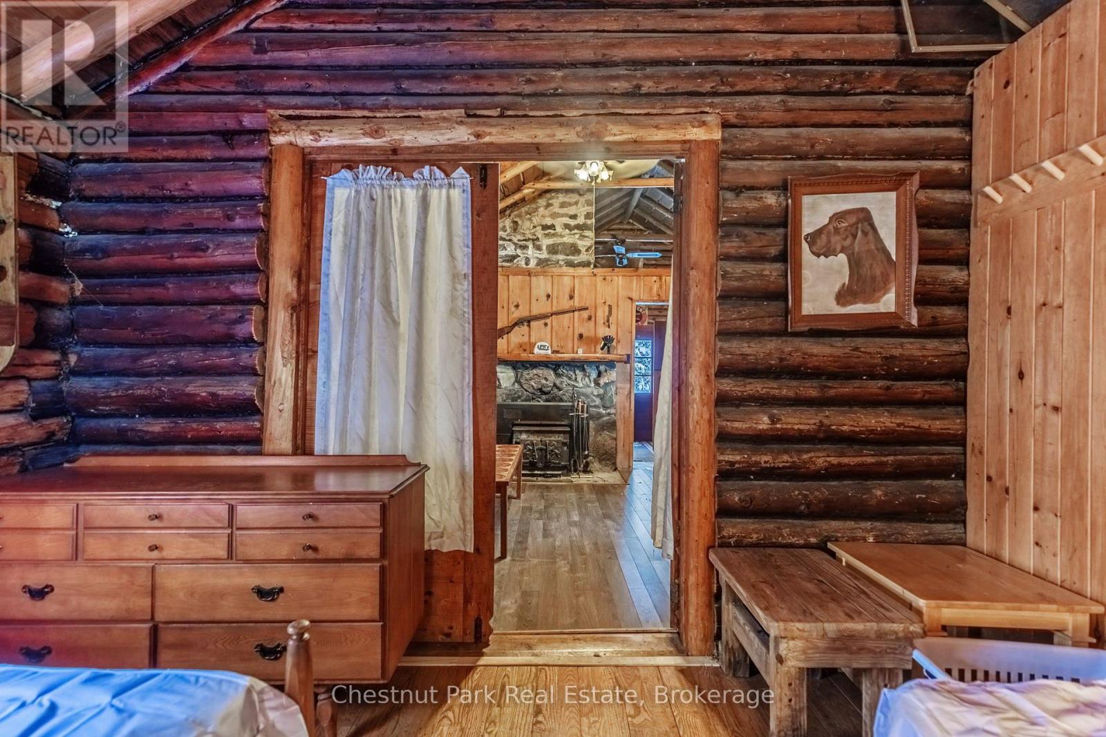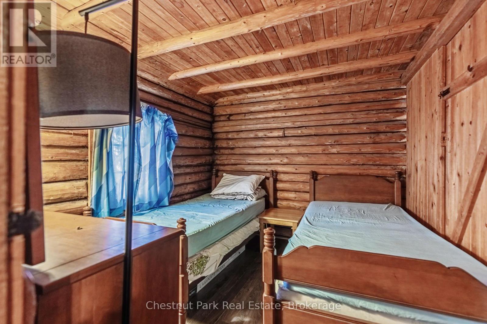 Rustic Log Cottage in a Prime Bruce Peninsula Location! This 3-bedroom seasonal log cottage offers approximately 990 square feet of living space and sits on a beautiful, well-treed 1.3-acre property in a highly desirable area, all at an attractive price point. Full of character with a classic "hunt camp" atmosphere, the cottage provides a warm and nostalgic setting for relaxed summer living. Inside, the spacious kitchen and dining area features an abundance of cupboards and plenty of room for family gatherings after a day outdoors. The cottage is protected by a durable metal roof and offers comfortable living space for family and guests. A separate guest cabin nearby provides additional accommodation, making it an ideal setup for extended family or visiting friends. Located directly across the road from excellent sand-bottom swimming and flat rock shoreline perfect for sunbathing, the waterfront setting offers great opportunities for boating, fishing, and enjoying spectacular sunsets. Just around the bend you'll find Sandy Beach, a popular public sand beach known for its shallow waters and family-friendly swimming. The charming village of Lions Head, with its marina, shops, restaurants, and amenities, is less than a 10-minute drive away. With privacy, natural surroundings, and possible severance potential, this property offers excellent opportunity as a family retreat, investment, or seasonal rental property. Being sold "as is, where is" with no representations or warranties. Priced to sell and ready for its next chapter on the Bruce Peninsula. (id:64974)