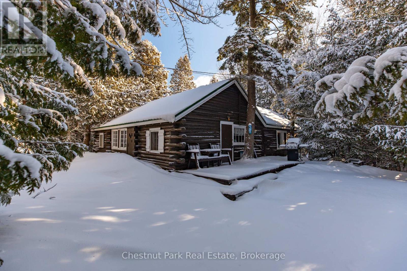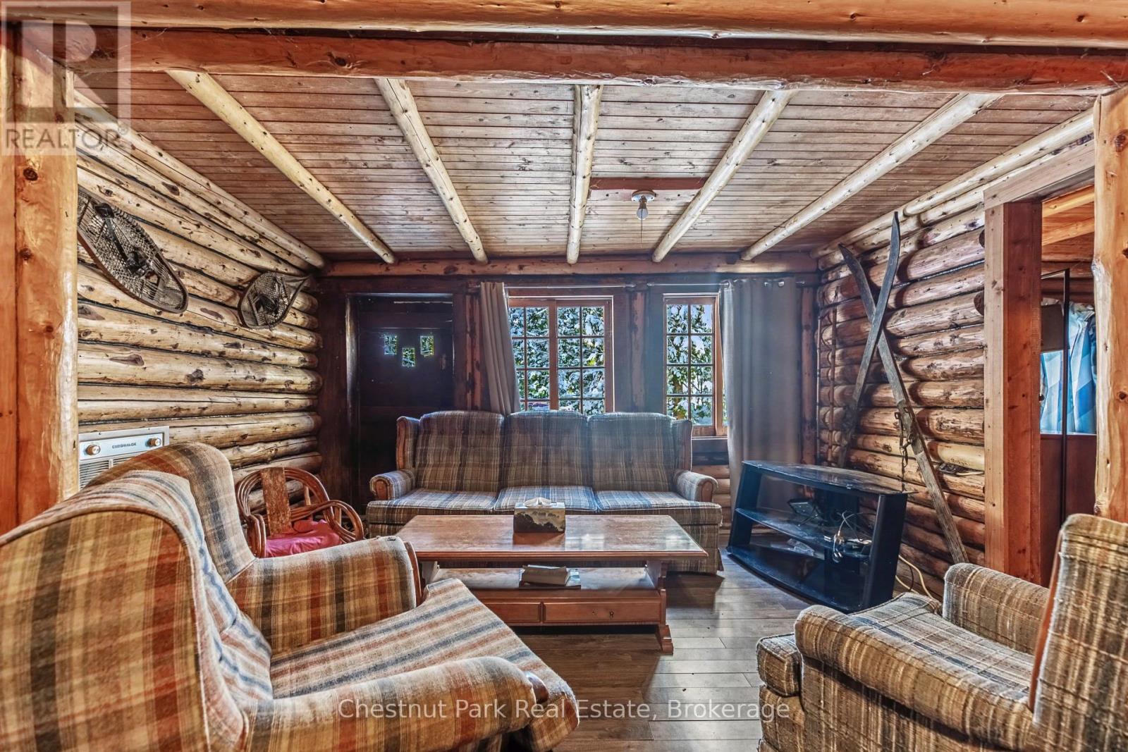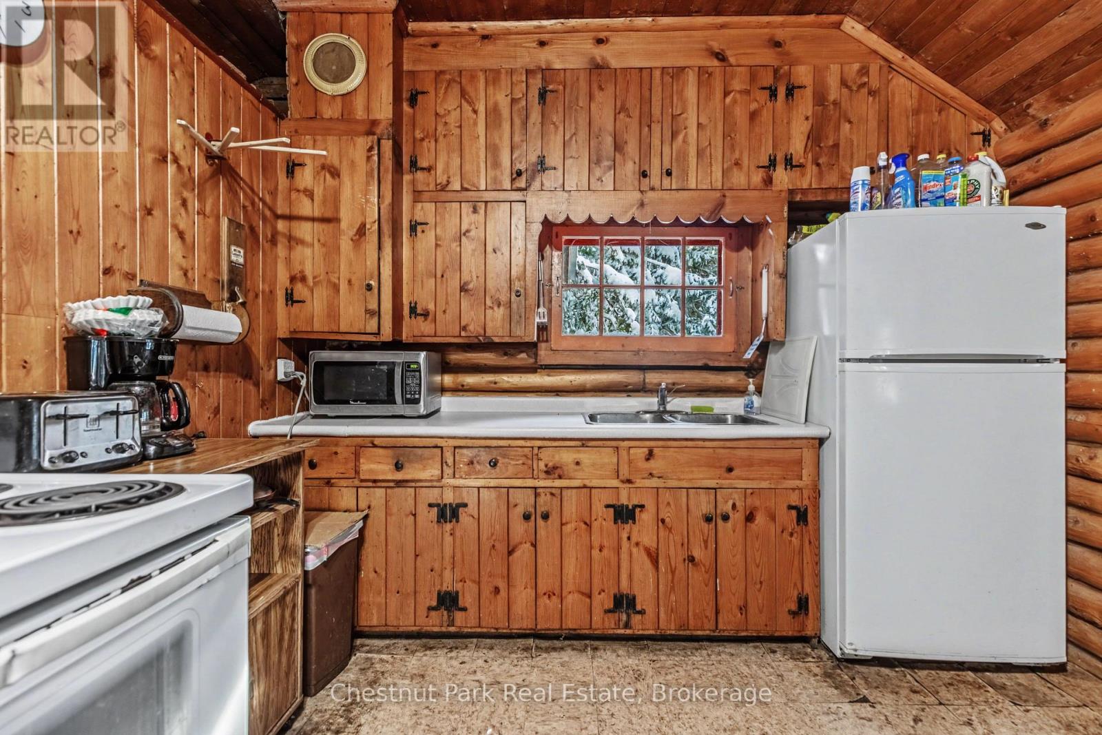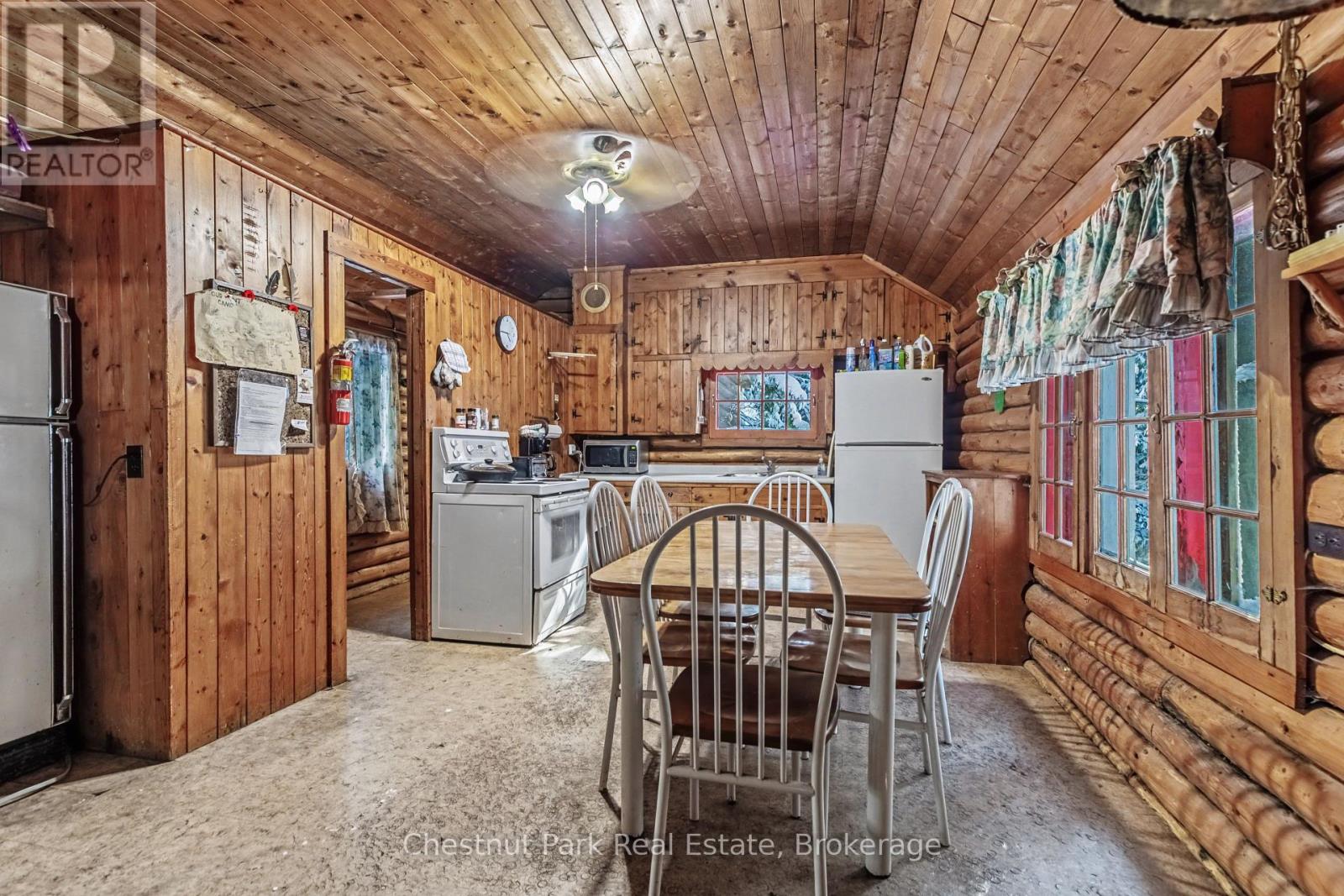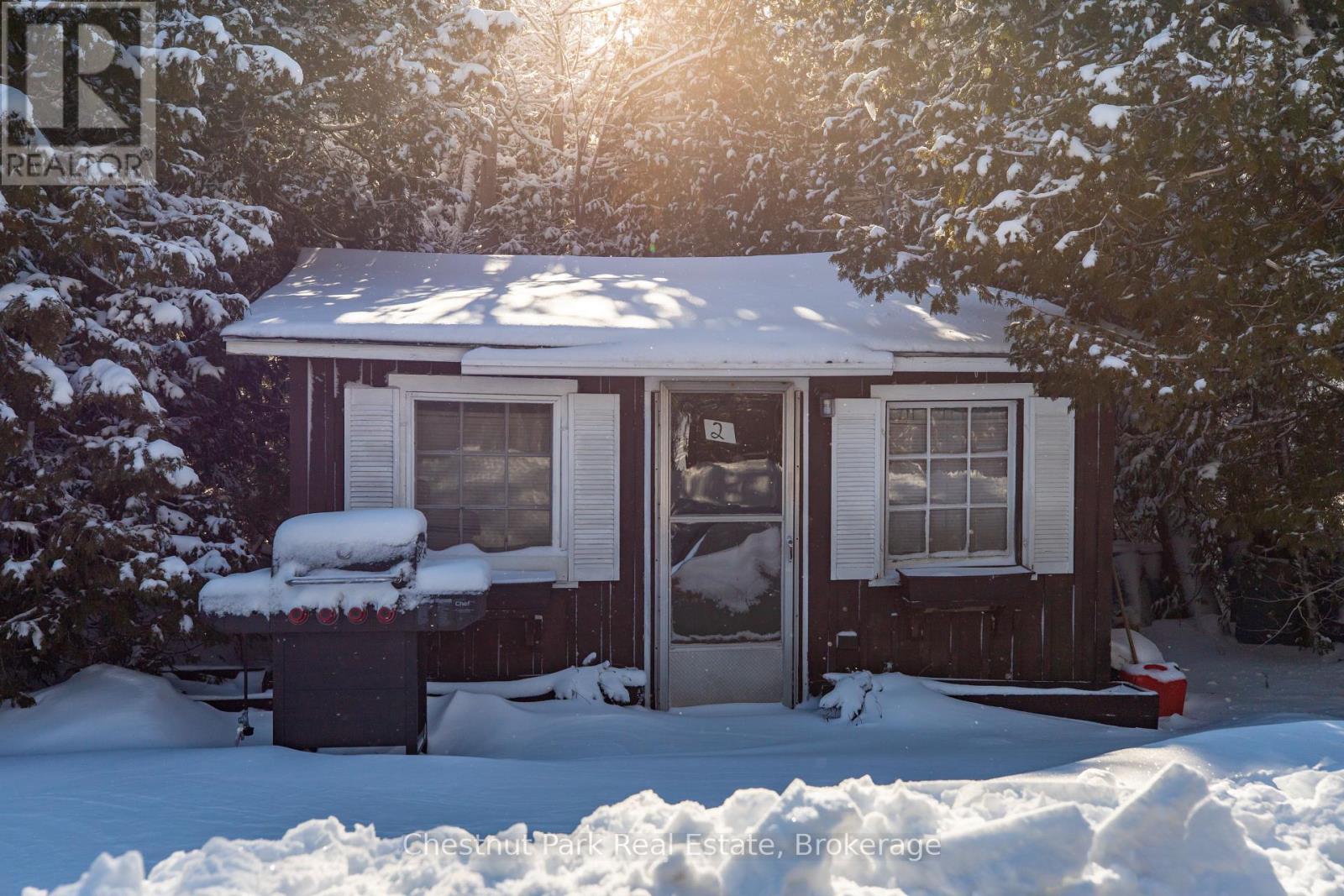 Rustic Log Cottage in a Prime Bruce Peninsula Location! This 3-bedroom seasonal log cottage offers approximately 990 square feet of living space and sits on a beautiful, well-treed 1.3-acre property in a highly desirable area, all at an attractive price point. Full of character with a classic "hunt camp" atmosphere, the cottage provides a warm and nostalgic setting for relaxed summer living. Inside, the spacious kitchen and dining area features an abundance of cupboards and plenty of room for family gatherings after a day outdoors. The cottage is protected by a durable metal roof and offers comfortable living space for family and guests. A separate guest cabin nearby provides additional accommodation, making it an ideal setup for extended family or visiting friends. Located directly across the road from excellent sand-bottom swimming and flat rock shoreline perfect for sunbathing, the waterfront setting offers great opportunities for boating, fishing, and enjoying spectacular sunsets. Just around the bend you'll find Sandy Beach, a popular public sand beach known for its shallow waters and family-friendly swimming. The charming village of Lions Head, with its marina, shops, restaurants, and amenities, is less than a 10-minute drive away. With privacy, natural surroundings, and possible severance potential, this property offers excellent opportunity as a family retreat, investment, or seasonal rental property. Being sold "as is, where is" with no representations or warranties. Priced to sell and ready for its next chapter on the Bruce Peninsula. (id:64974)