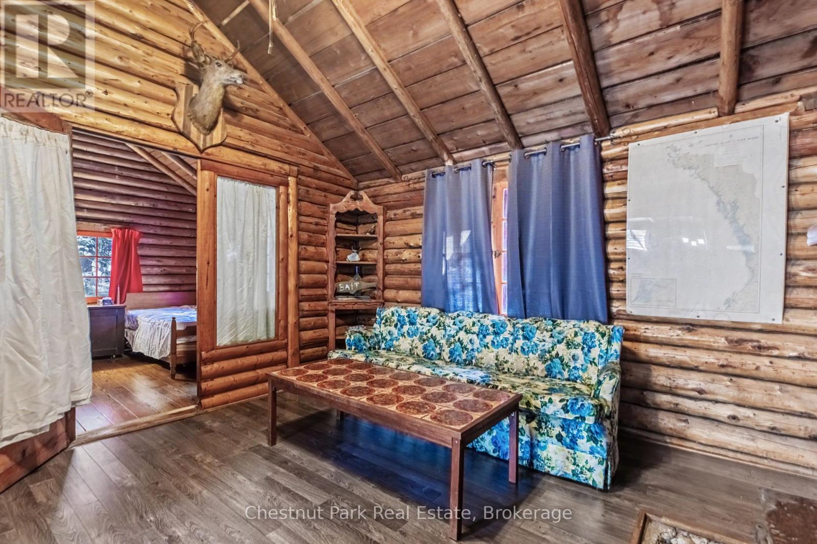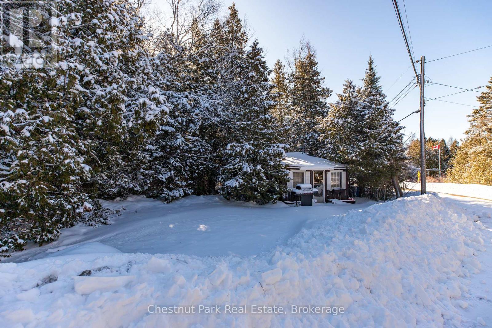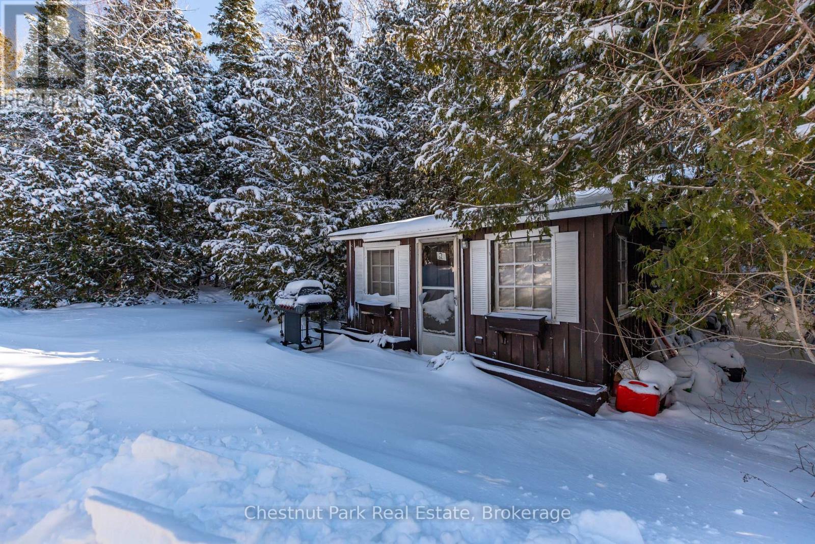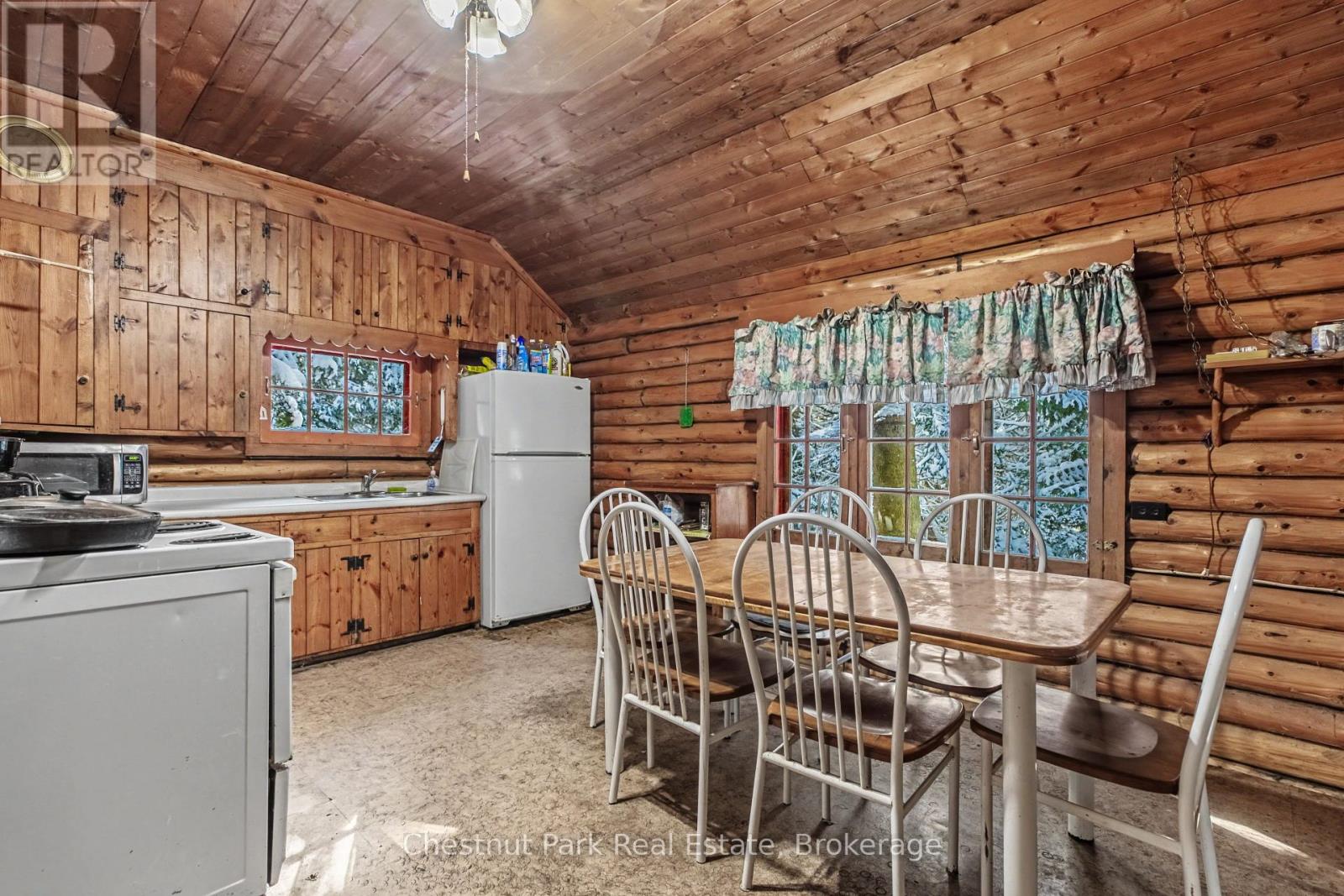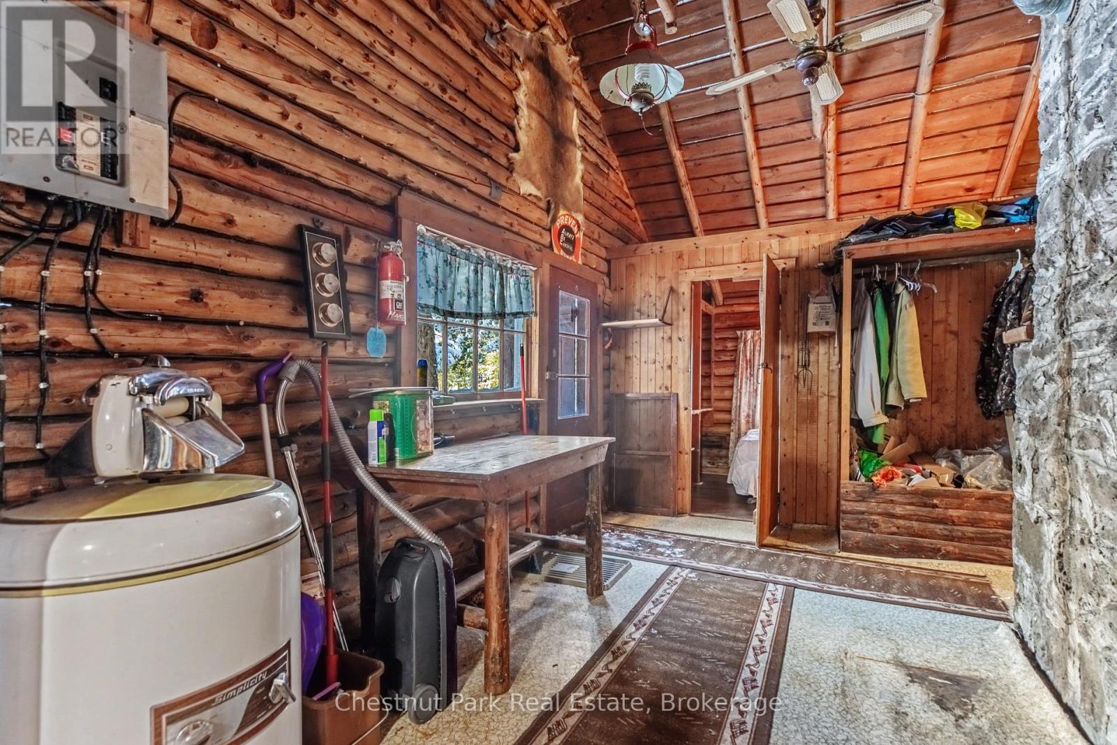 Rustic Log Cottage in a Prime Bruce Peninsula Location! This 3-bedroom seasonal log cottage offers approximately 990 square feet of living space and sits on a beautiful, well-treed 1.3-acre property in a highly desirable area, all at an attractive price point. Full of character with a classic "hunt camp" atmosphere, the cottage provides a warm and nostalgic setting for relaxed summer living. Inside, the spacious kitchen and dining area features an abundance of cupboards and plenty of room for family gatherings after a day outdoors. The cottage is protected by a durable metal roof and offers comfortable living space for family and guests. A separate guest cabin nearby provides additional accommodation, making it an ideal setup for extended family or visiting friends. Located directly across the road from excellent sand-bottom swimming and flat rock shoreline perfect for sunbathing, the waterfront setting offers great opportunities for boating, fishing, and enjoying spectacular sunsets. Just around the bend you'll find Sandy Beach, a popular public sand beach known for its shallow waters and family-friendly swimming. The charming village of Lions Head, with its marina, shops, restaurants, and amenities, is less than a 10-minute drive away. With privacy, natural surroundings, and possible severance potential, this property offers excellent opportunity as a family retreat, investment, or seasonal rental property. Being sold "as is, where is" with no representations or warranties. Priced to sell and ready for its next chapter on the Bruce Peninsula. (id:64974)