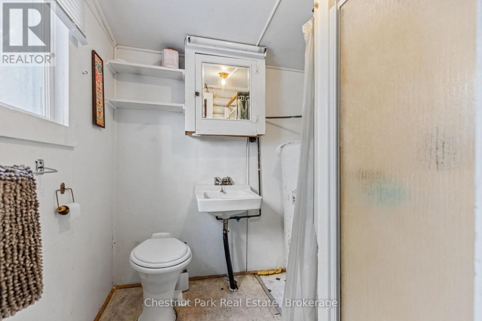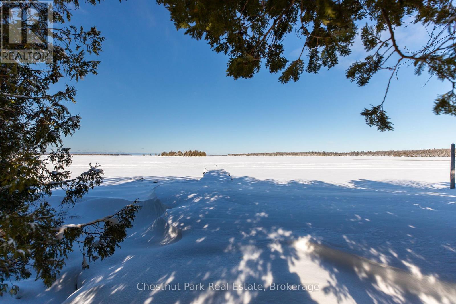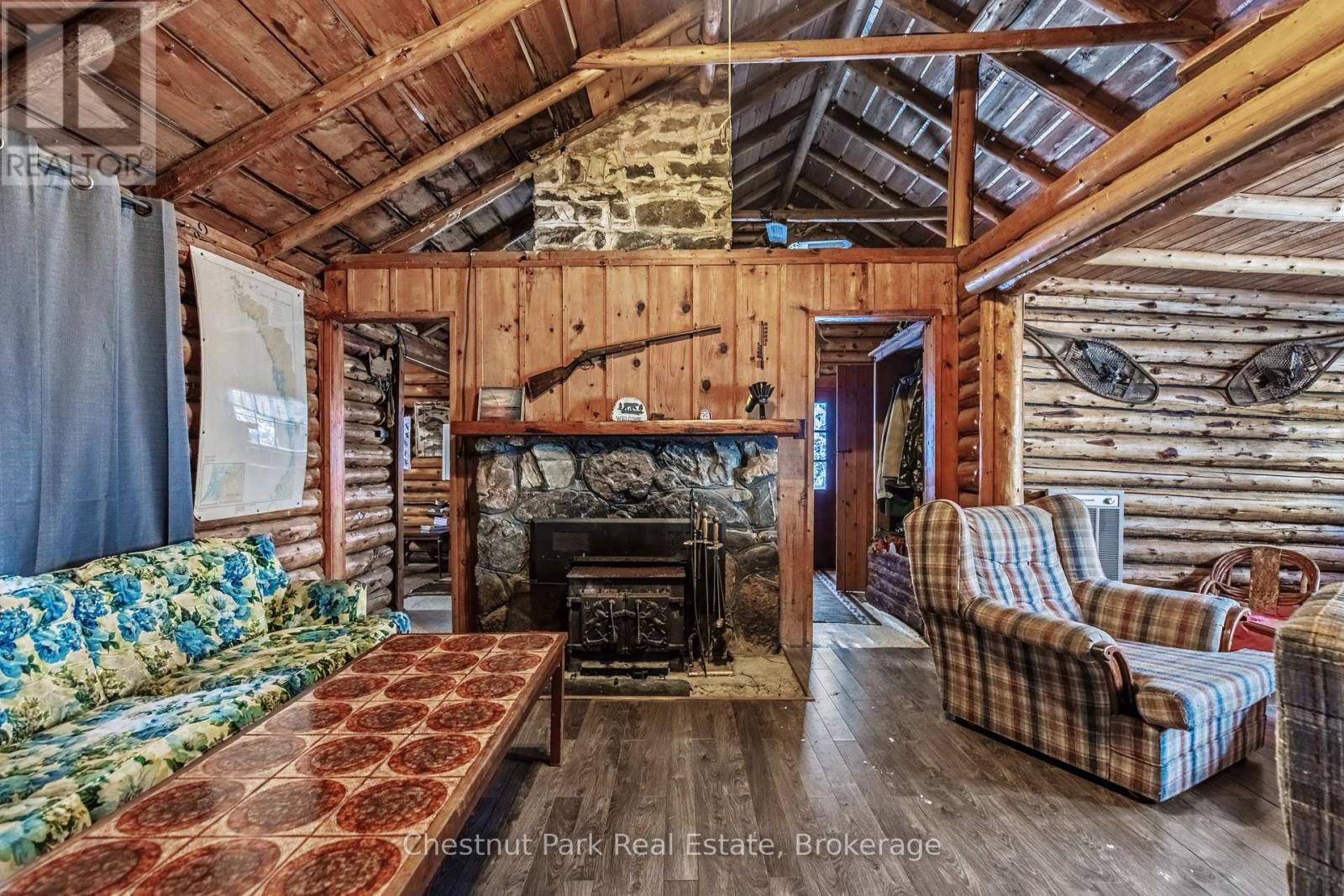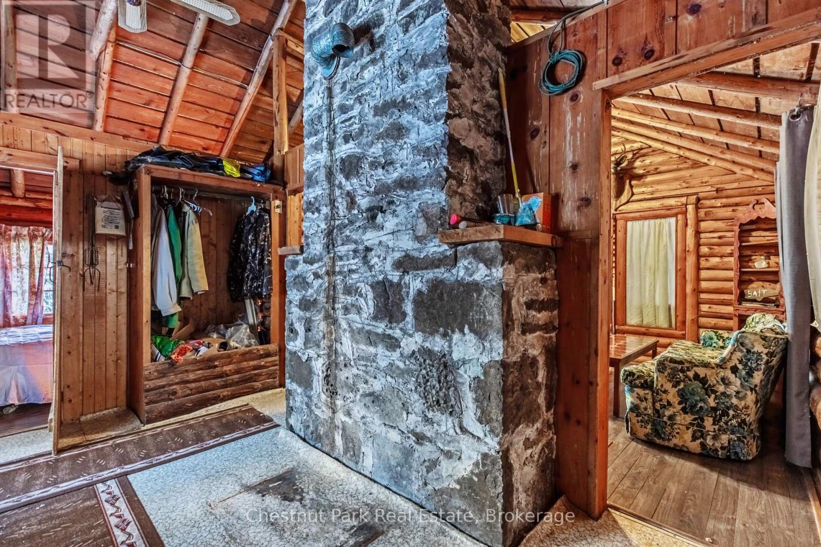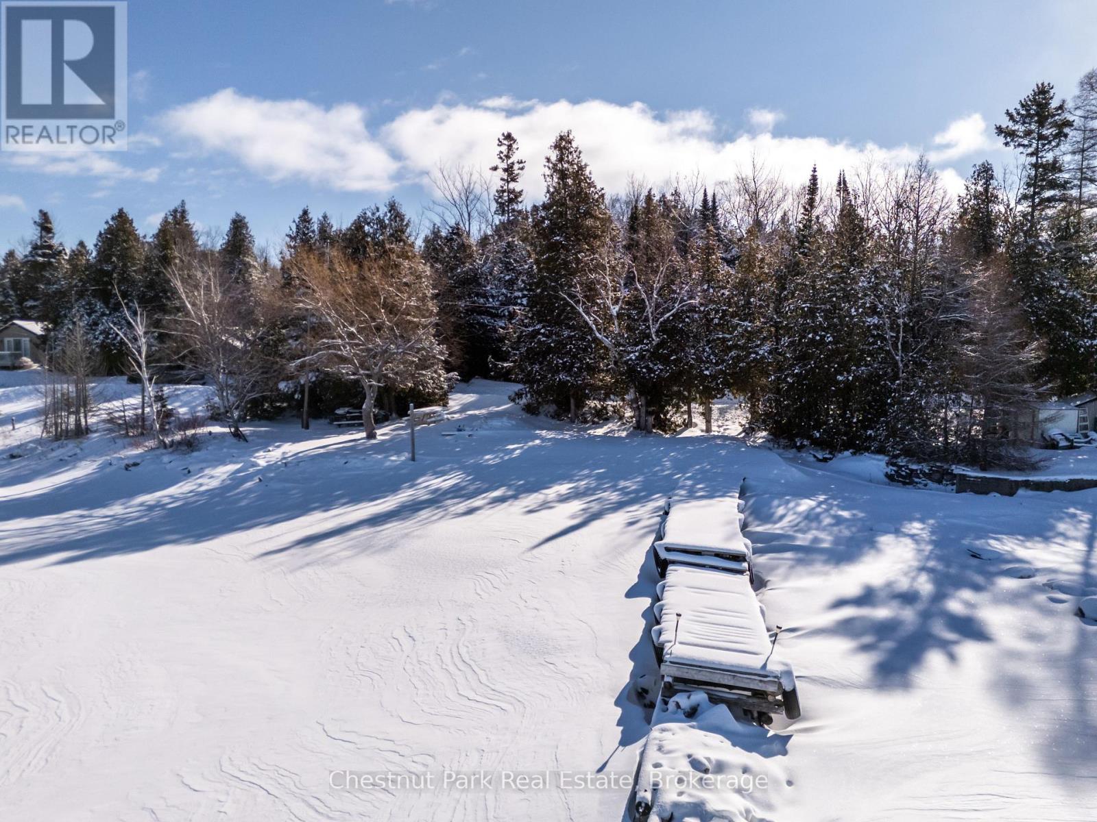 Rustic Log Cottage in a Prime Bruce Peninsula Location! This 3-bedroom seasonal log cottage offers approximately 990 square feet of living space and sits on a beautiful, well-treed 1.3-acre property in a highly desirable area, all at an attractive price point. Full of character with a classic "hunt camp" atmosphere, the cottage provides a warm and nostalgic setting for relaxed summer living. Inside, the spacious kitchen and dining area features an abundance of cupboards and plenty of room for family gatherings after a day outdoors. The cottage is protected by a durable metal roof and offers comfortable living space for family and guests. A separate guest cabin nearby provides additional accommodation, making it an ideal setup for extended family or visiting friends. Located directly across the road from excellent sand-bottom swimming and flat rock shoreline perfect for sunbathing, the waterfront setting offers great opportunities for boating, fishing, and enjoying spectacular sunsets. Just around the bend you'll find Sandy Beach, a popular public sand beach known for its shallow waters and family-friendly swimming. The charming village of Lions Head, with its marina, shops, restaurants, and amenities, is less than a 10-minute drive away. With privacy, natural surroundings, and possible severance potential, this property offers excellent opportunity as a family retreat, investment, or seasonal rental property. Being sold "as is, where is" with no representations or warranties. Priced to sell and ready for its next chapter on the Bruce Peninsula. (id:64974)