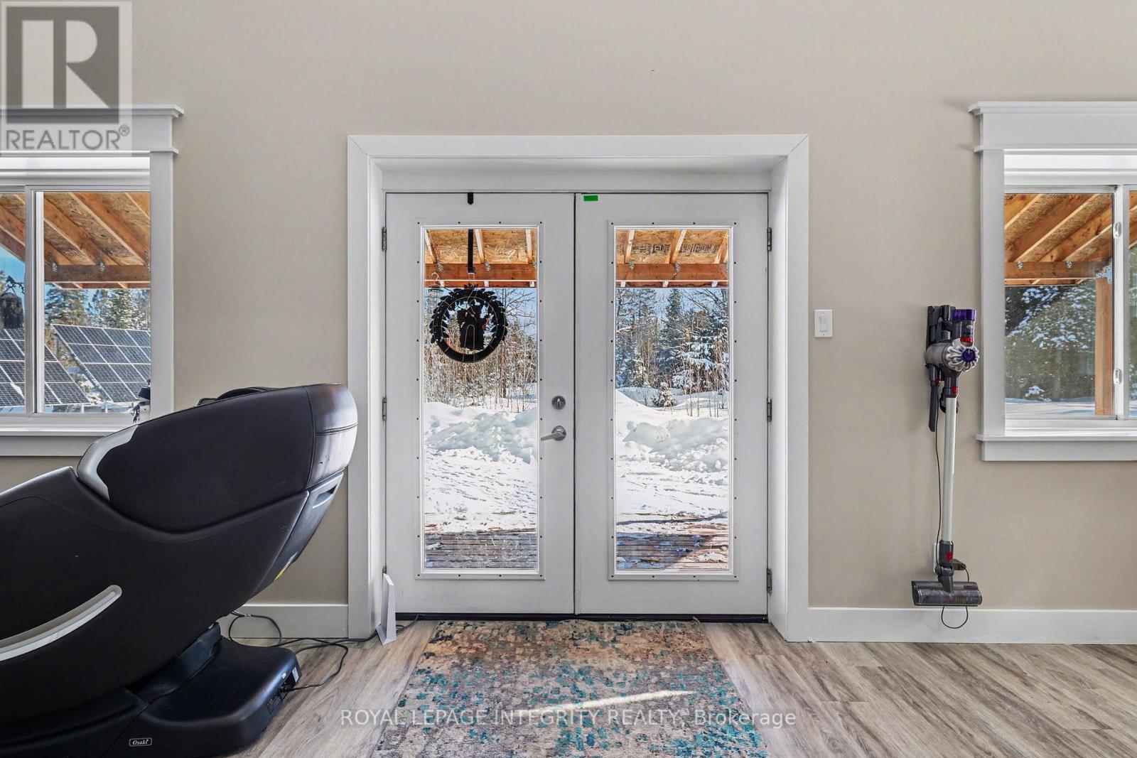 Set on approximately 25 acres of beautifully treed land with an incredible ~1,000 feet of frontage along the Clyde River, this one-of-a-kind 2021 build property offers a rare opportunity to live fully OFF GRID without giving up modern comforts. Designed with complete self-sufficiency in mind, the property is fully solar powered with Sol-Ark panels, brand-new top-of-the-line solar batteries, a gas generator for backup, propane, and a wood stove, ensuring comfort and reliability year-round. Every detail was carefully planned to create a true off-grid paradise, while still enjoying high-speed internet, doorstep Amazon deliveries and a quick 20 minute drive to Perth or Carleton Place for everyday amenities, Life here is about slowing down and reconnecting with nature, from watching the sunrise off the back deck to walking the trails throughout the property, tending the perennial gardens, gathering around bonfires while listening to owls, spotting deer, foxes, and rabbits, kayaking and fishing on the Clyde River, skating in winter, snowmobiling, and enjoying breathtaking stargazing and northern lights. The home features two main-floor bedrooms, a full bathroom, and a flexible den or storage room, perfect for everyday living or guests. Upstairs, a massive open loft serves as a third bedroom or expansive family room, easily accommodating a king-sized bed and TV area with a large sectional. The loft also includes a half bathroom with ample space to add a tub or shower if desired, and opens onto a second-storey deck facing true west, offering some of the most spectacular sunset views imaginable, with stairs leading directly down to the ground below. Driving down Proulx Road feels like entering a special place, with mature trees and natural landscaping that evoke the calm of a national park. This property truly offers the best of all worlds: peace, privacy, sustainability, and convenience. (id:64974)