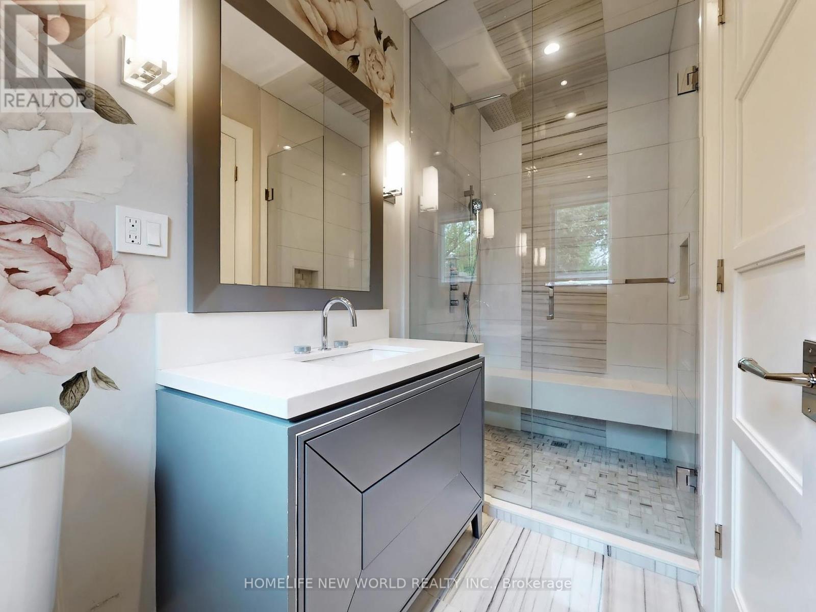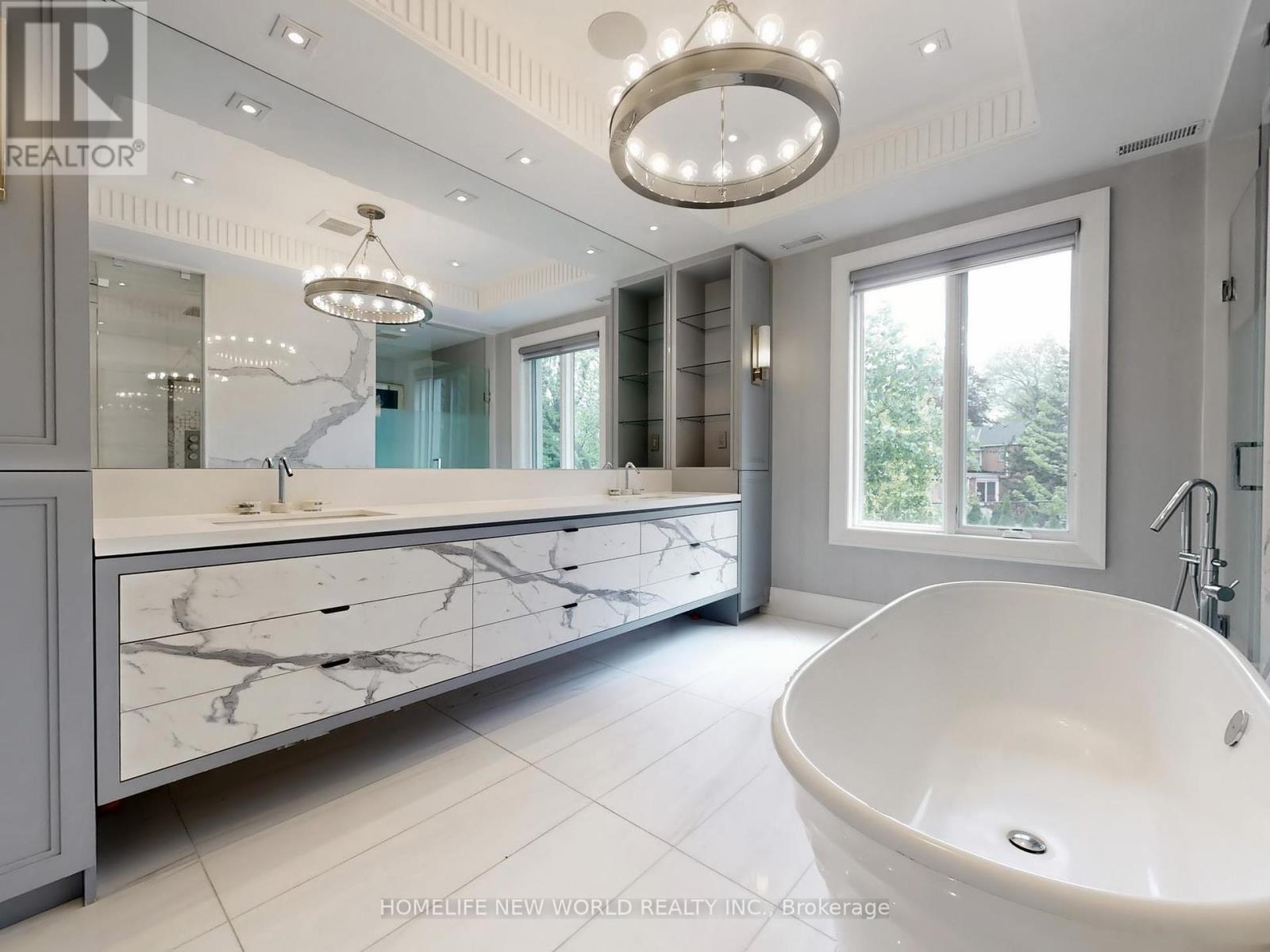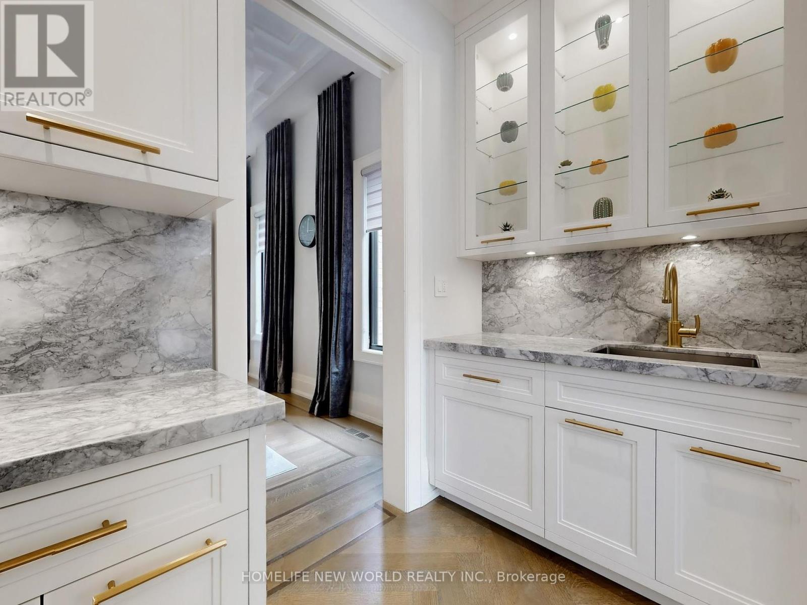Welcome to 154 Yonge Blvd, a rare opportunity to own a custom-built luxury home! This residence offers over 7,200 sq.ft. of flawless design and craftsmanship in one of Toronto's most prestigious neighbourhoods, Bedford Park-Nortown. Meticulously built by Saaze with interiors by renowned designer Robin Nadel, the home combines timeless architecture with modern living. From the soaring 14-ft ceilings, oak rift-cut hardwood floors, and elegant panel detailing, every finish speaks sophistication.The main floor boasts a grand living and dining space and an executive office. An open-concept family room flows seamlessly into a designer kitchen featuring a La Cornue stove, a marble waterfall island, and a full suite of integrated Wolf/Sub-Zero appliances. These elegant spaces are perfect for both entertaining guests and comfortable everyday living. Upstairs, the primary retreat includes a spa-inspired 6-piece ensuite, walk-in closets, and a private balcony. All additional bedrooms offer their own ensuites and custom cabinetry. Each room is designed to provide privacy and comfort for family or guests. The walkout basement is an entertainment haven, featuring a full theatre, gym, recreation room, wet bar, and wine cellar. It opens out to a resort-style backyard with a saltwater pool, an outdoor kitchen, and lush greenery. This lower level seamlessly blends indoor and outdoor living, making it ideal for hosting gatherings or enjoying family time. A true statement of custom perfection complete with elevator access to all levels, a heated driveway, and built-in smart systems throughout. (id:64974)