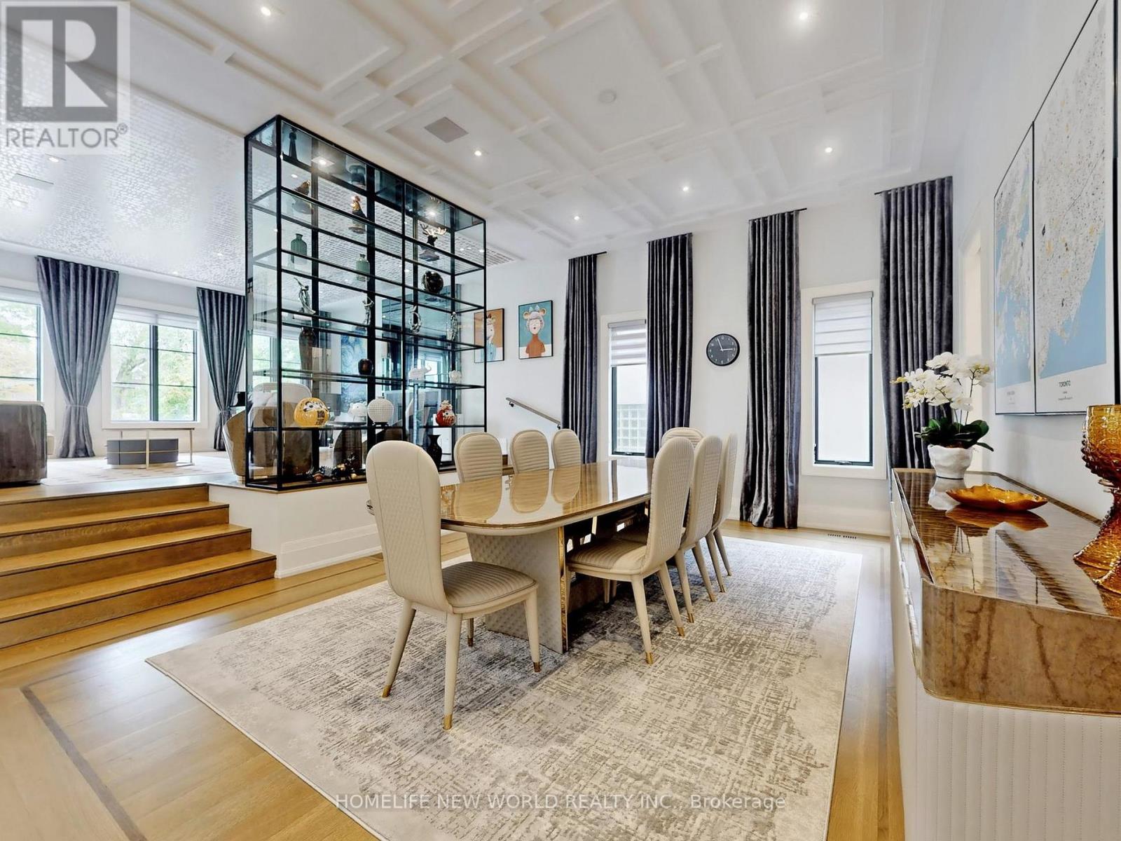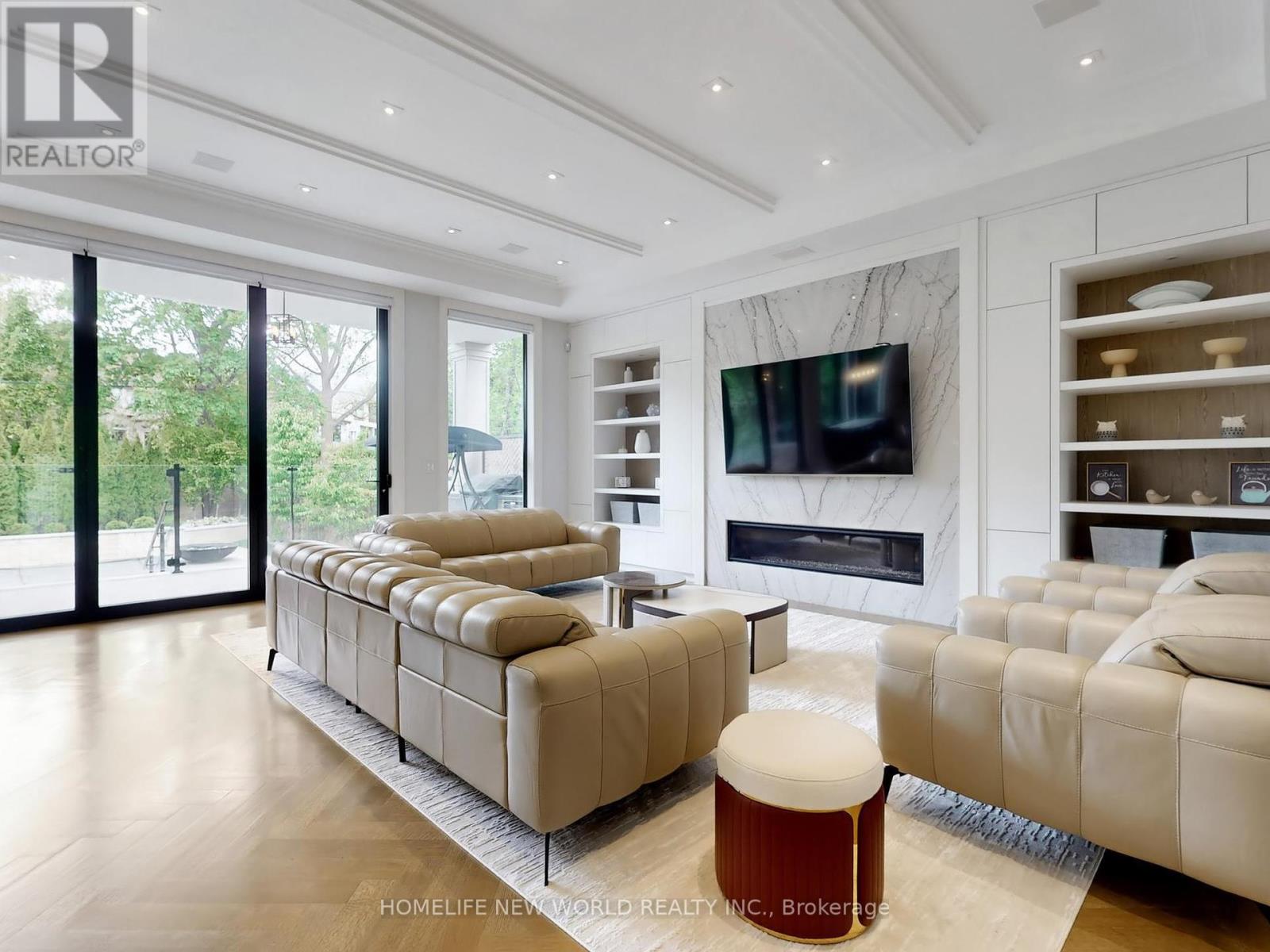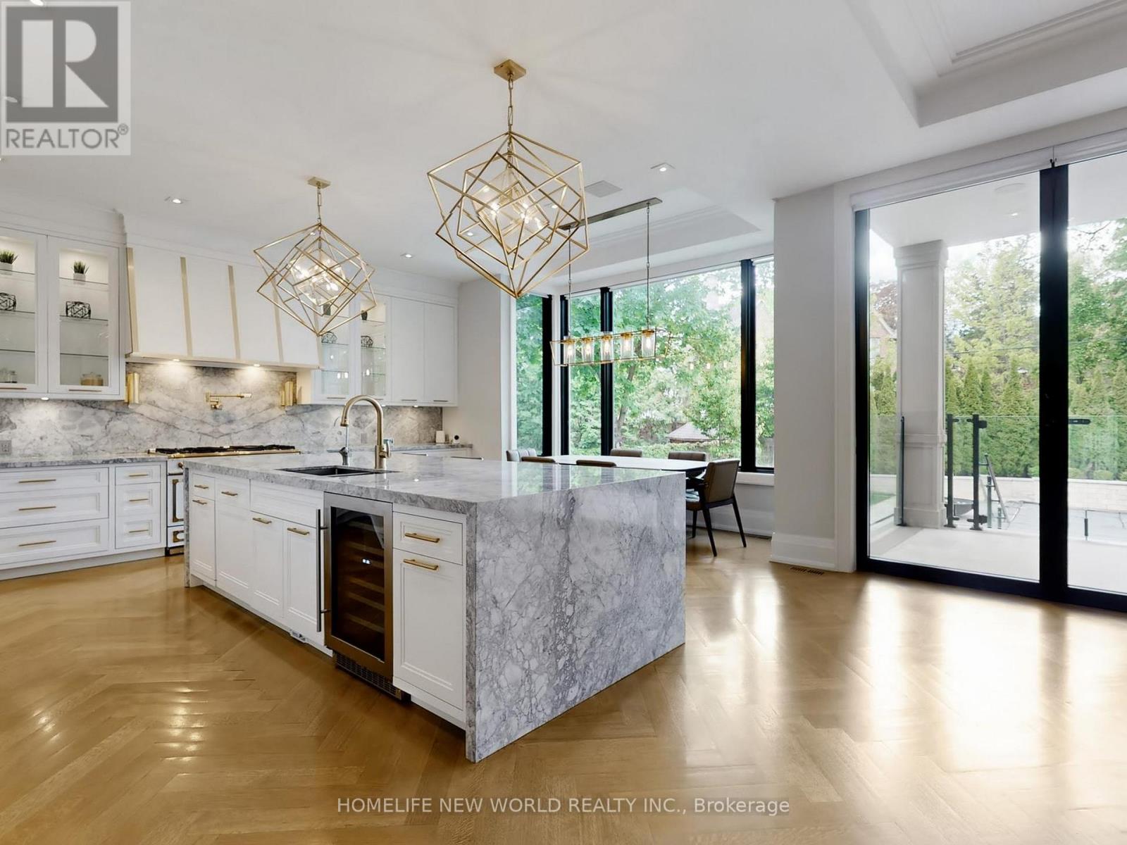 Welcome to 154 Yonge Blvd, a rare opportunity to own a custom-built luxury home! This residence offers over 7,200 sq.ft. of flawless design and craftsmanship in one of Toronto's most prestigious neighbourhoods, Bedford Park-Nortown. Meticulously built by Saaze with interiors by renowned designer Robin Nadel, the home combines timeless architecture with modern living. From the soaring 14-ft ceilings, oak rift-cut hardwood floors, and elegant panel detailing, every finish speaks sophistication.The main floor boasts a grand living and dining space and an executive office. An open-concept family room flows seamlessly into a designer kitchen featuring a La Cornue stove, a marble waterfall island, and a full suite of integrated Wolf/Sub-Zero appliances. These elegant spaces are perfect for both entertaining guests and comfortable everyday living. Upstairs, the primary retreat includes a spa-inspired 6-piece ensuite, walk-in closets, and a private balcony. All additional bedrooms offer their own ensuites and custom cabinetry. Each room is designed to provide privacy and comfort for family or guests. The walkout basement is an entertainment haven, featuring a full theatre, gym, recreation room, wet bar, and wine cellar. It opens out to a resort-style backyard with a saltwater pool, an outdoor kitchen, and lush greenery. This lower level seamlessly blends indoor and outdoor living, making it ideal for hosting gatherings or enjoying family time. A true statement of custom perfection complete with elevator access to all levels, a heated driveway, and built-in smart systems throughout. (id:64974)